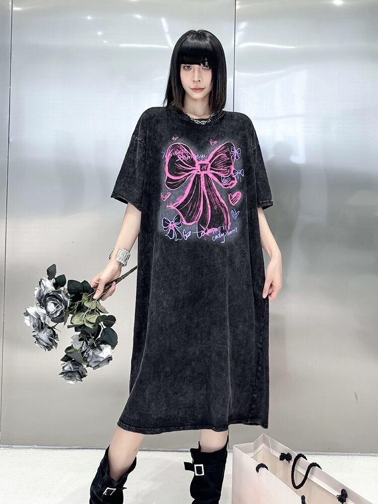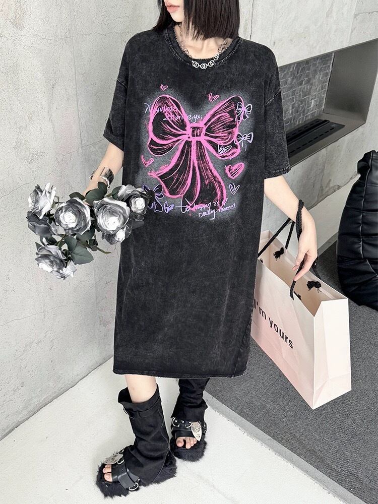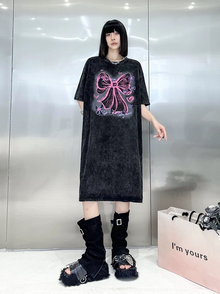 グレー 黒 カジュアル ワンピース Tシャツ ピンク