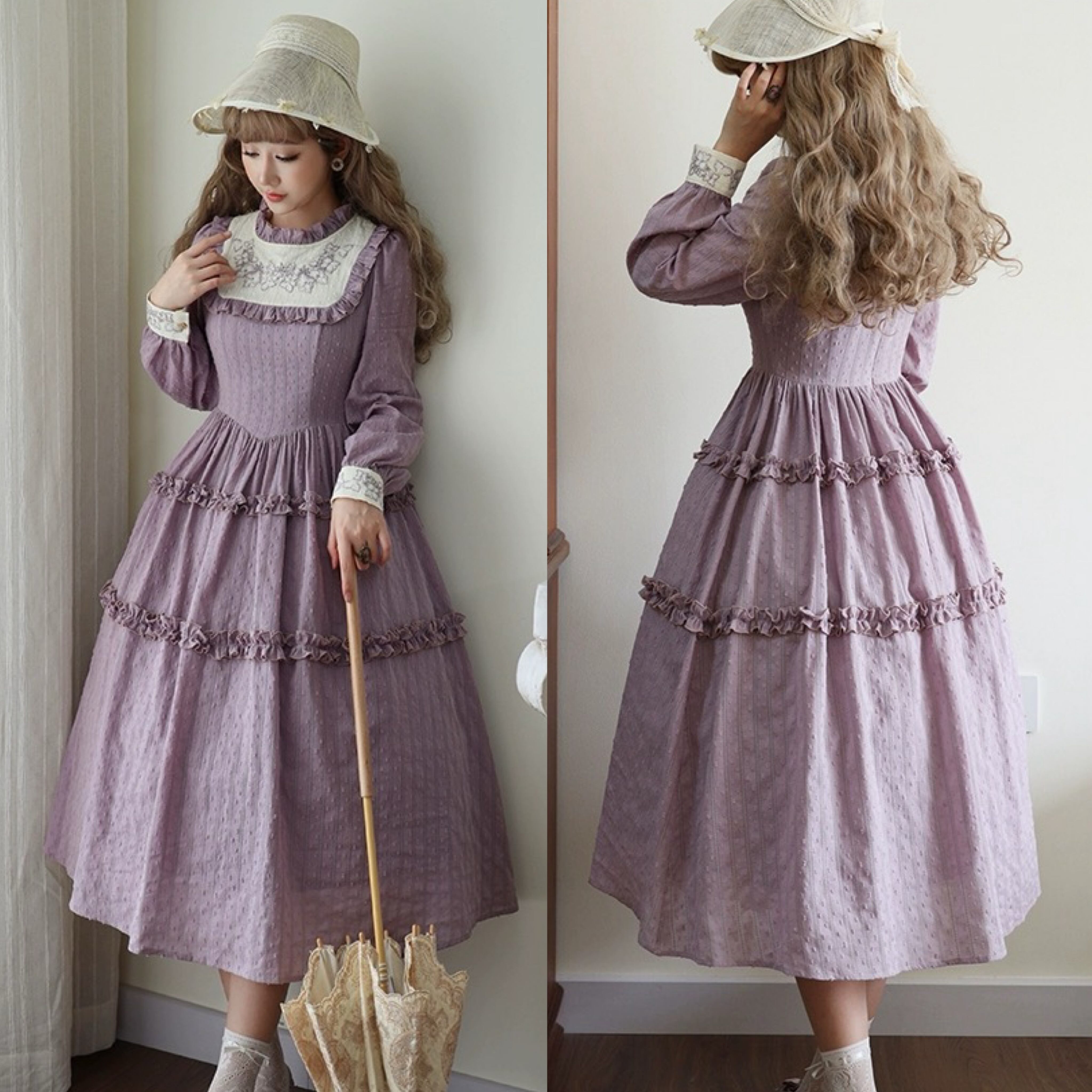 紫 ワンピース クラシック ブラウス 可愛い パープル 姫