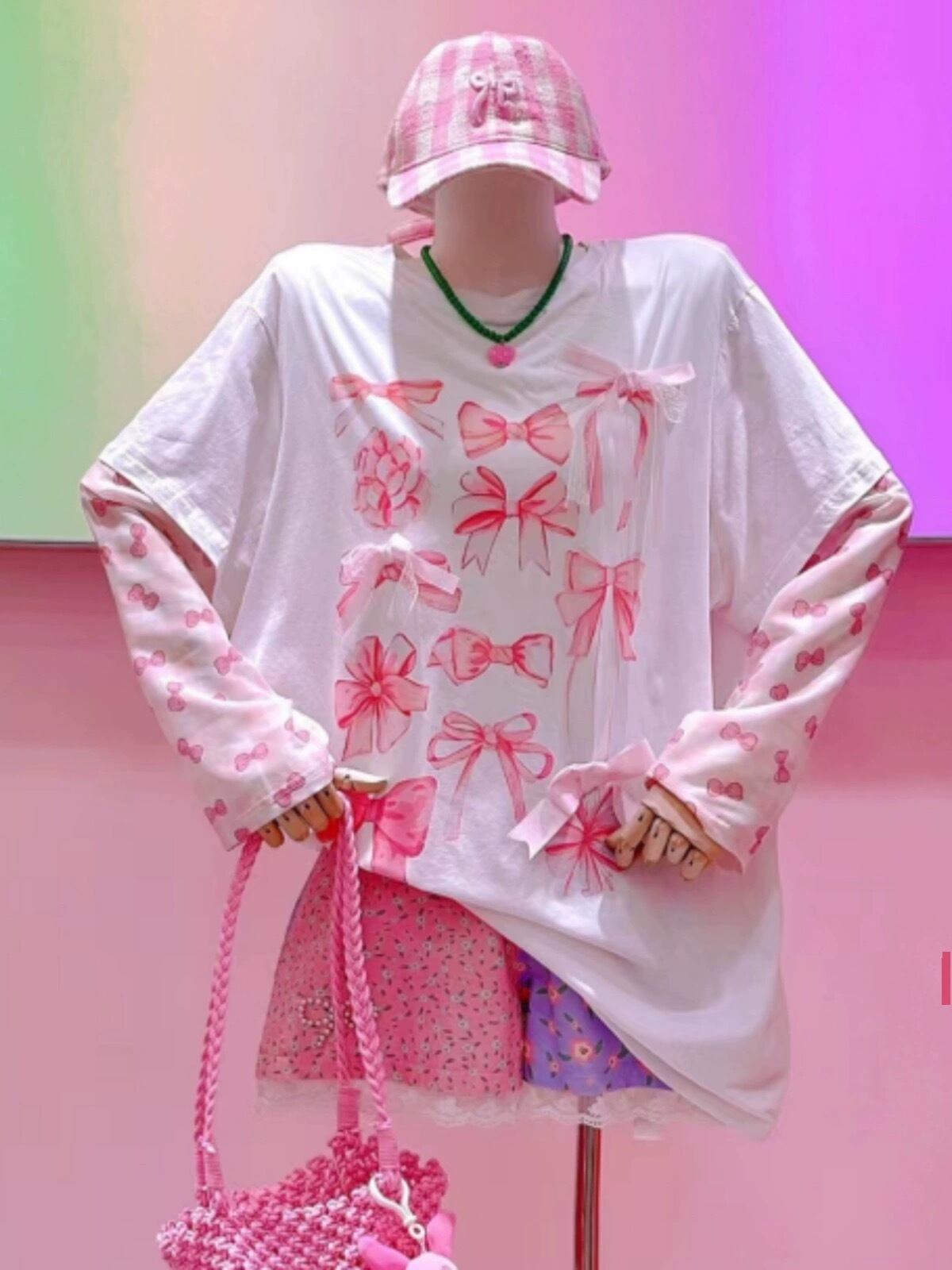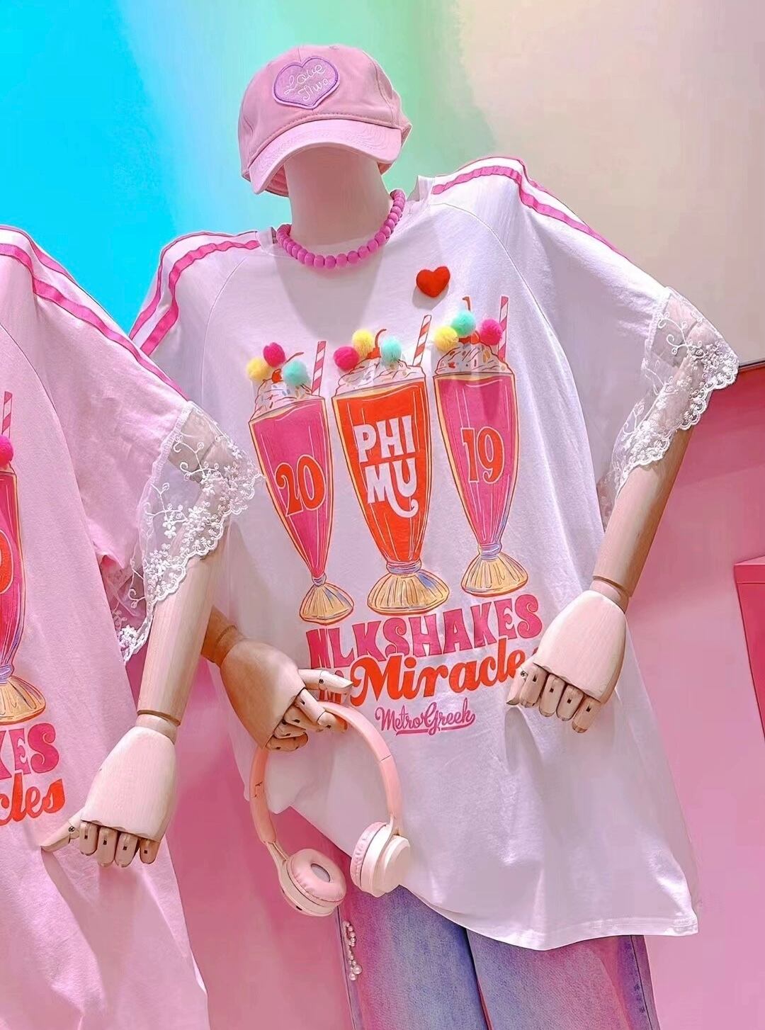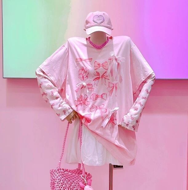 カジュアル ガーリー 可愛い トップス Tシャツ パフェ リボン