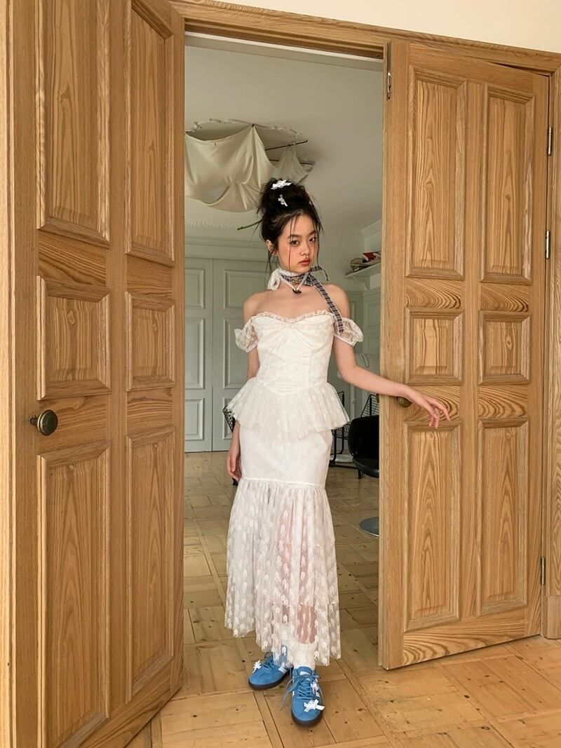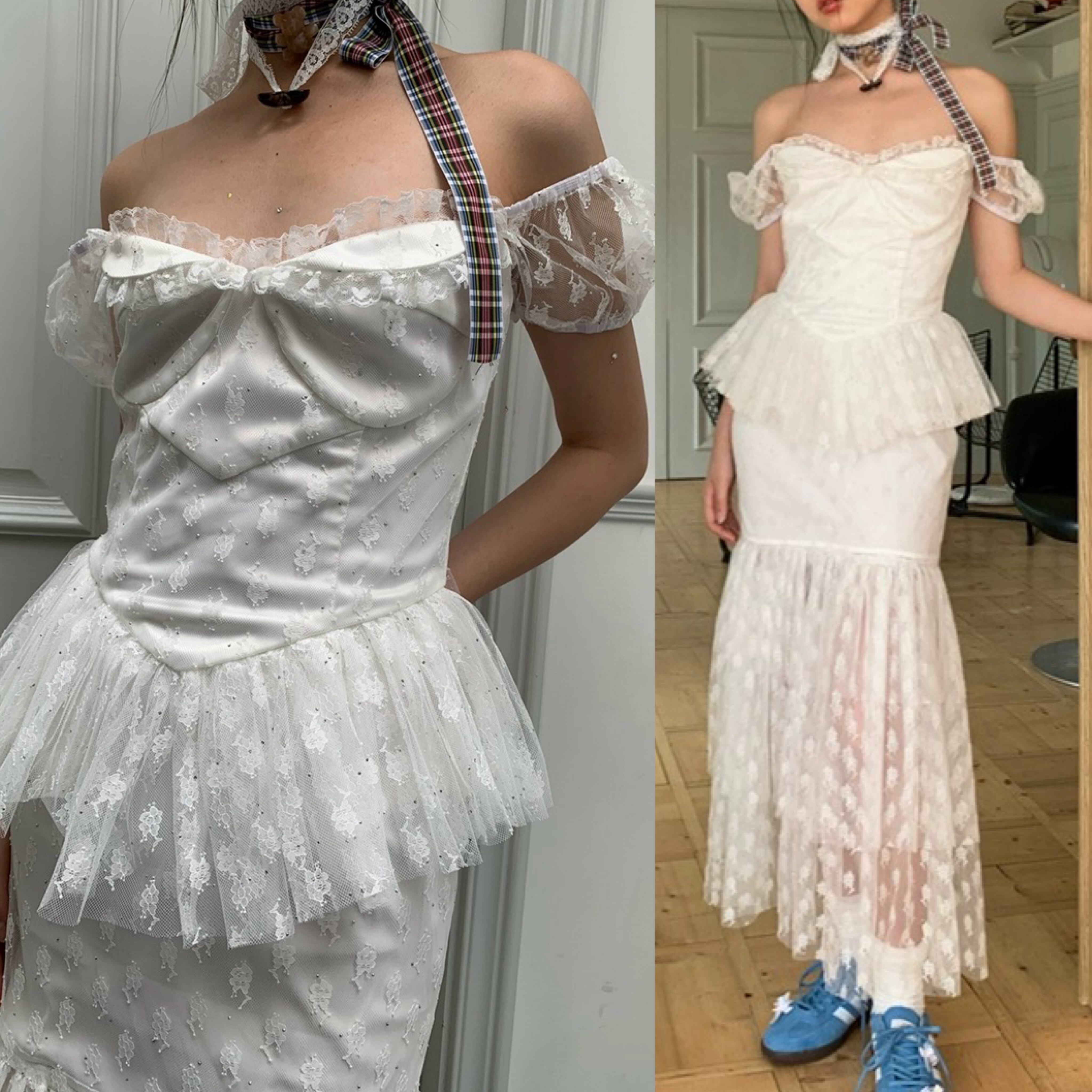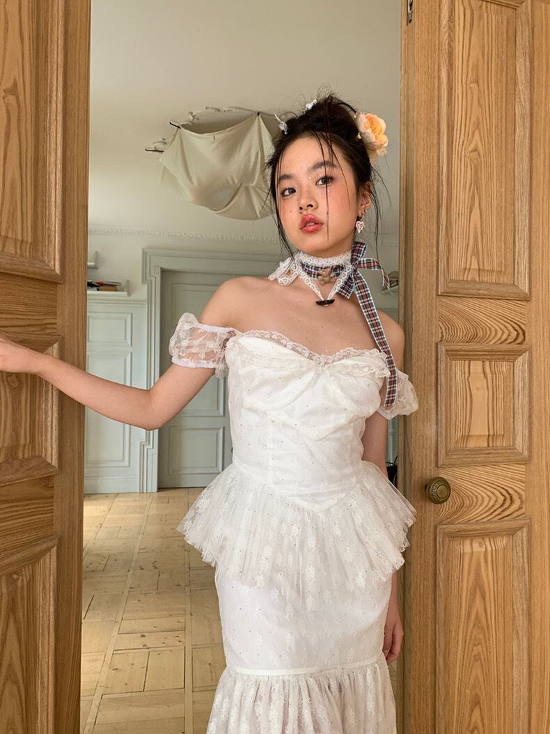 【トップス】ブラウス オフショルダー ガーリー レース 白 可愛い