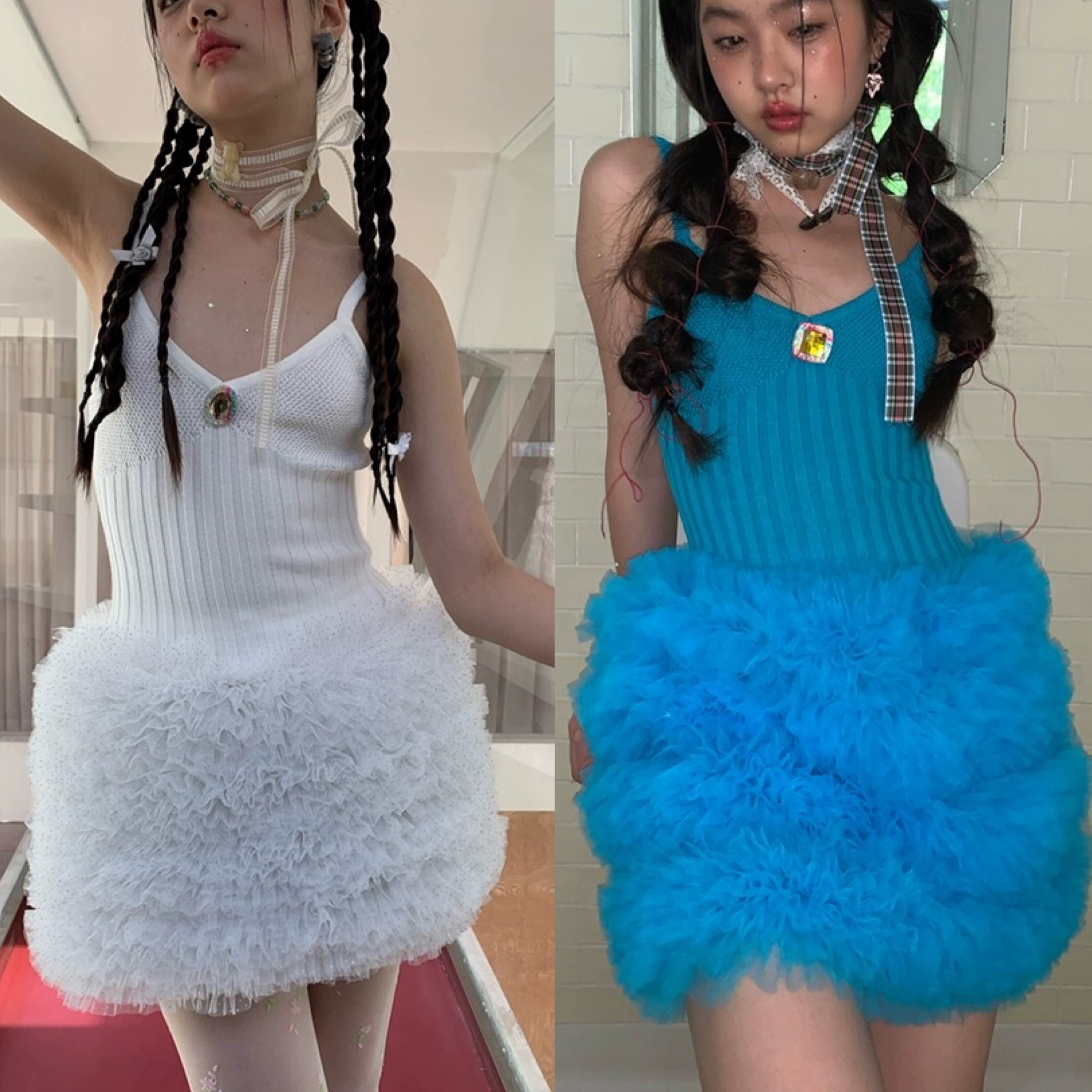 水色 ニット 白 ホワイト ガーリー ワンピース 可愛い セクシー