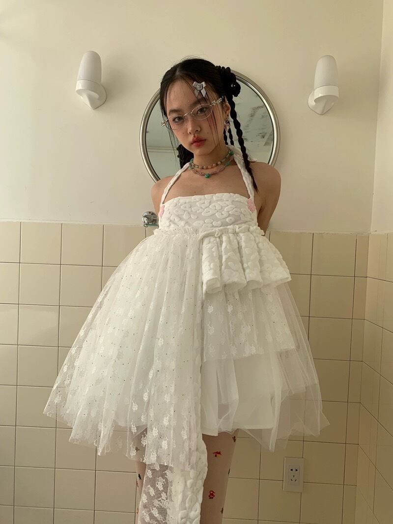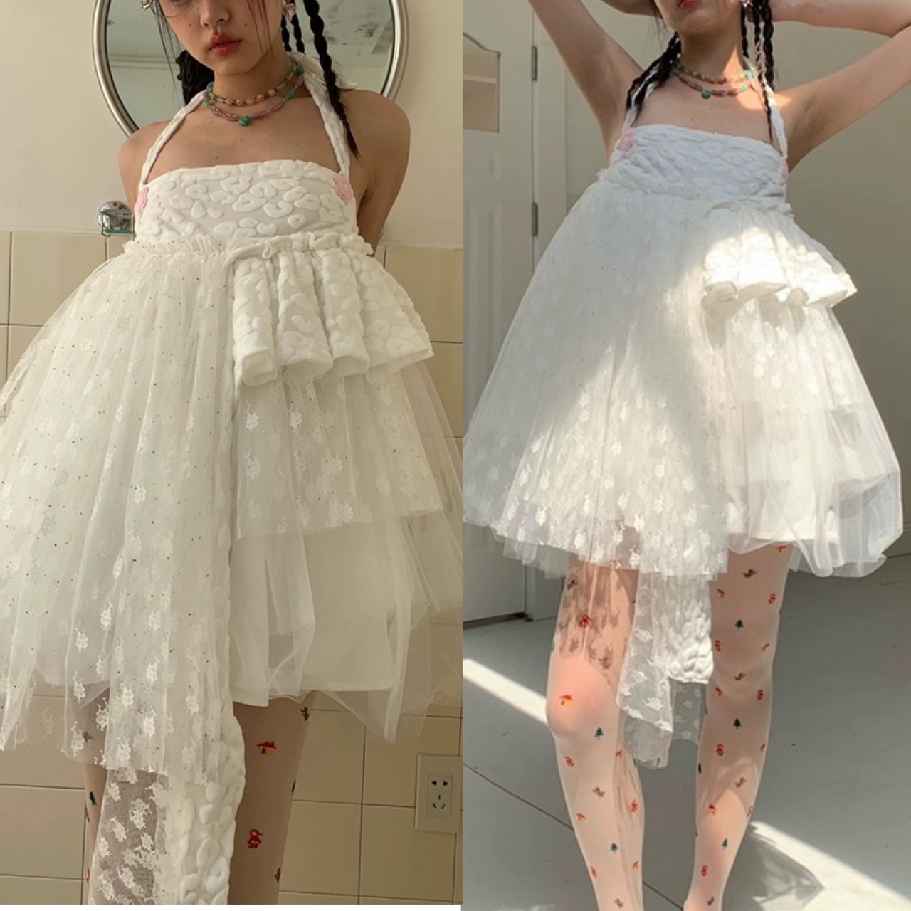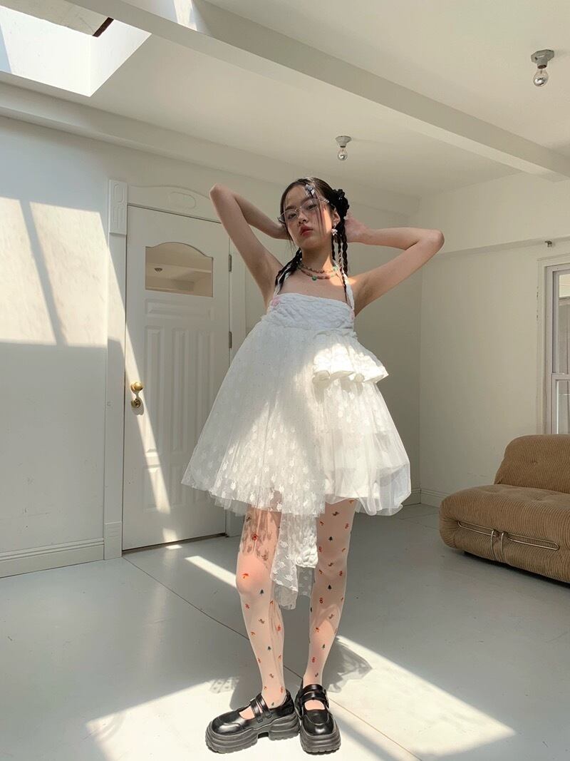 チュニック ワンピース 白 ホワイト ガーリー キャミソール ブラウス