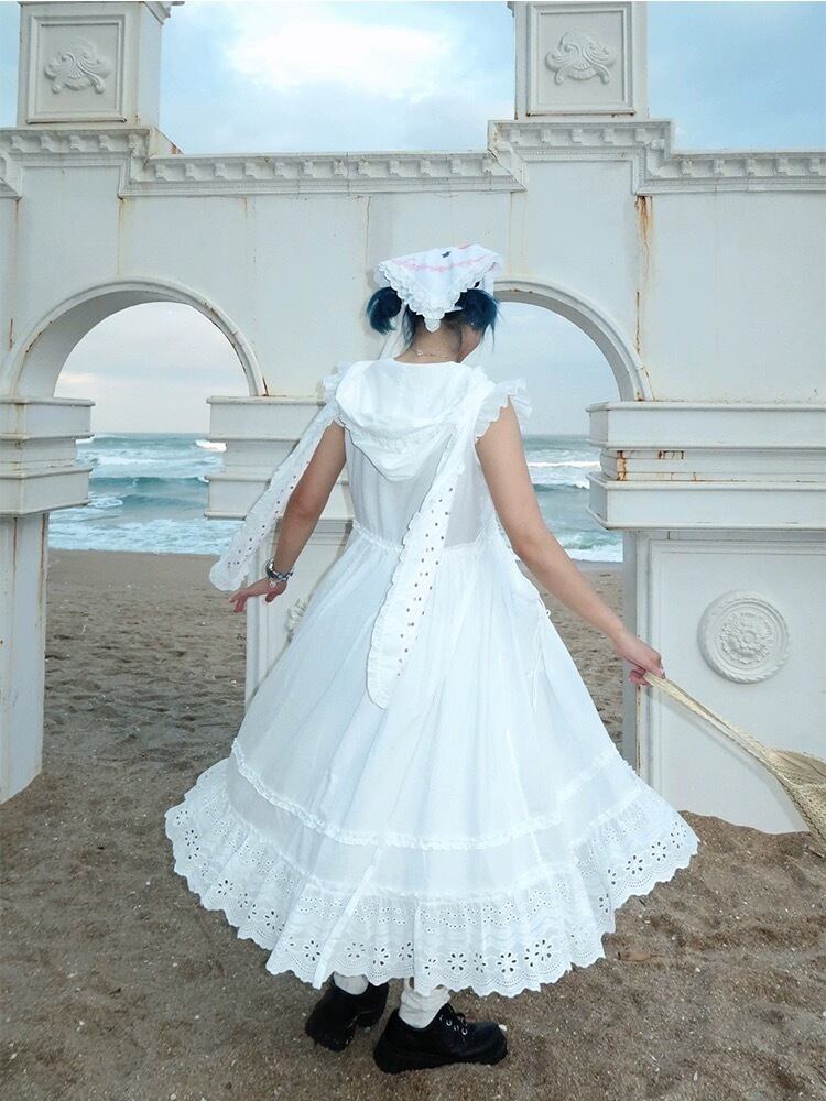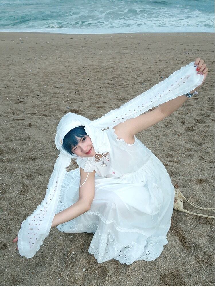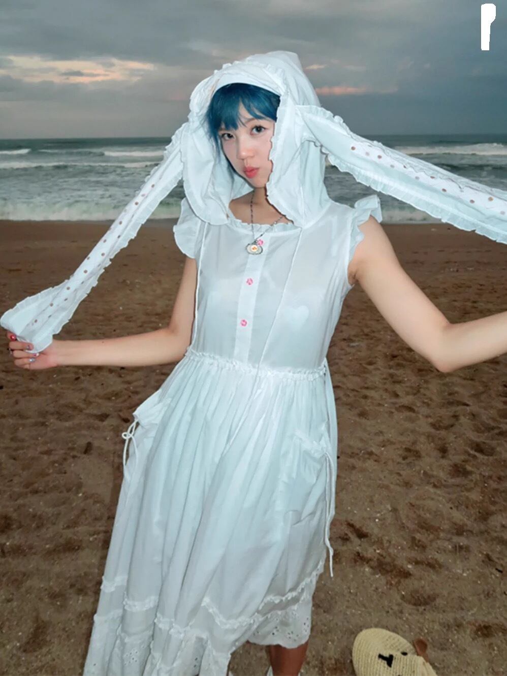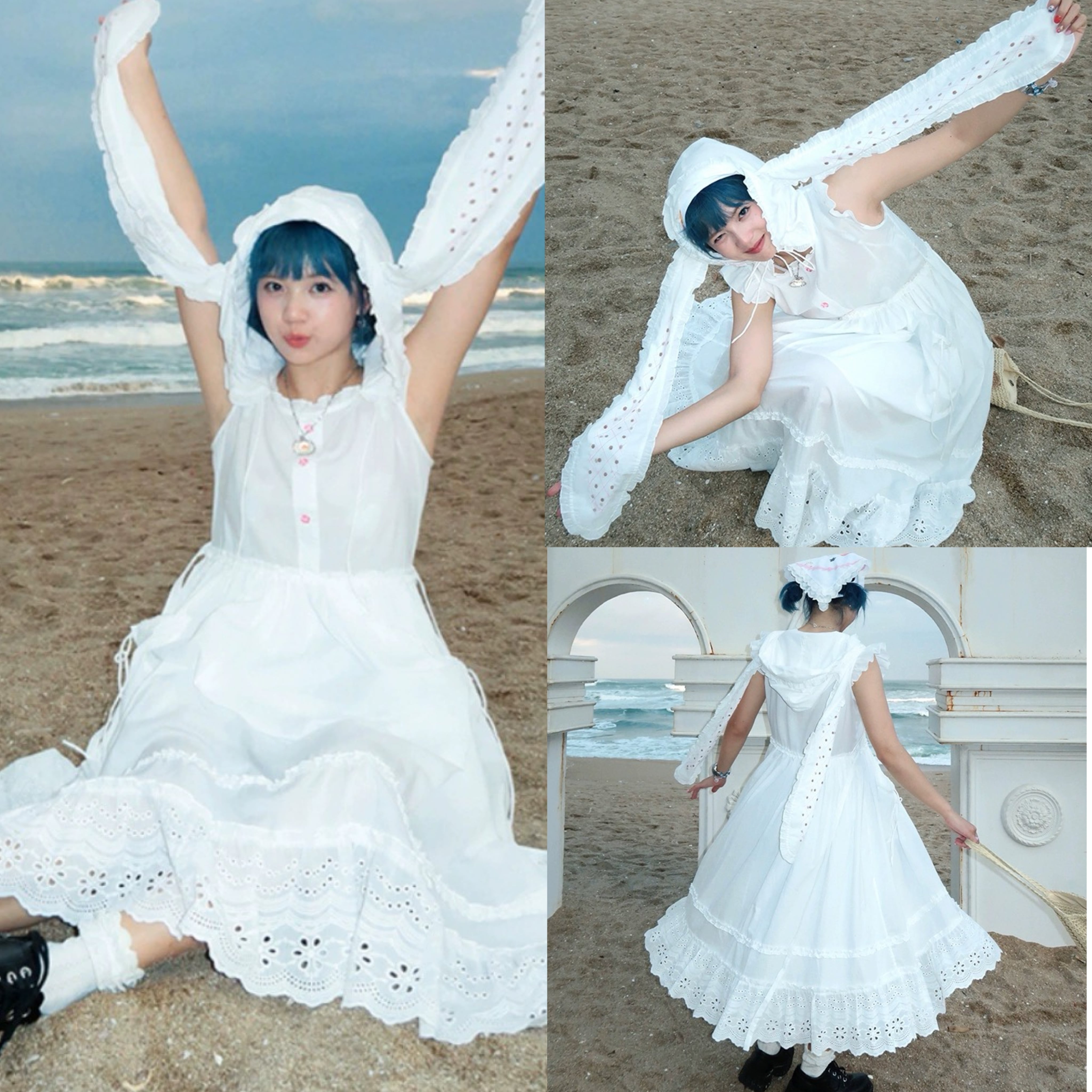 白 ガーリー ふわふわ ホワイト ブラウス ガーリー ワンピース うさぎ フード