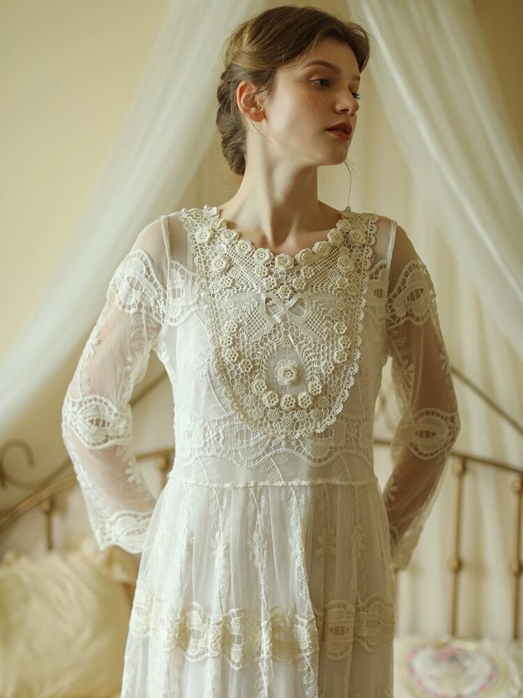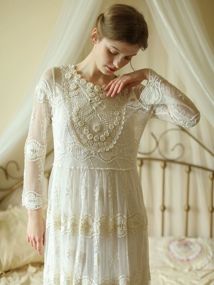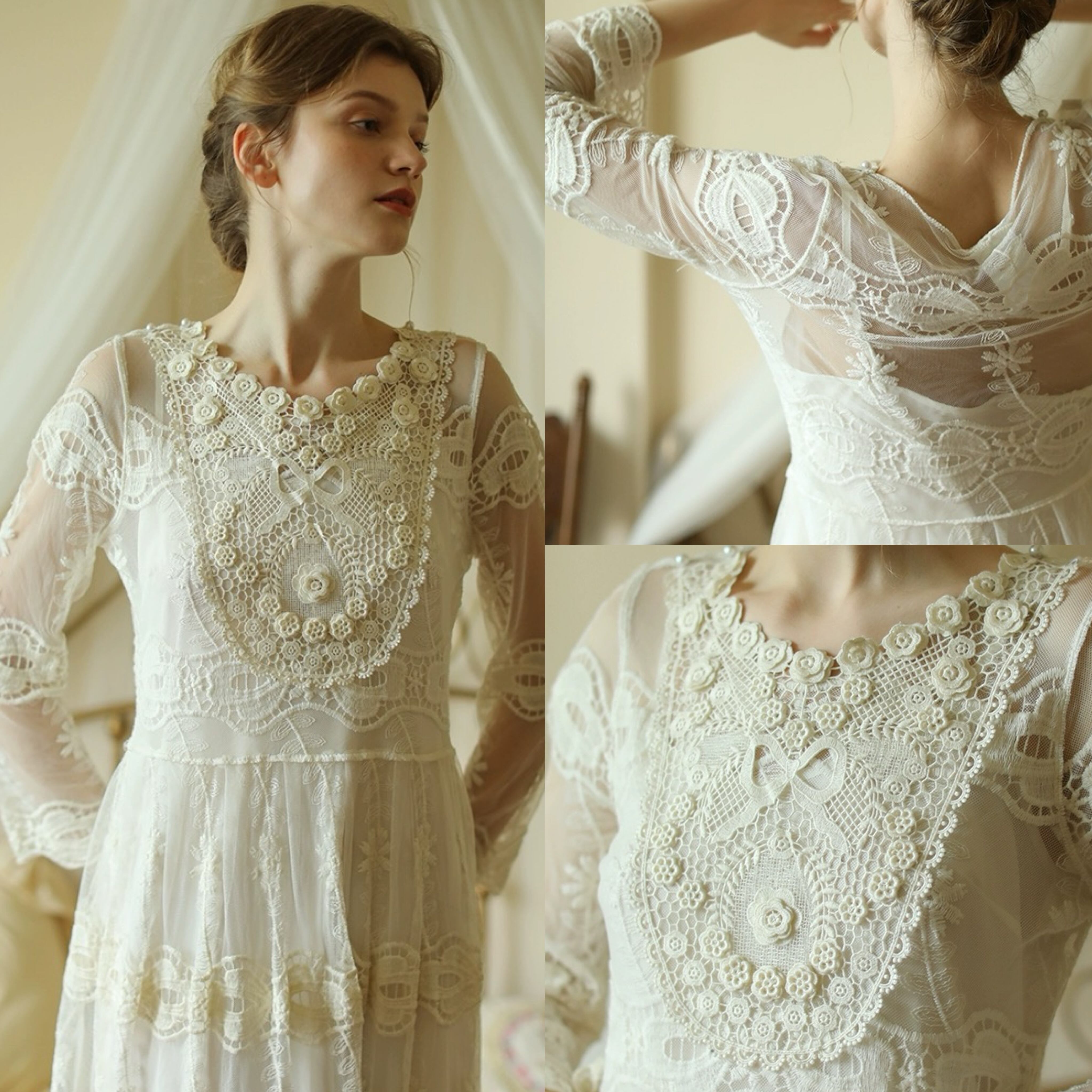 レース ホワイト 白 花柄 フラワー ブラウス ワンピース エレガント
