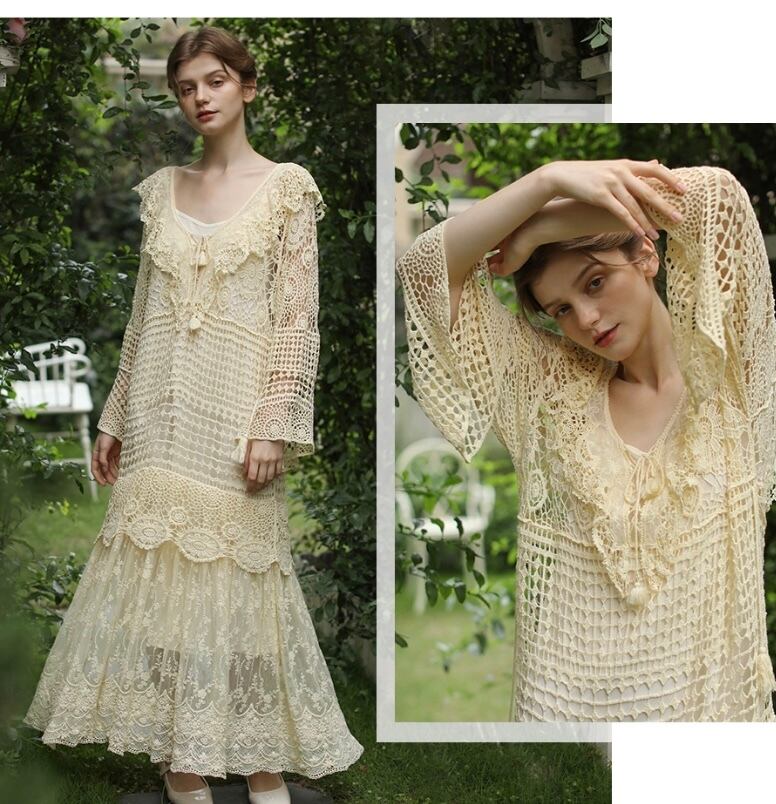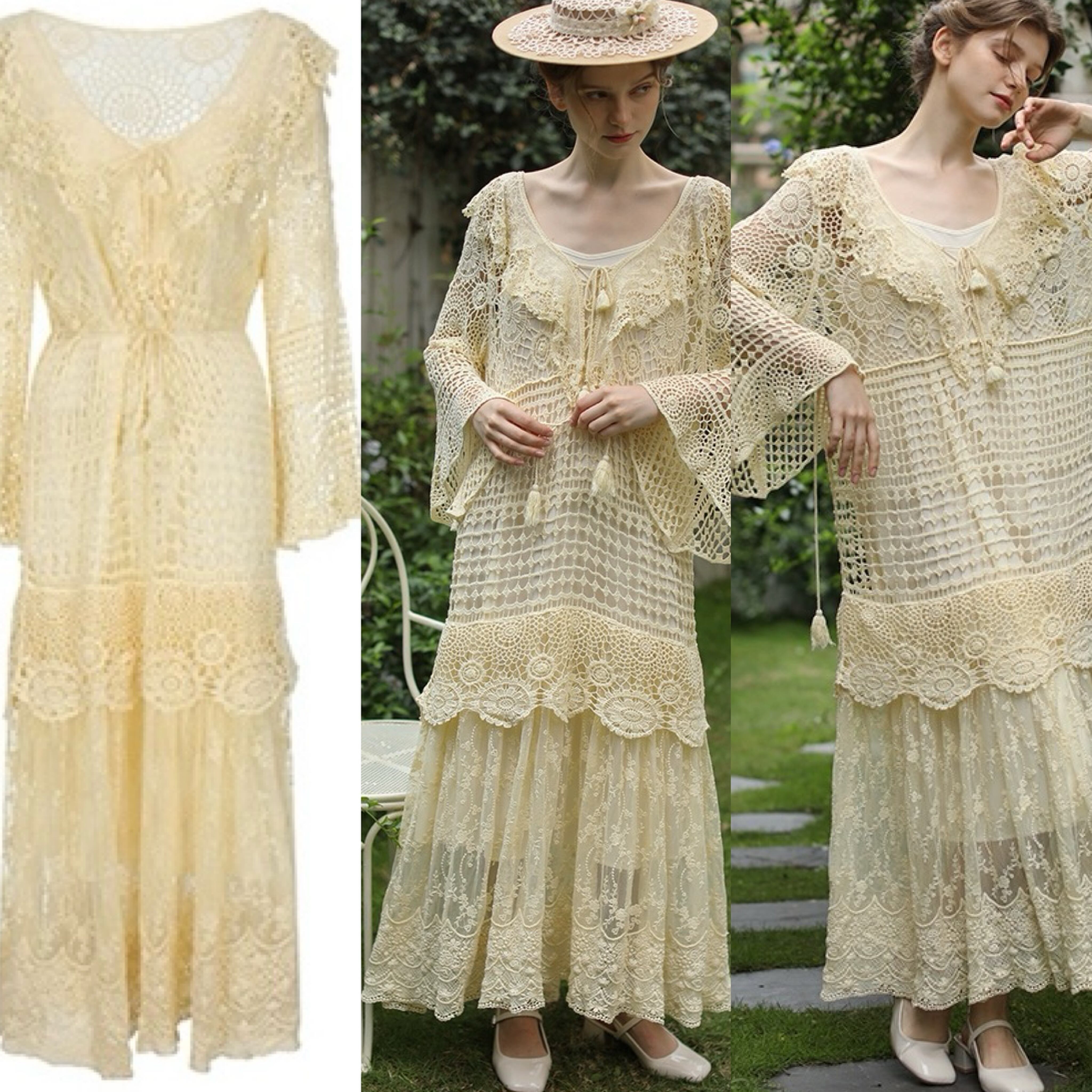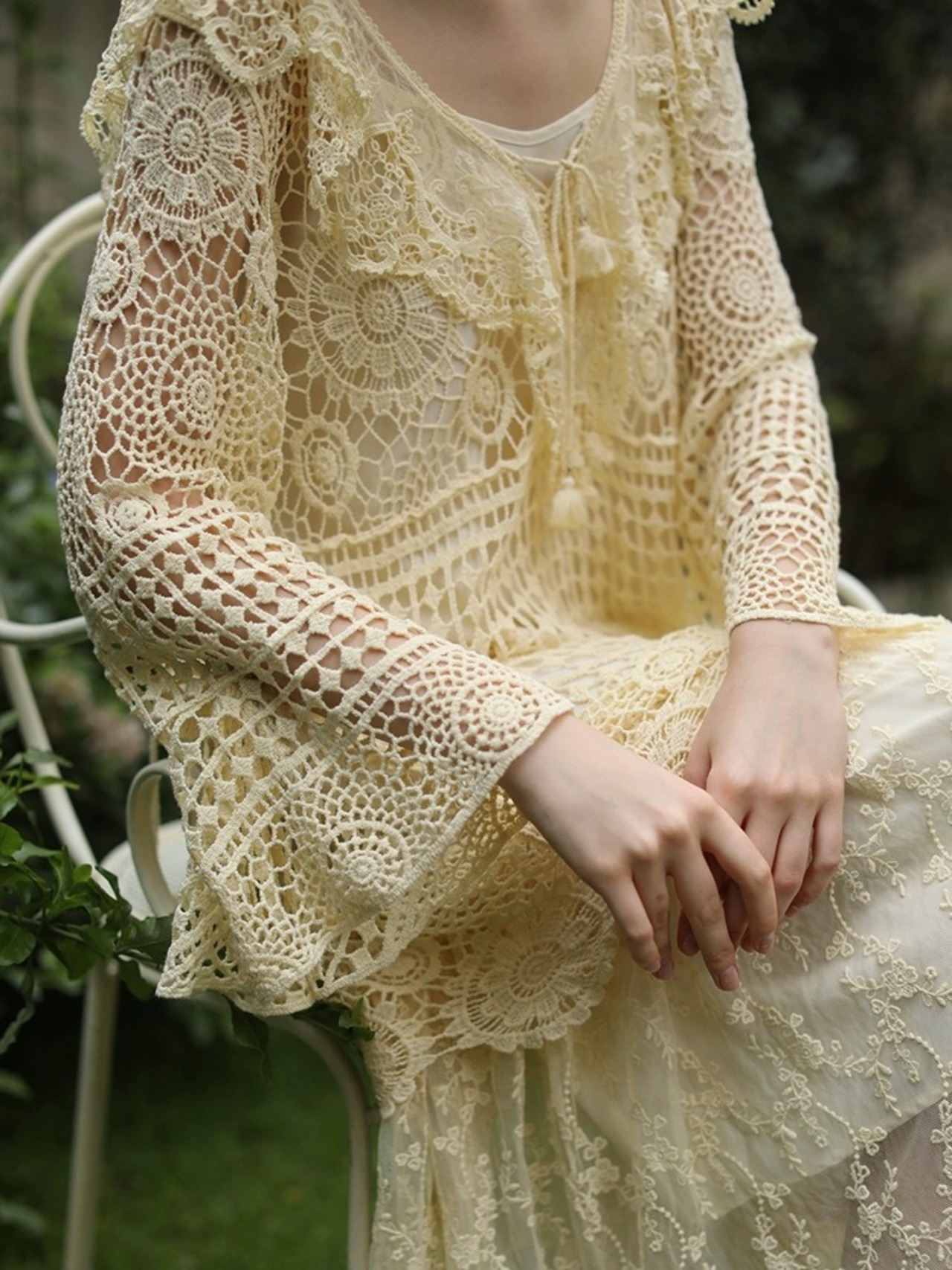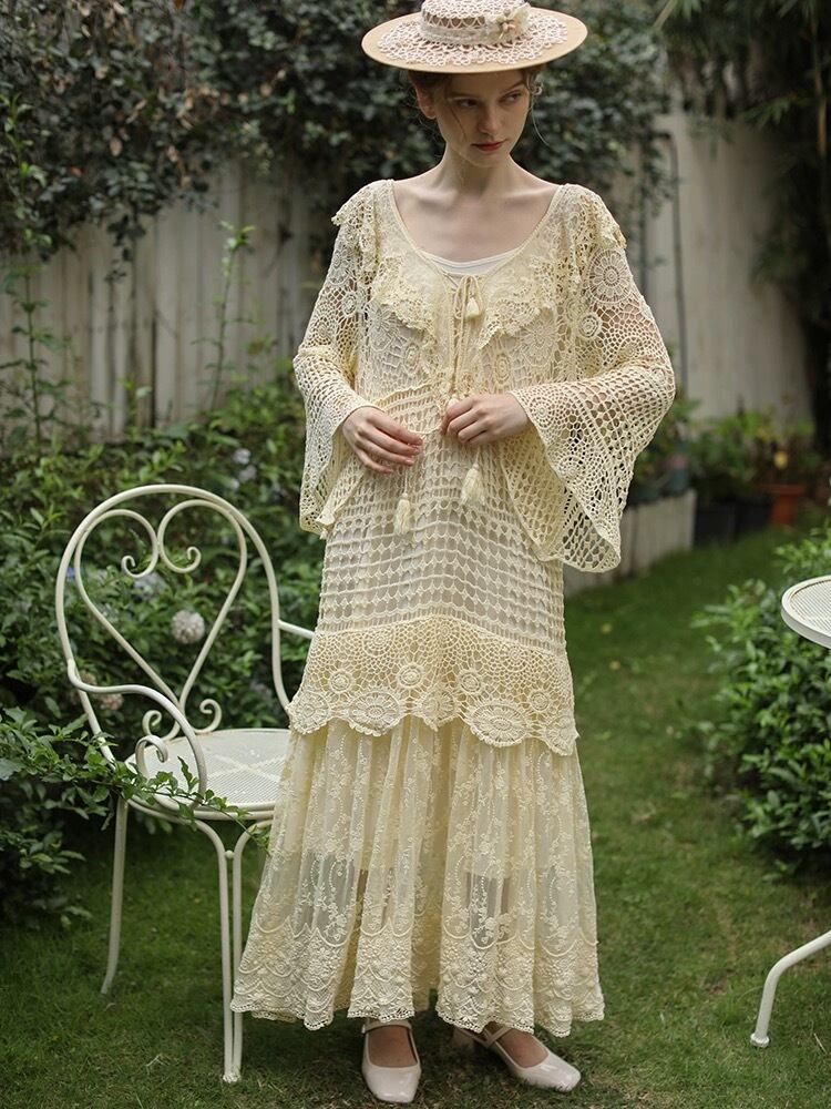 黄色 ベージュ カーディガン ワンピース あみあみ メッシュ ガーリー 可愛い