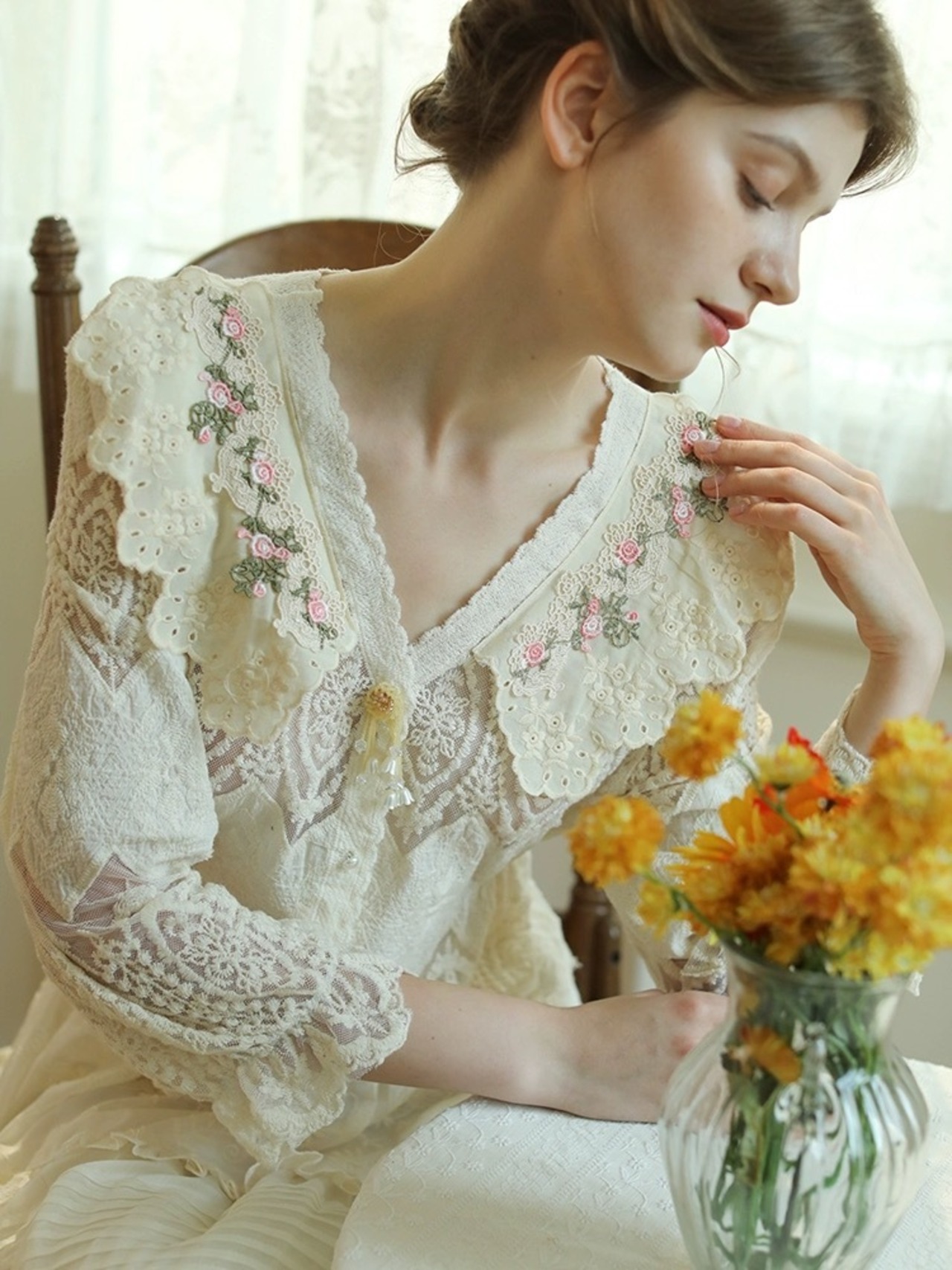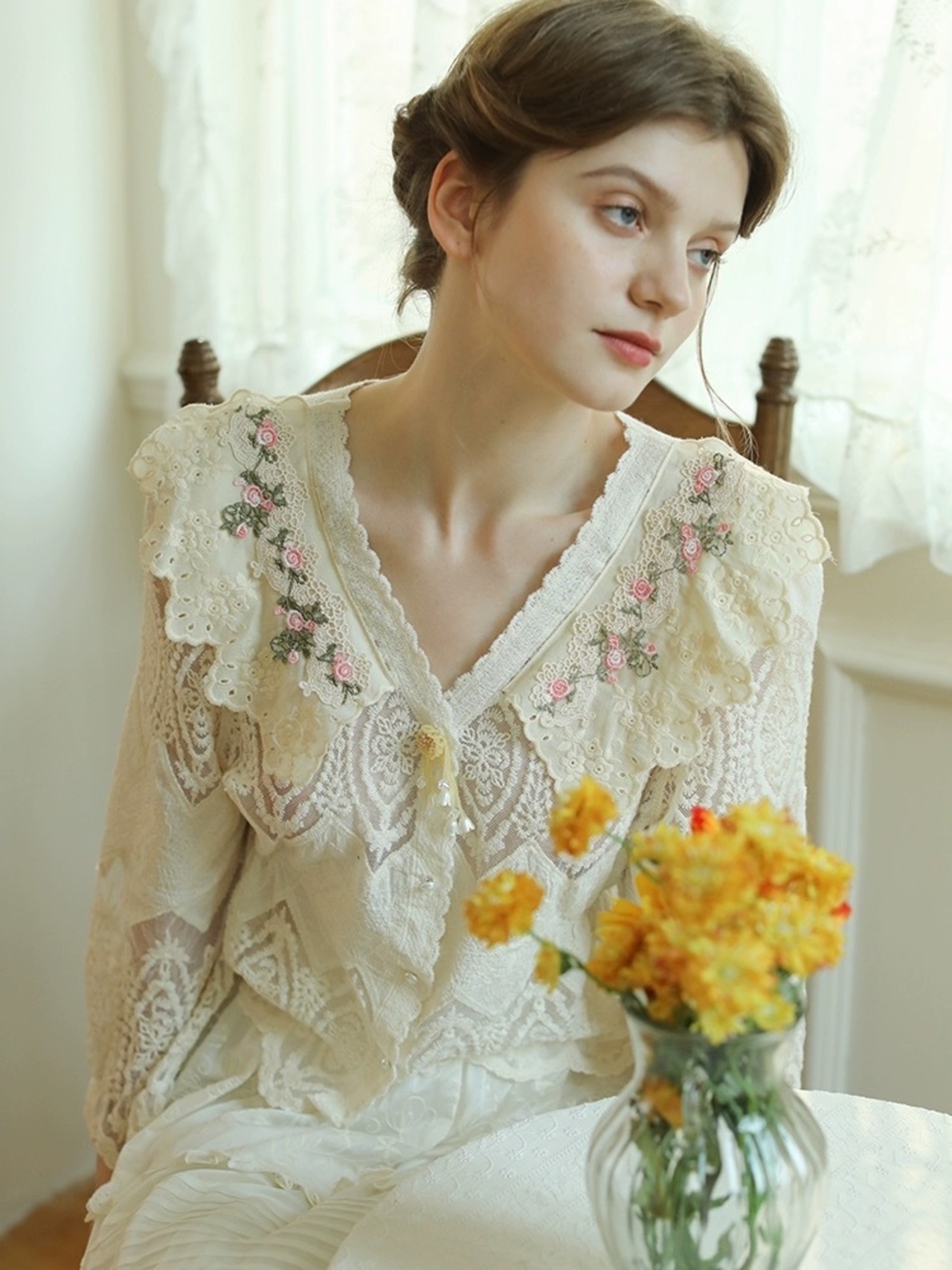 カーディガン ガーリー ベージュ 白 花柄 ブラウス ホワイト