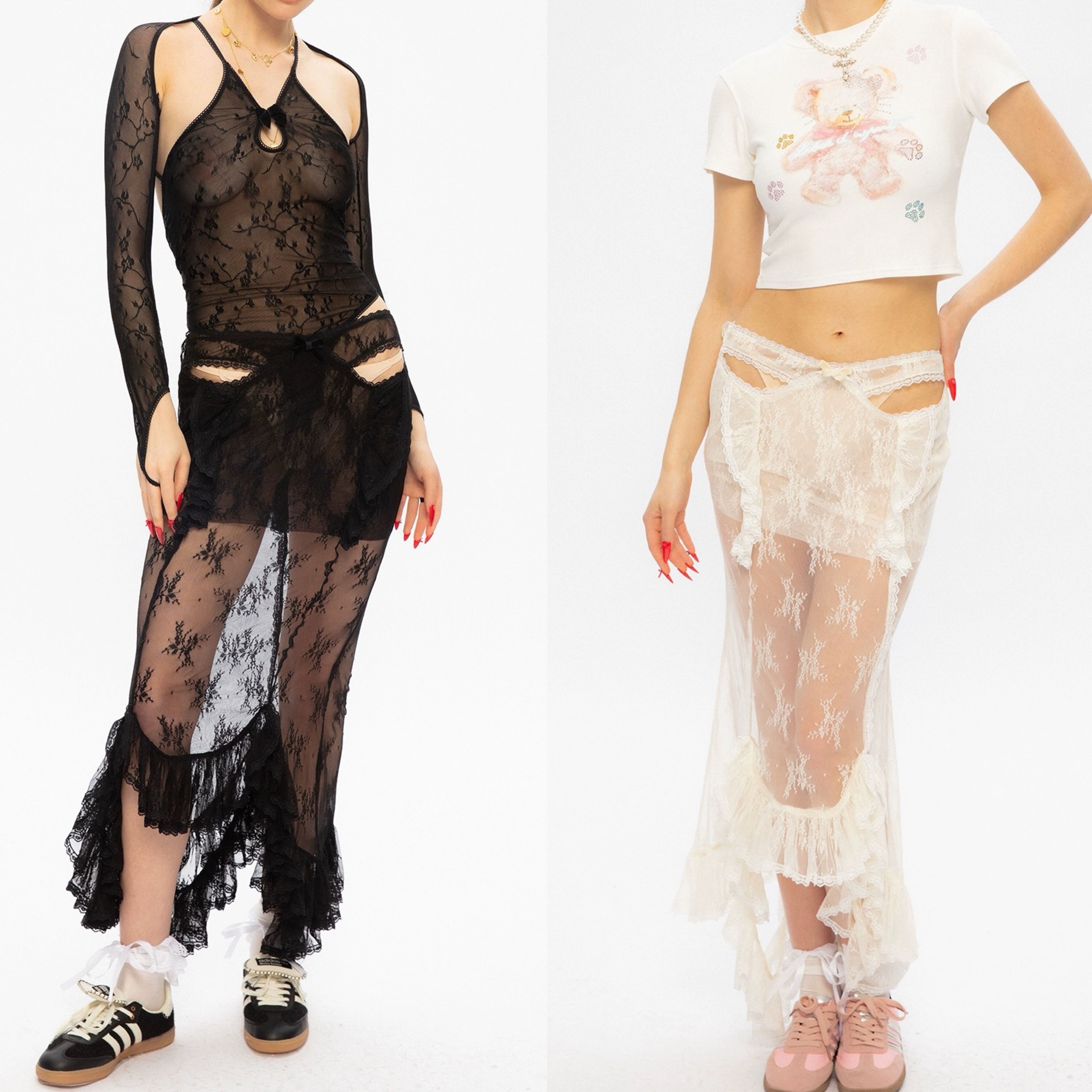 【ボトムス】スカート レース 黒 白 ホワイト セクシー シースルー