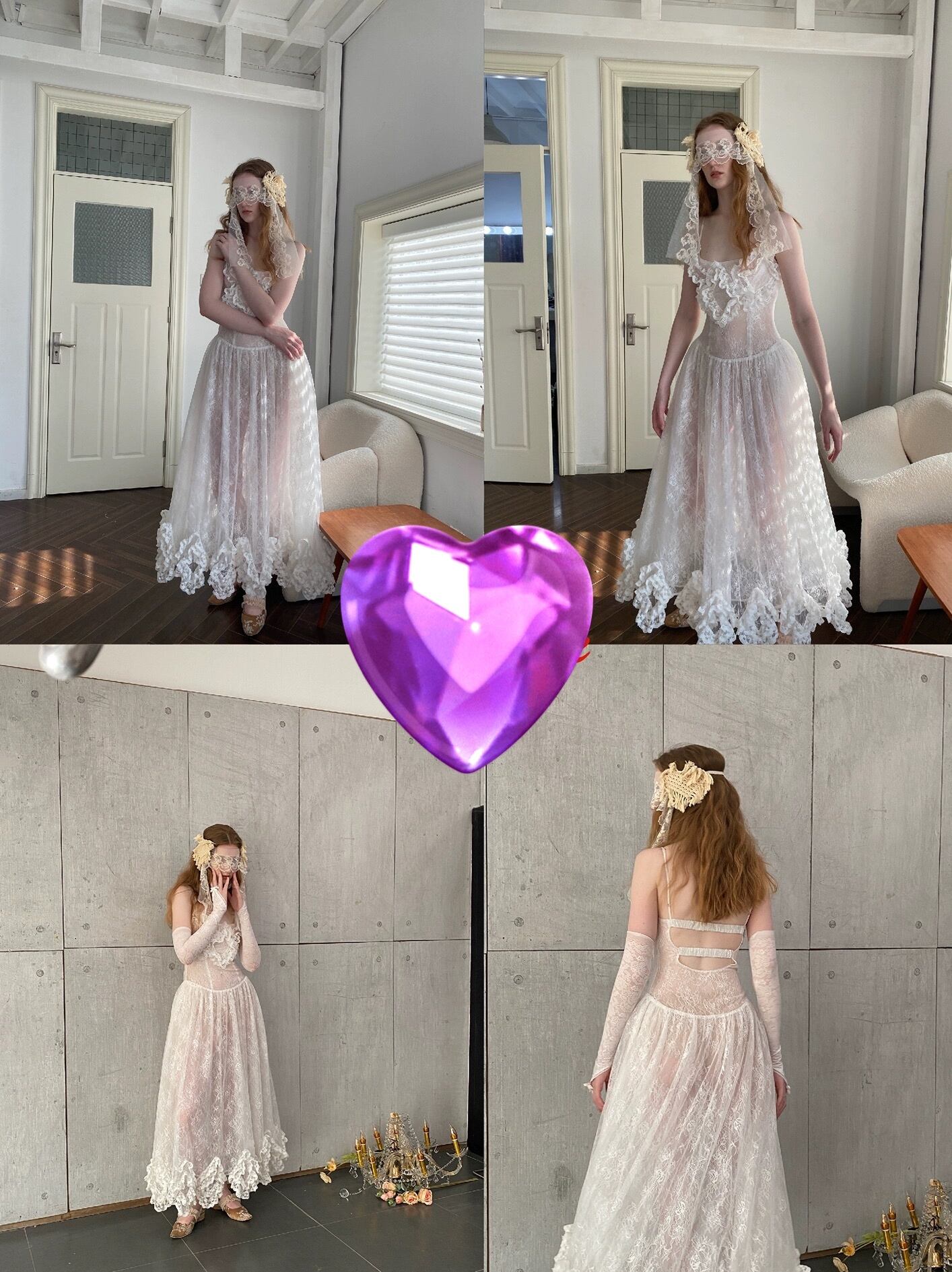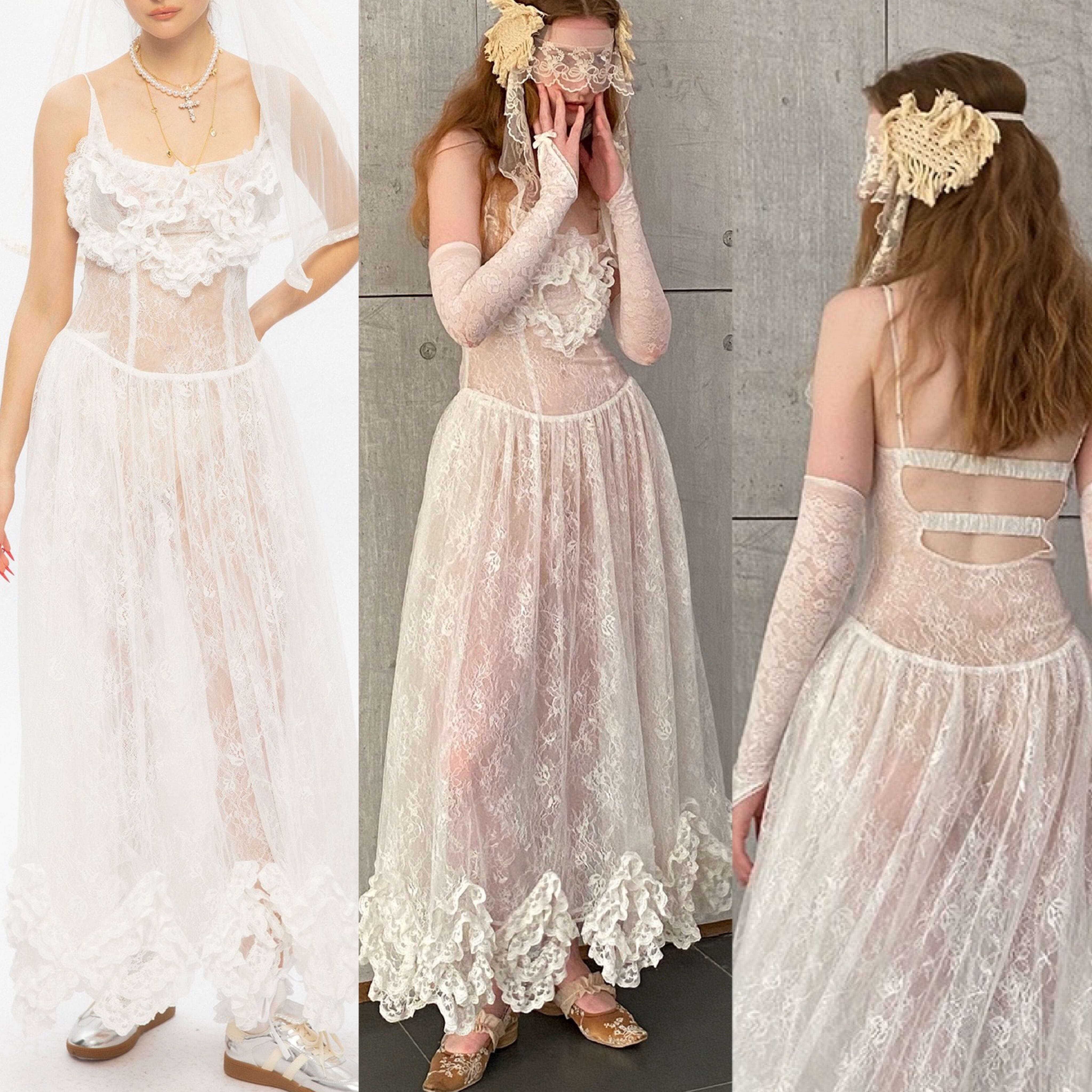 シースルー 花柄 レース キャミソール フラワー ワンピース 白 ホワイト
