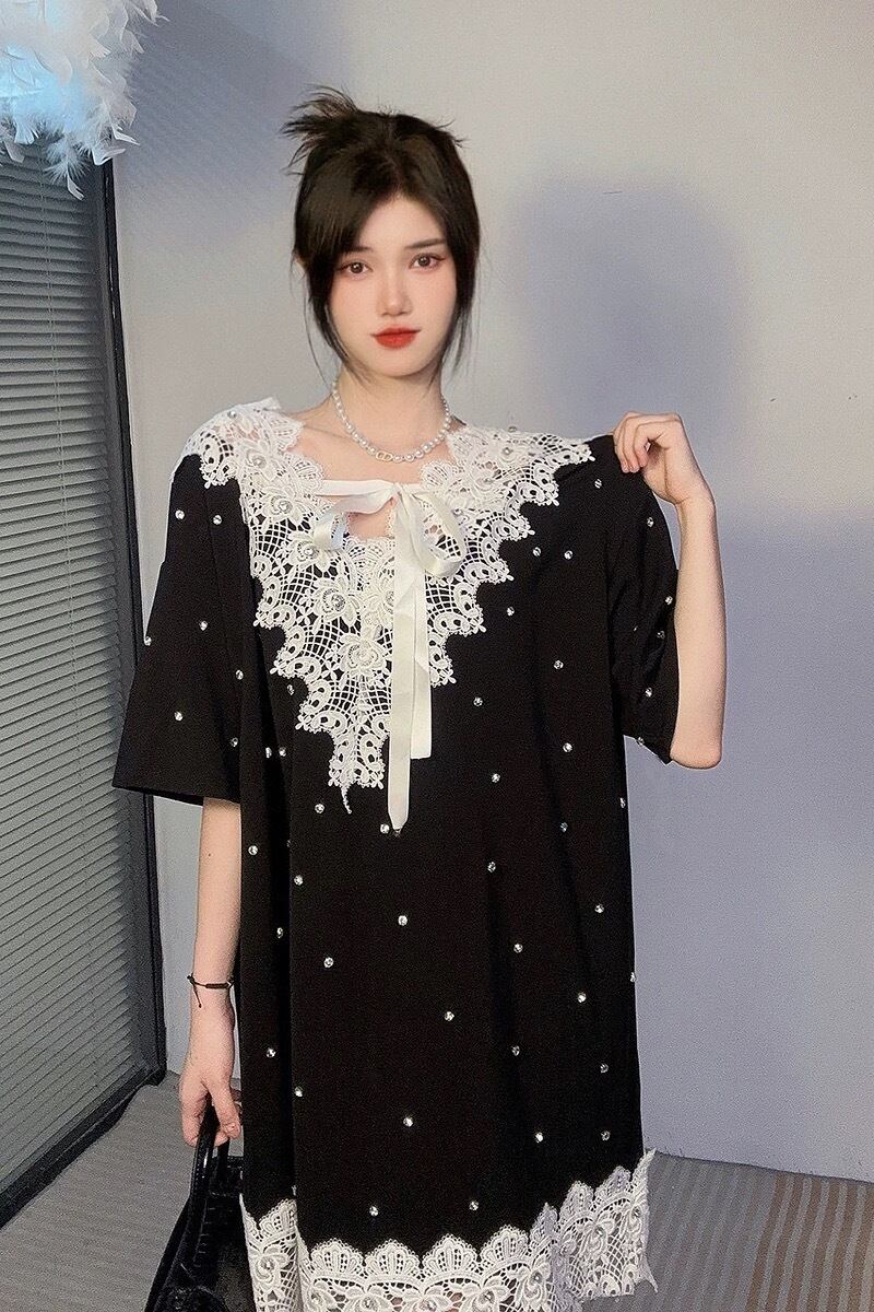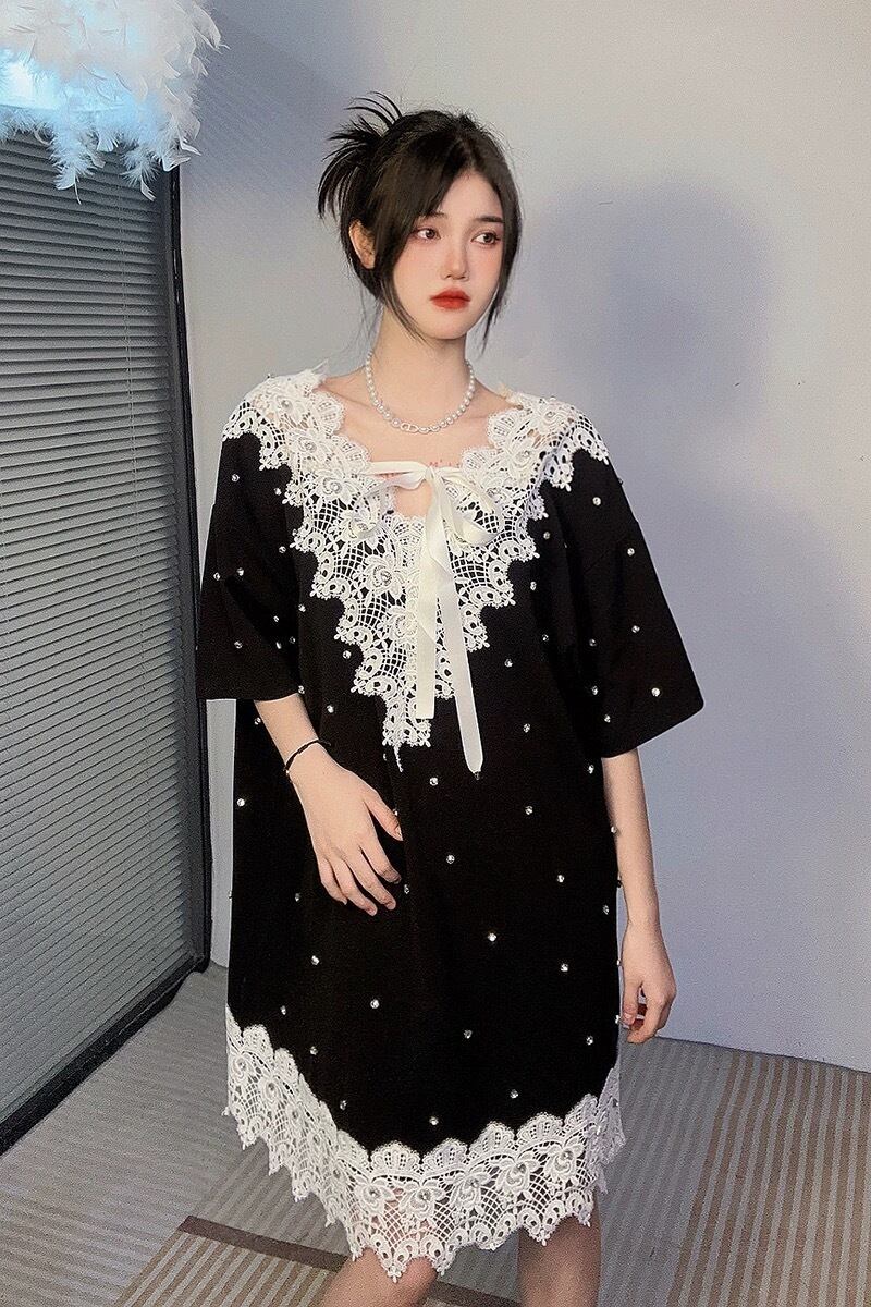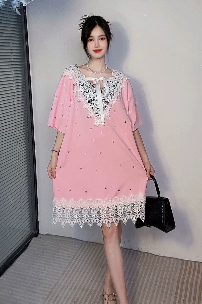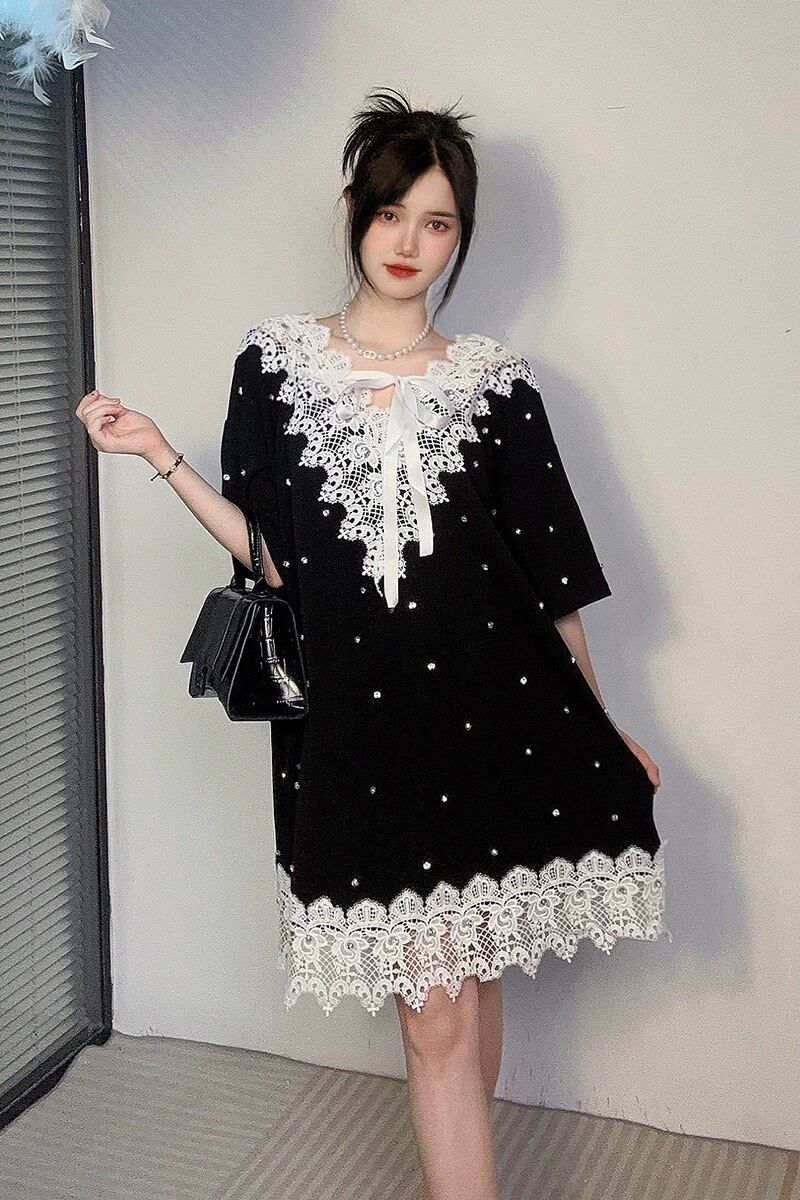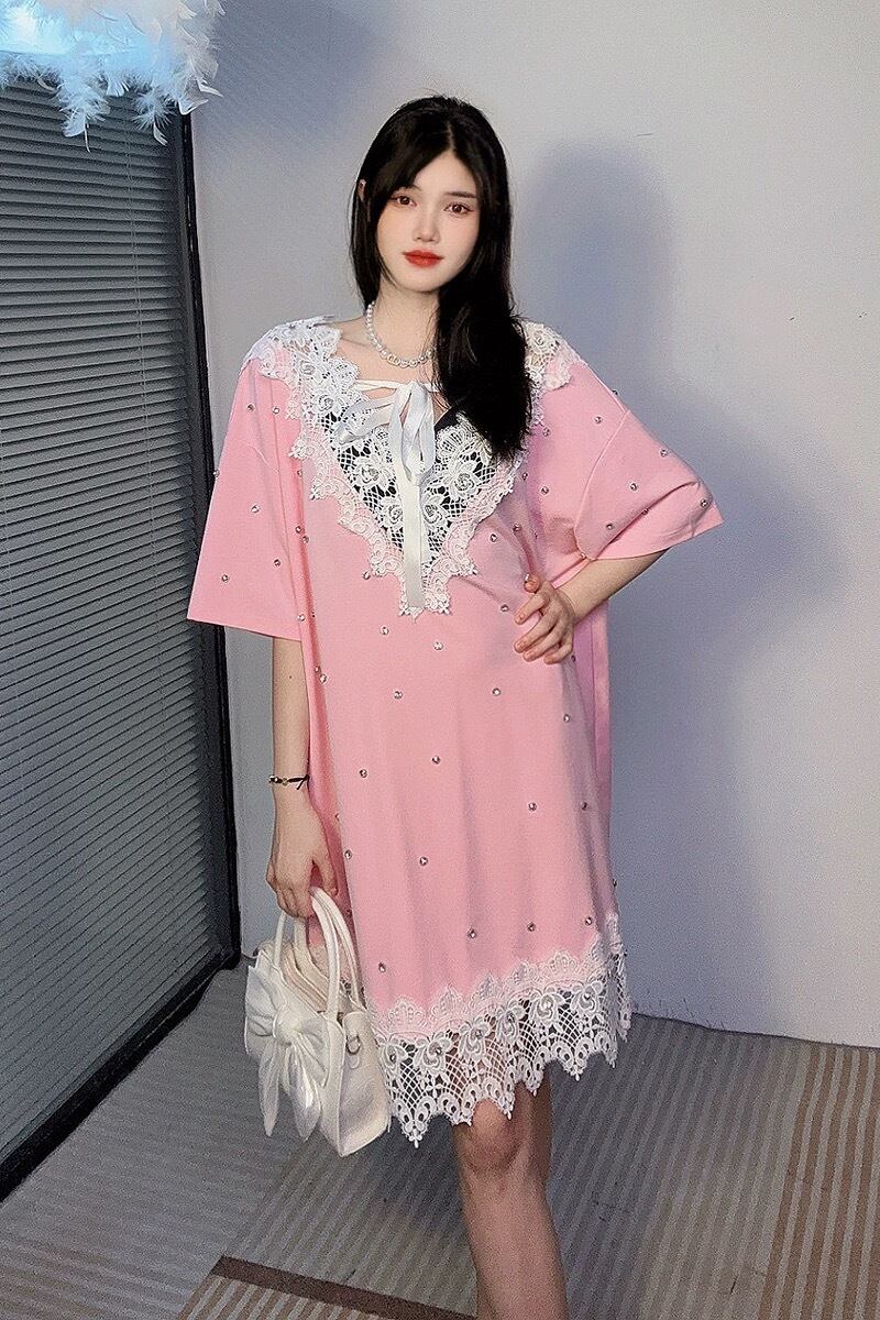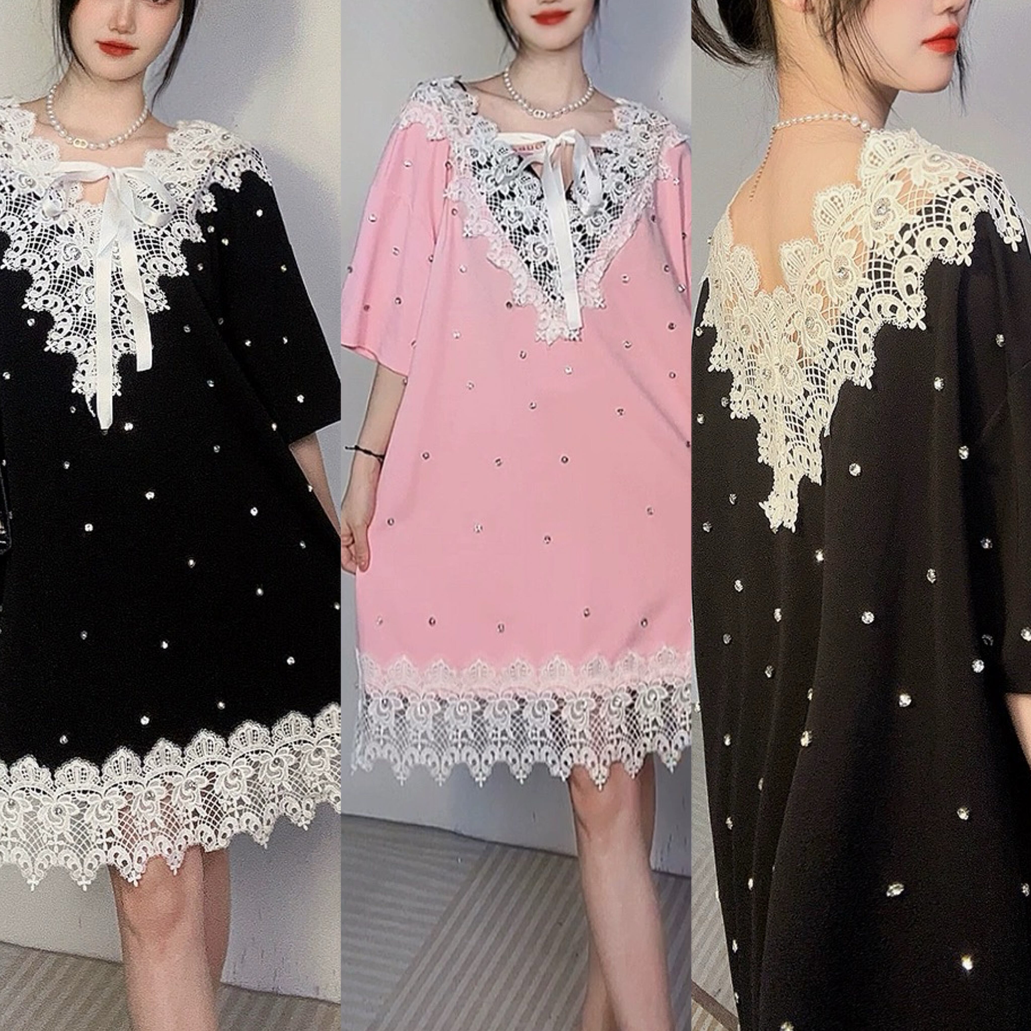 ピンク ラインストーン キラキラ 黒 ブラウス ワンピース