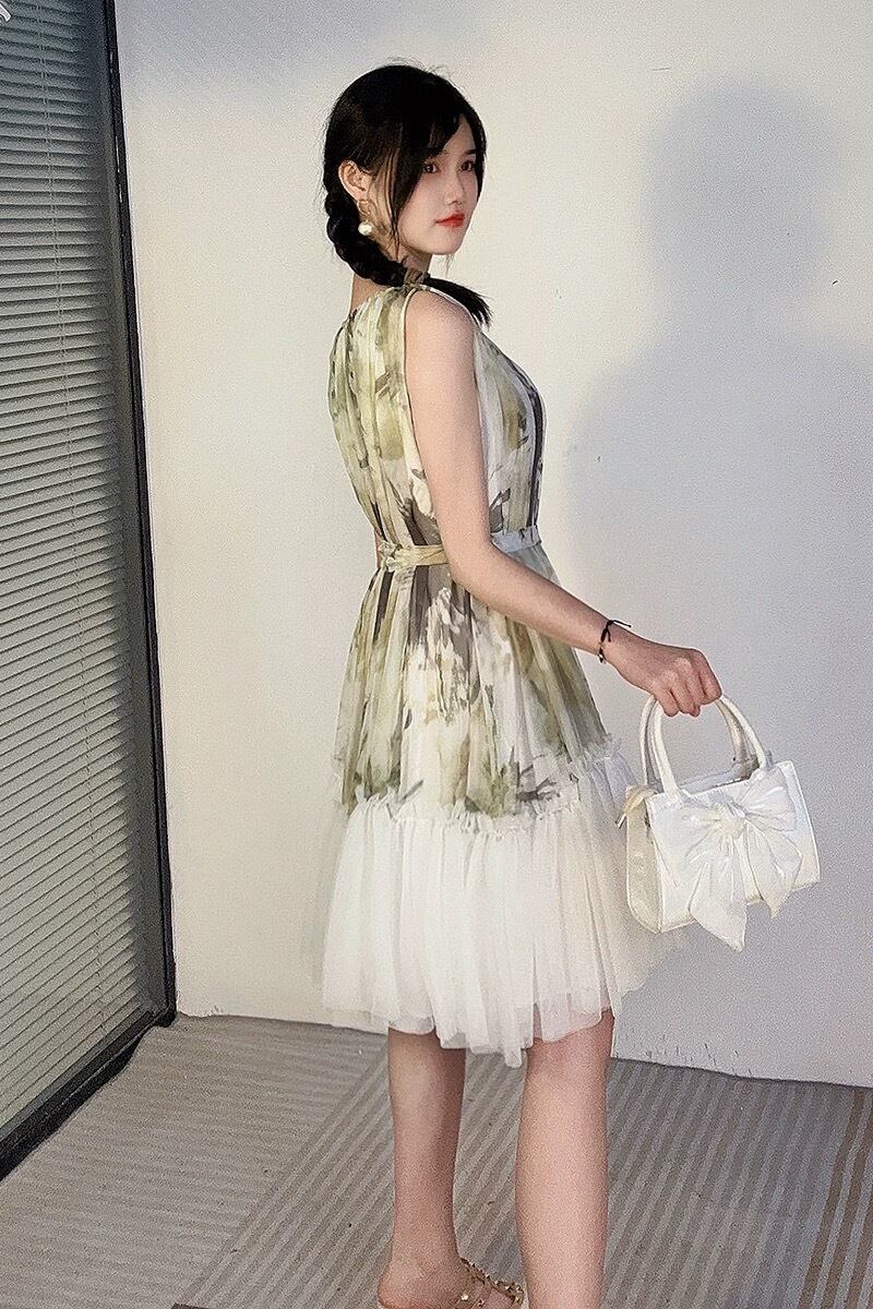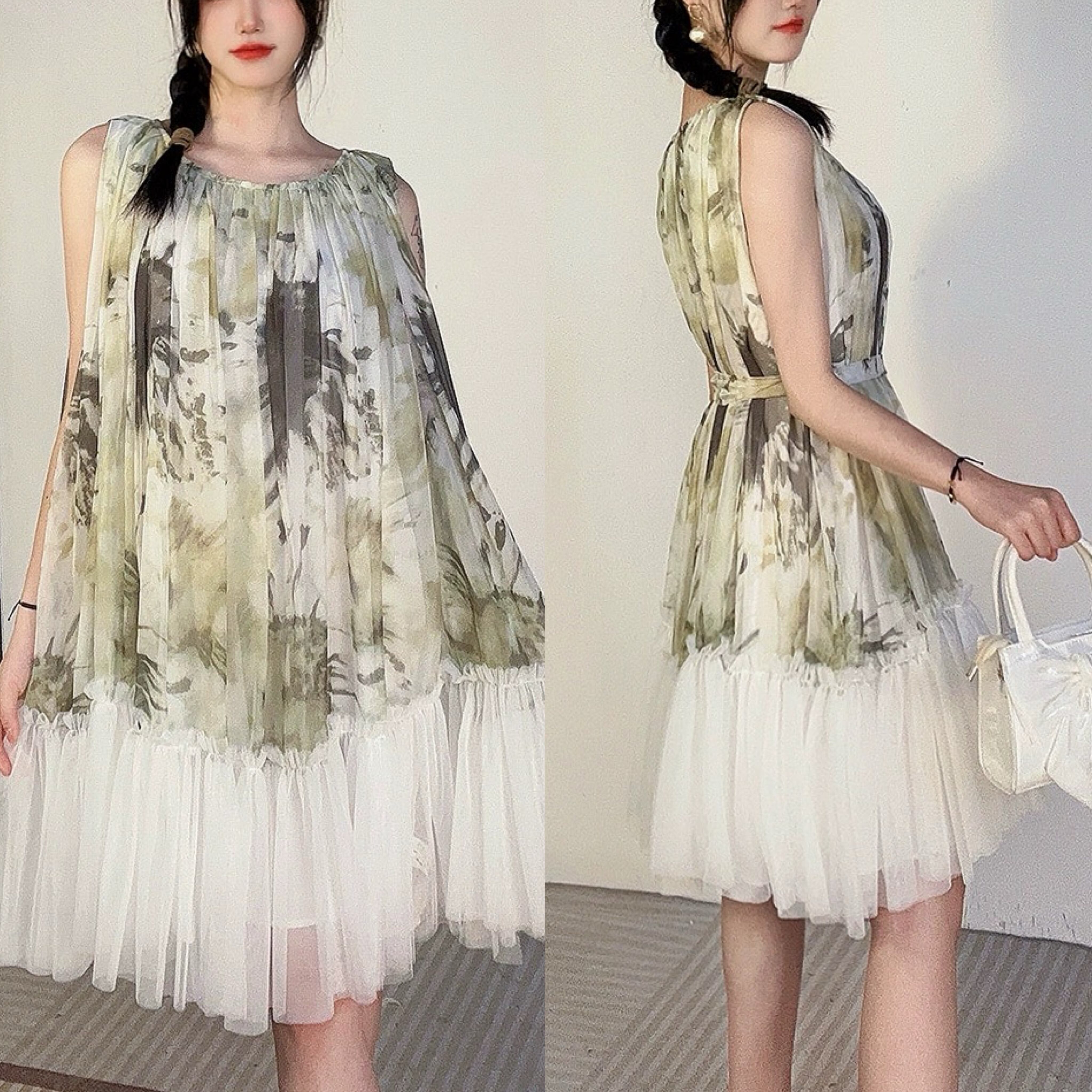 緑 フラワー チュニック ブラウス ワンピース ノースリーブ