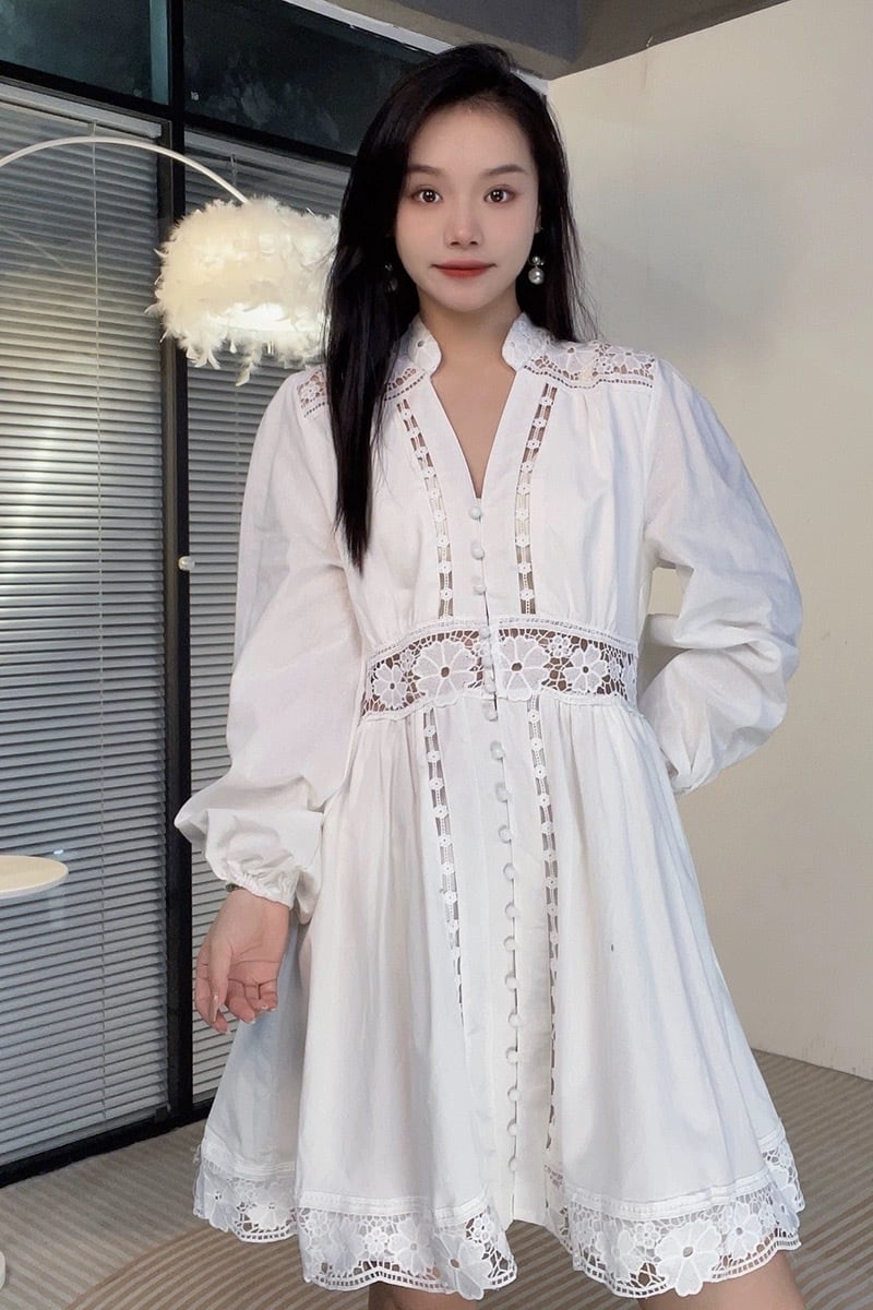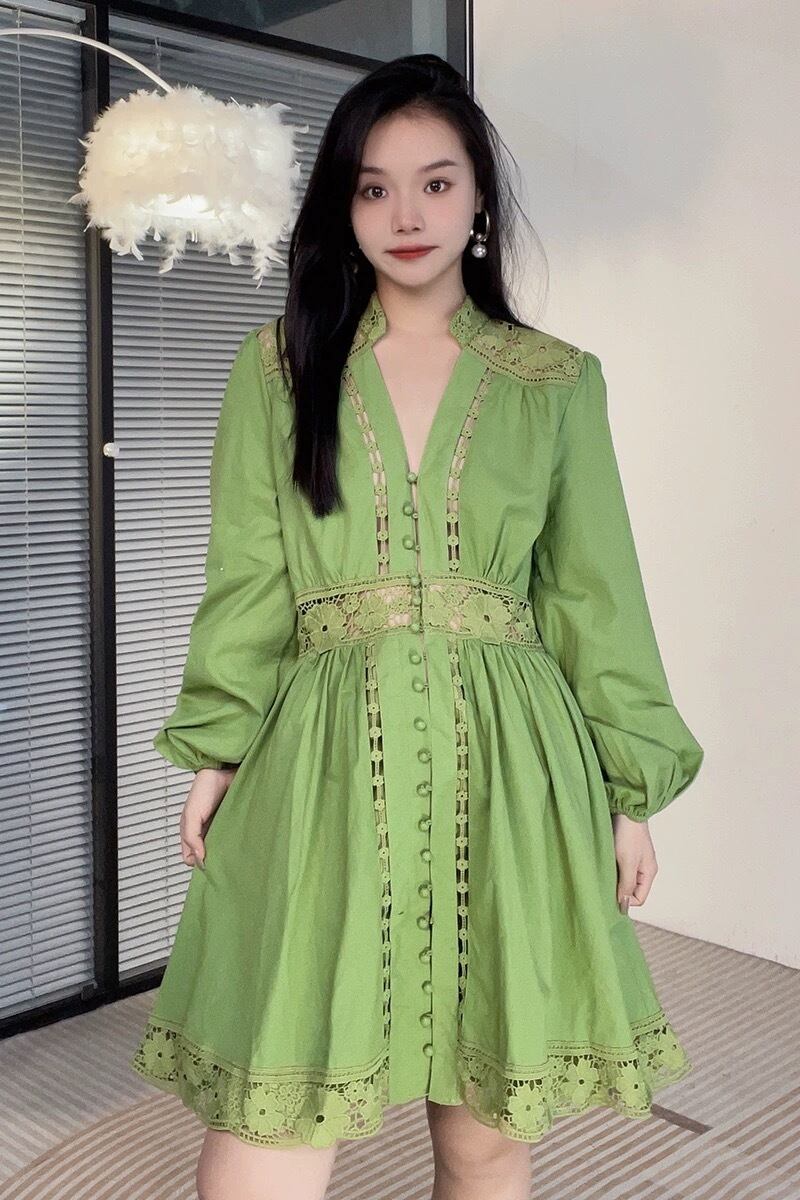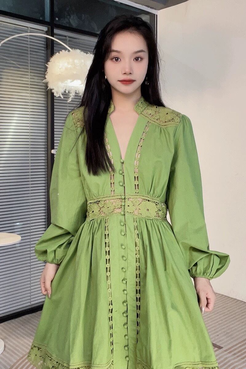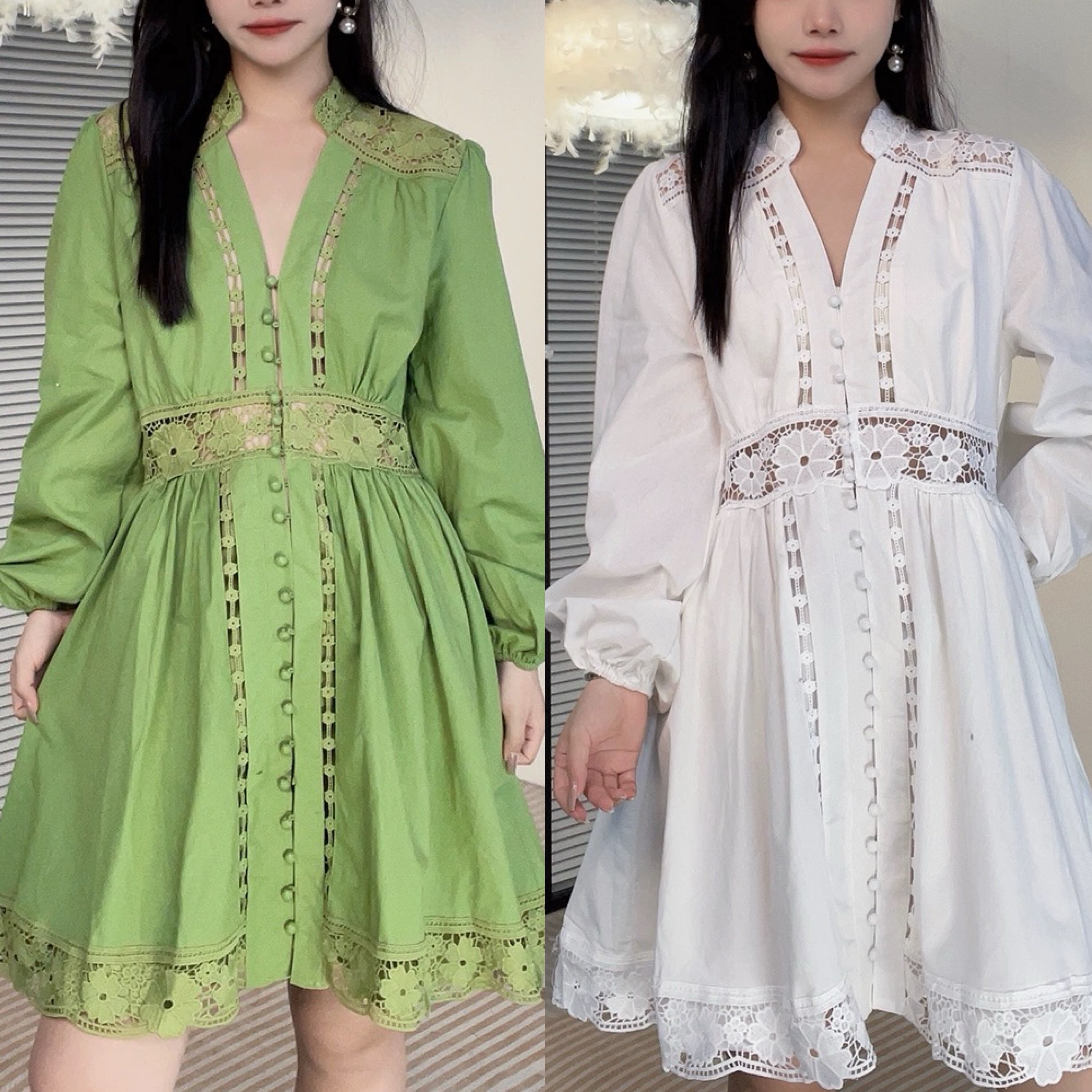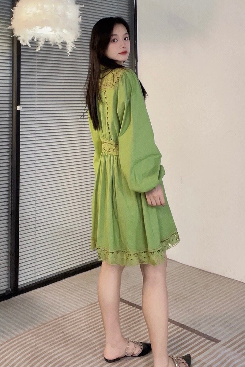 緑 白 花柄 フラワー ブラウス ワンピース レース