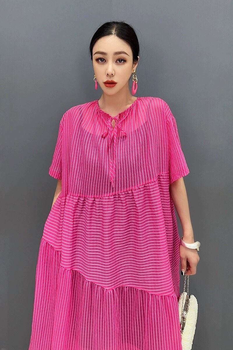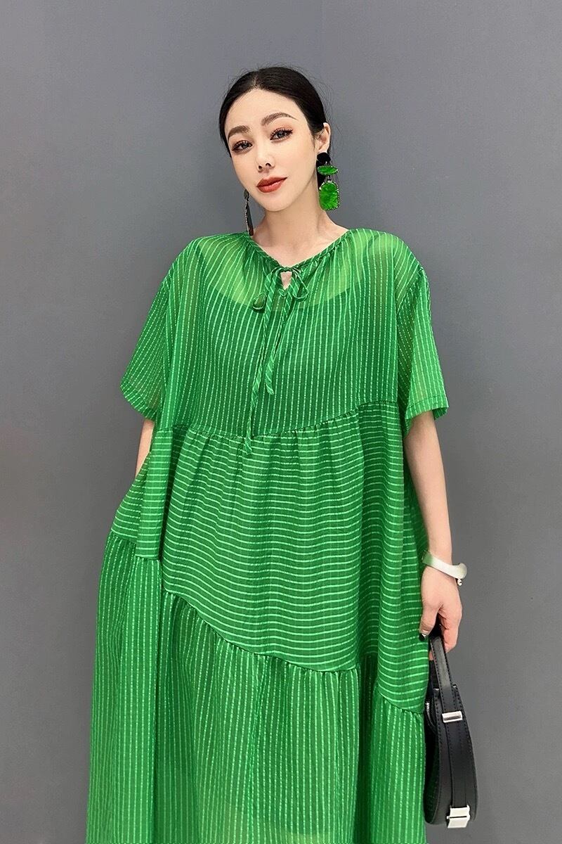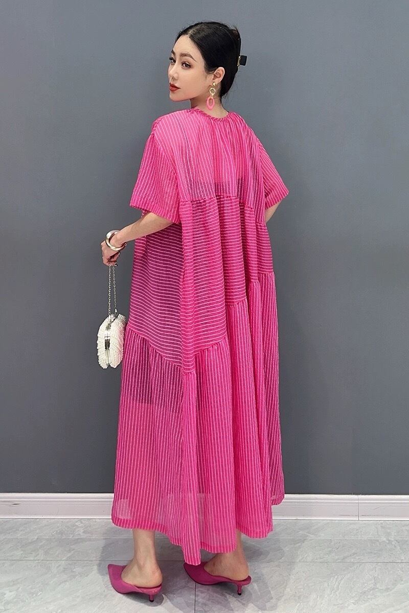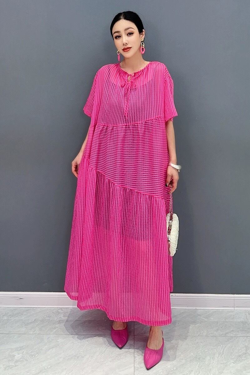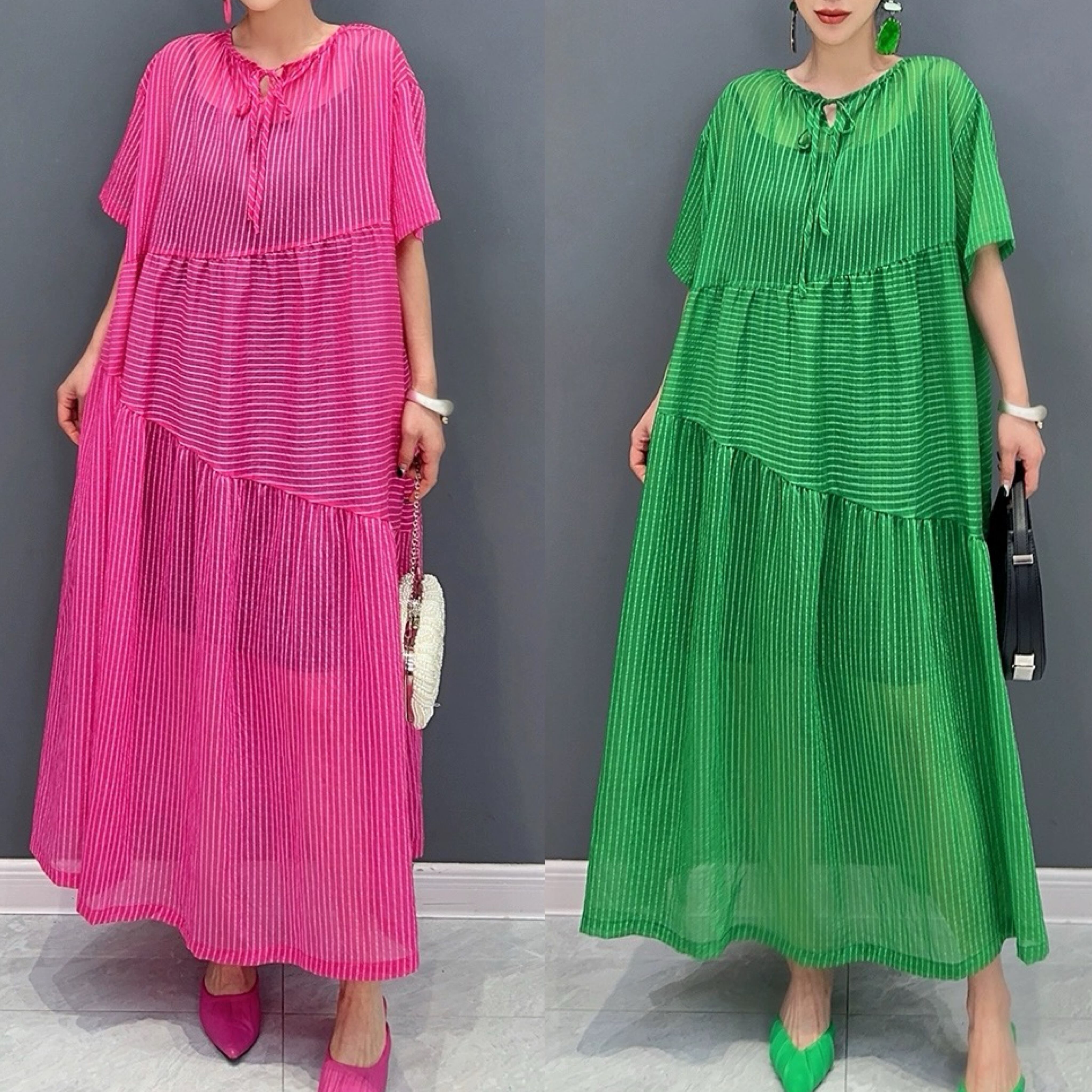 緑 ピンク ゆったり ワンピース カジュアル シースルー