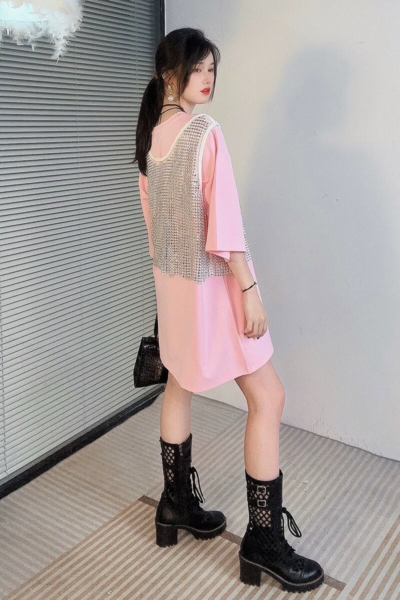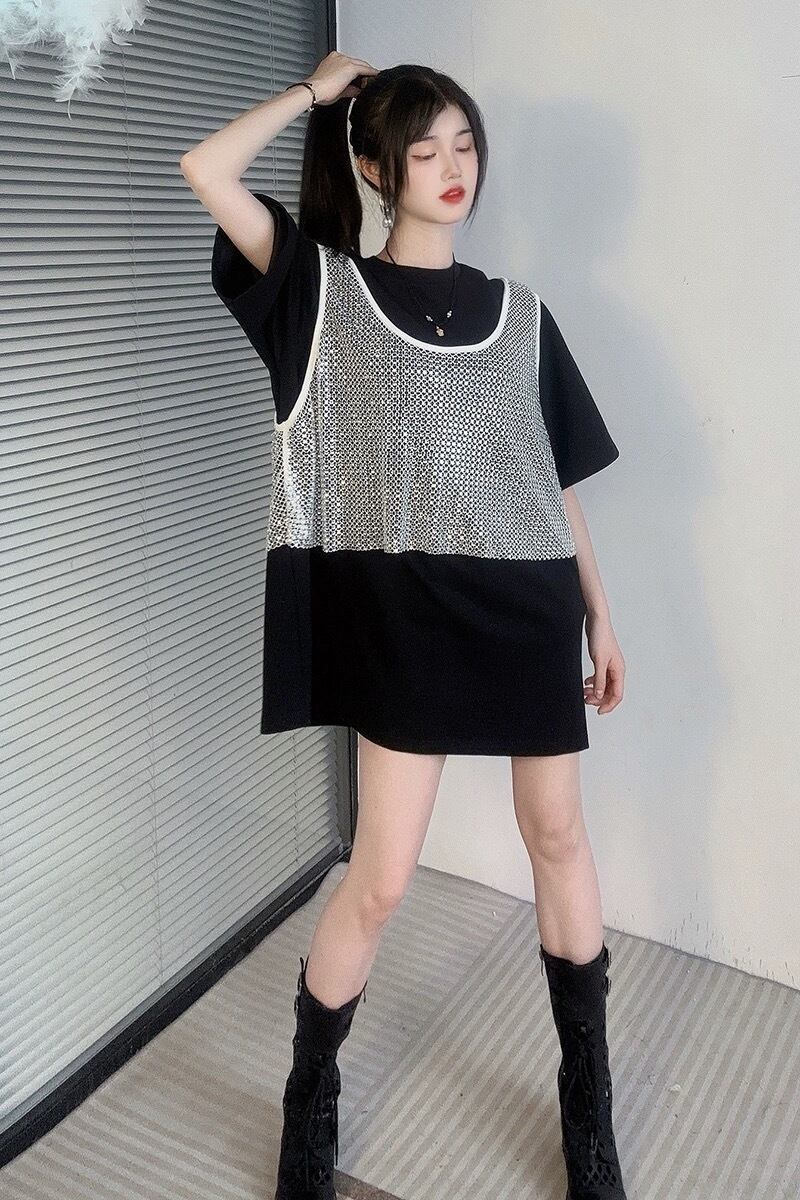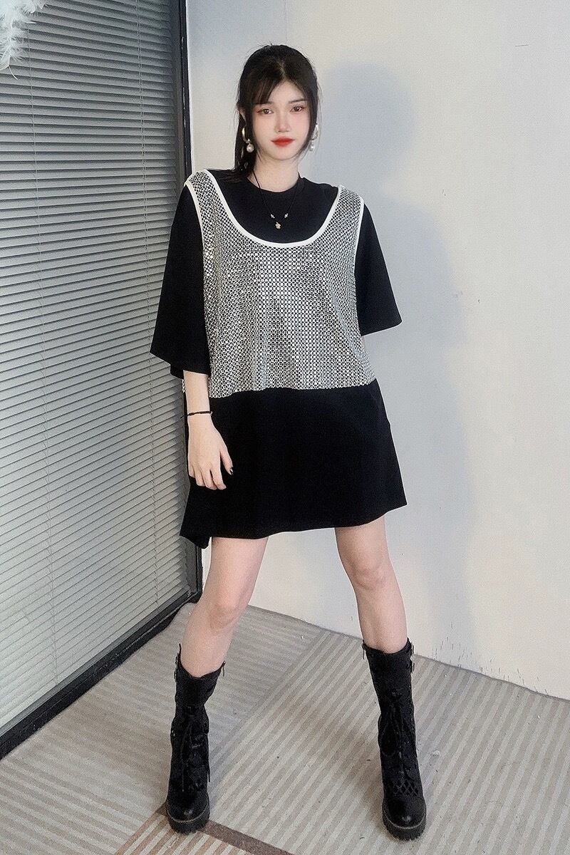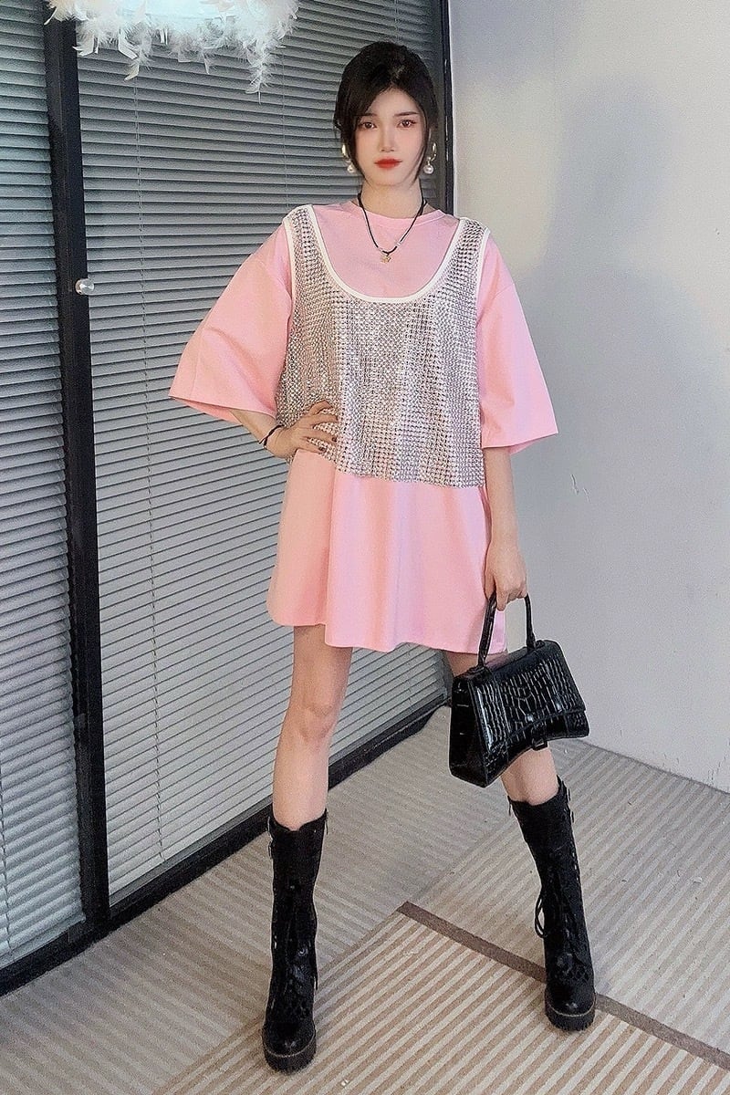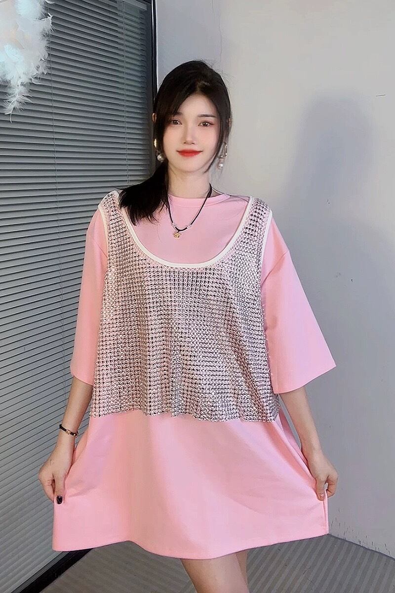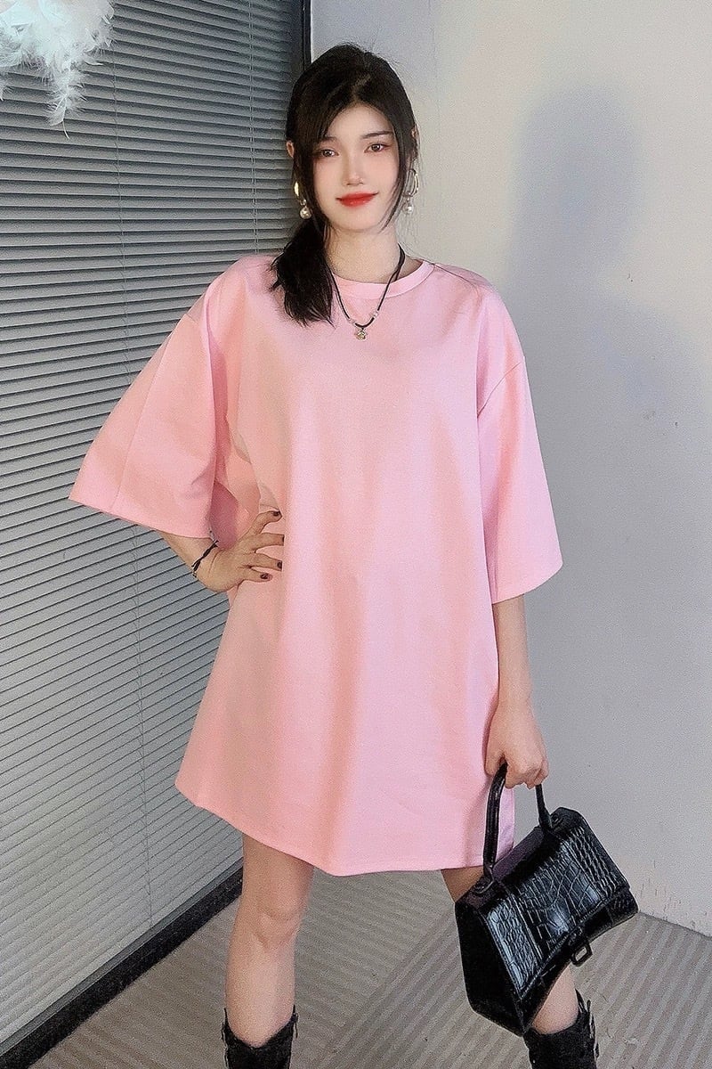 黒 ピンク カジュアル Tシャツ トップス ワンピース
