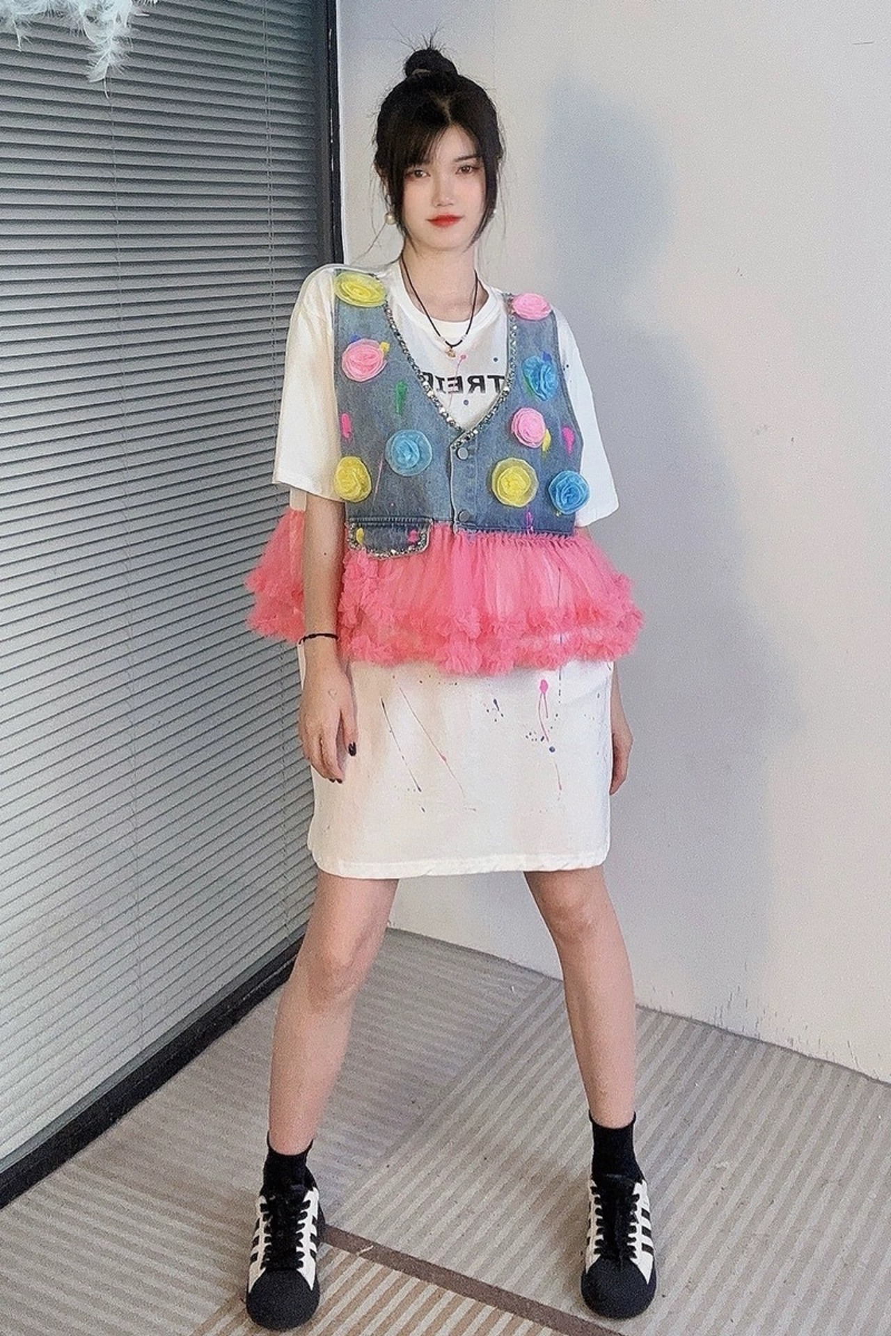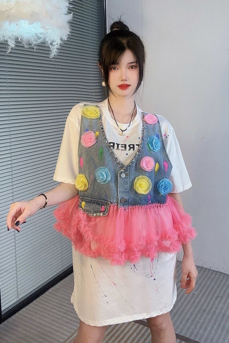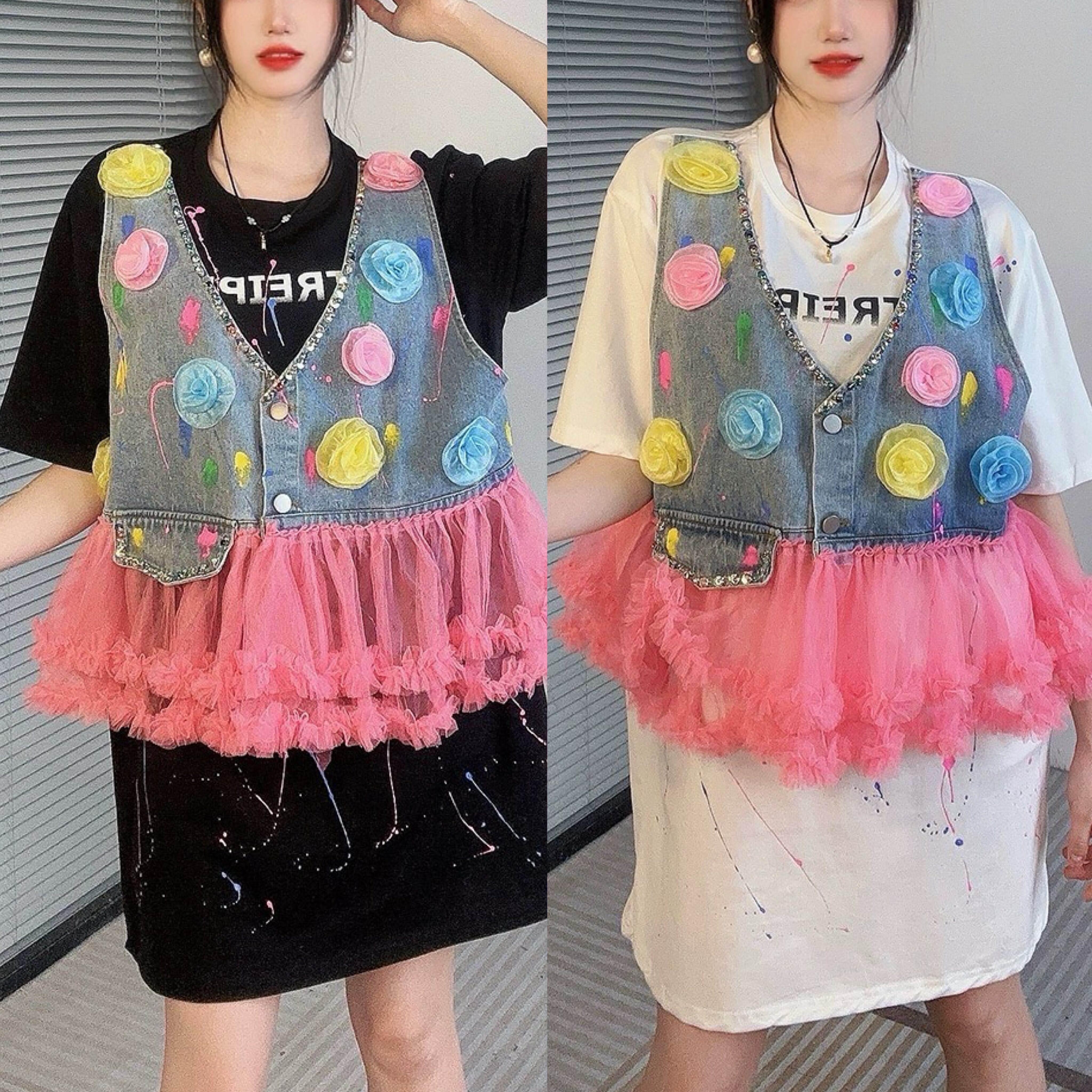 ベスト 黒 白 ワンピース デニム カジュアル ラインストーン