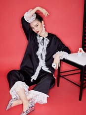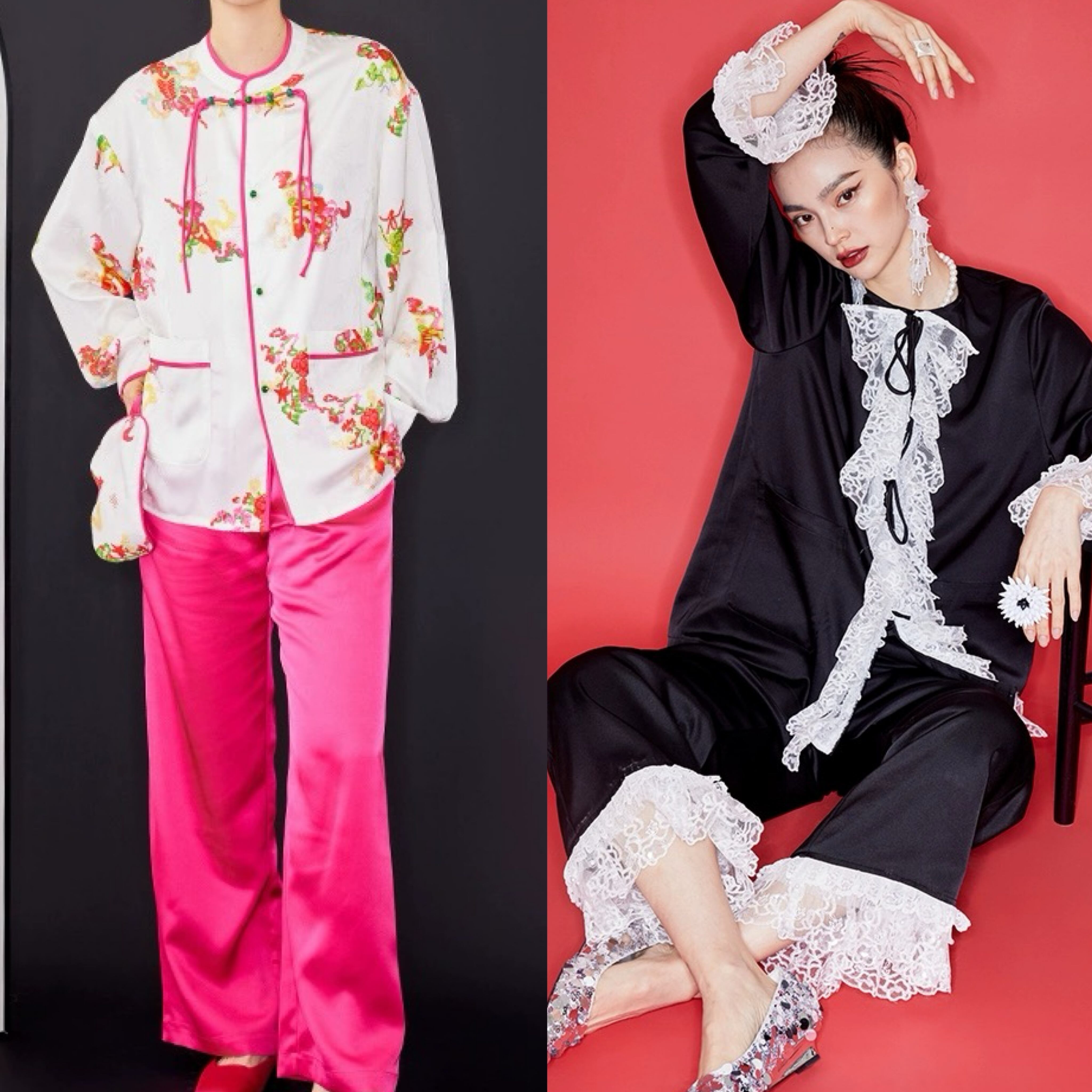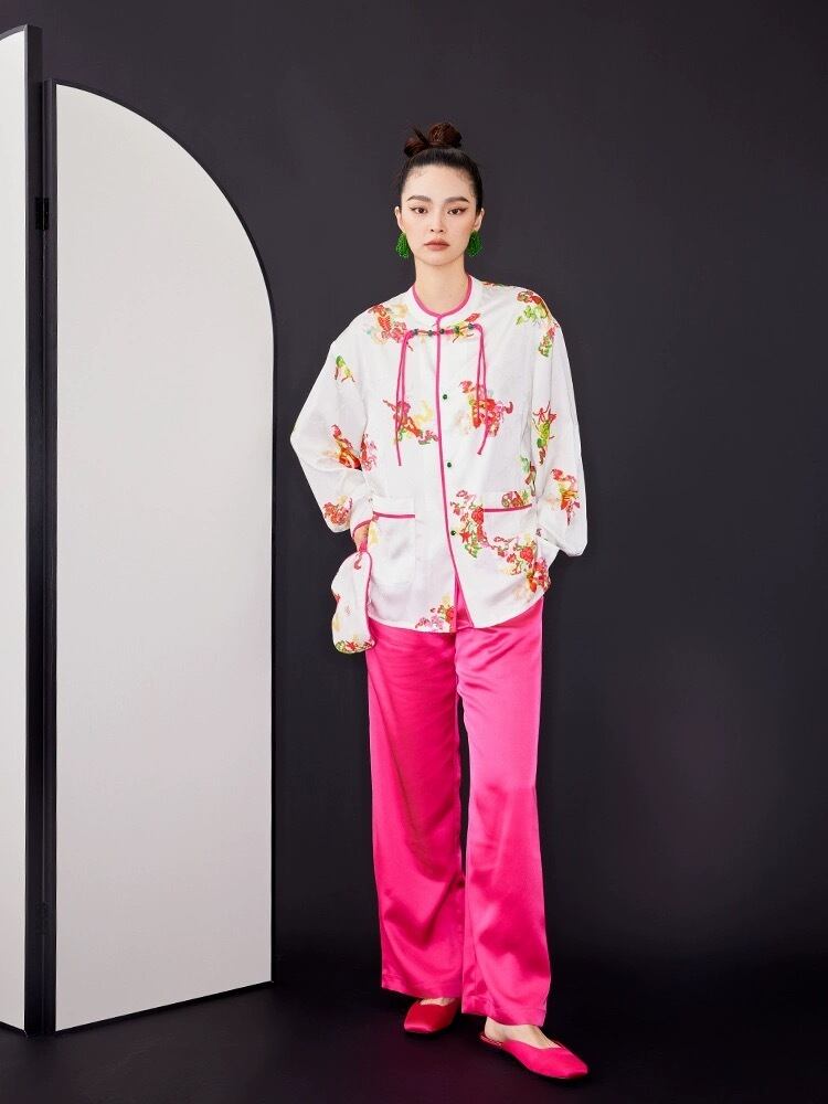 【おうち可愛い】【セットアップ】レース ブラウス チャイナ ピンク 花柄 フラワー パンツ スウェット ワンピース フリース マキシ ロング オーバーサイズ ビッグシルエット ピンク パーカー トレーナー スウェット ルームウェア パジャマ ストリート ガーリー かわいい 原宿 渋谷 カーディガン アウター コート