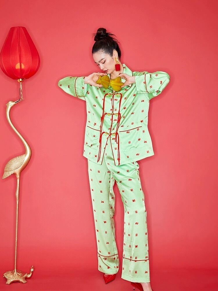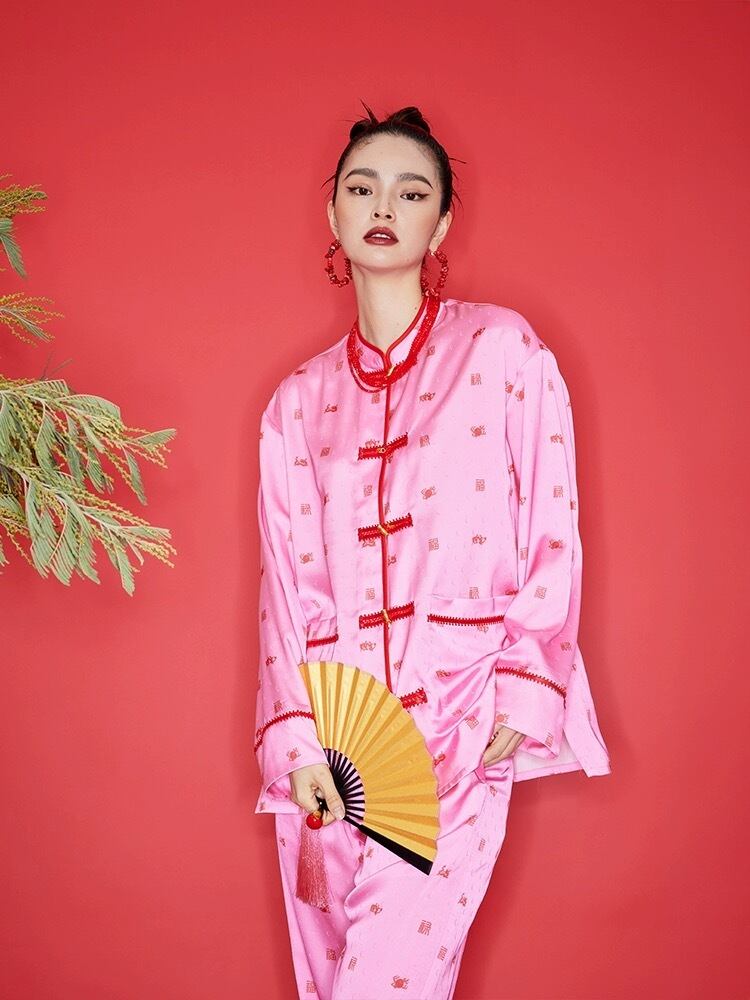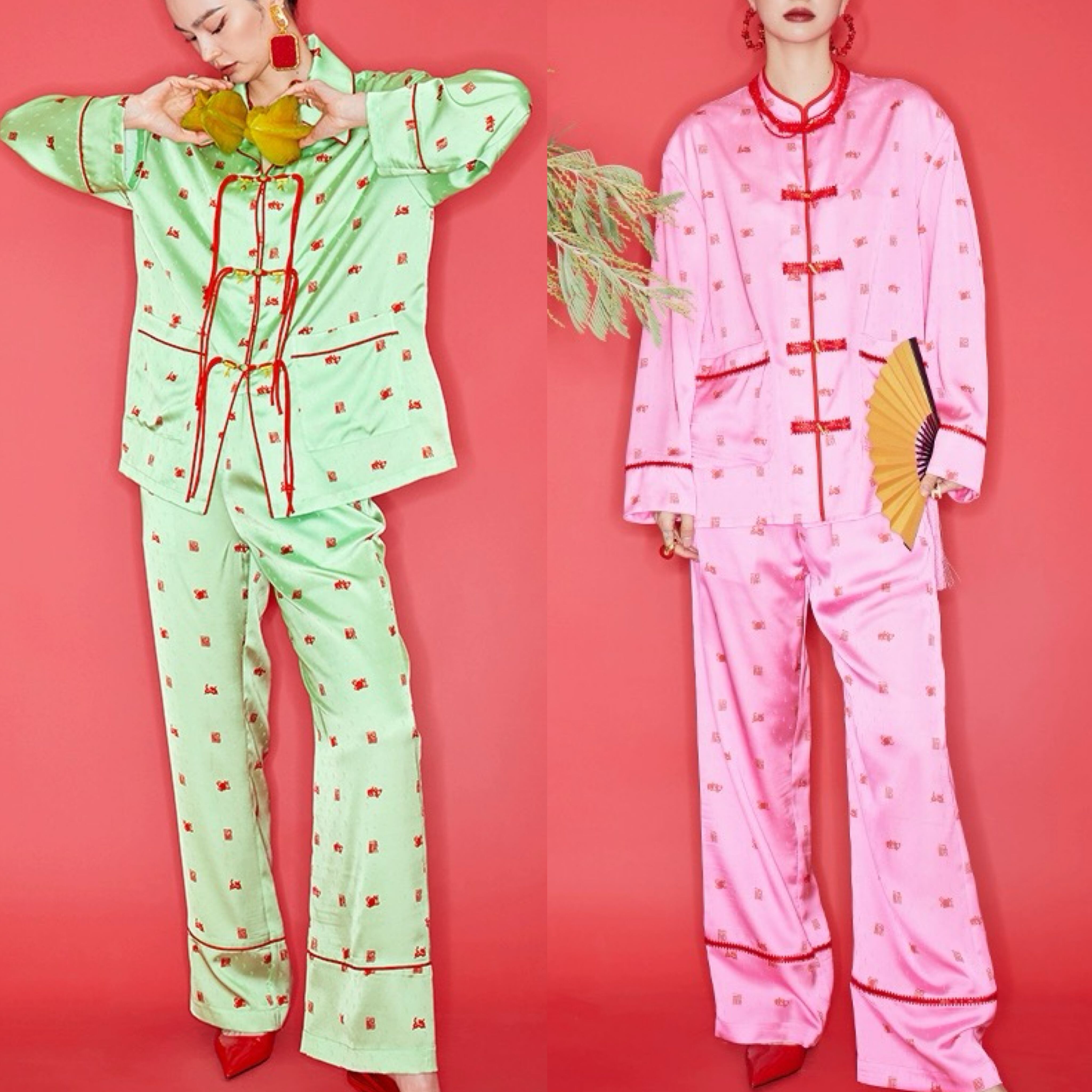 【おうち可愛い】【セットアップ】レース ブラウス チャイナ ピンク 花柄 フラワー パンツ スウェット ワンピース フリース マキシ ロング オーバーサイズ ビッグシルエット ピンク パーカー トレーナー スウェット ルームウェア パジャマ ストリート ガーリー かわいい 原宿 渋谷 カーディガン アウター コート 緑 赤