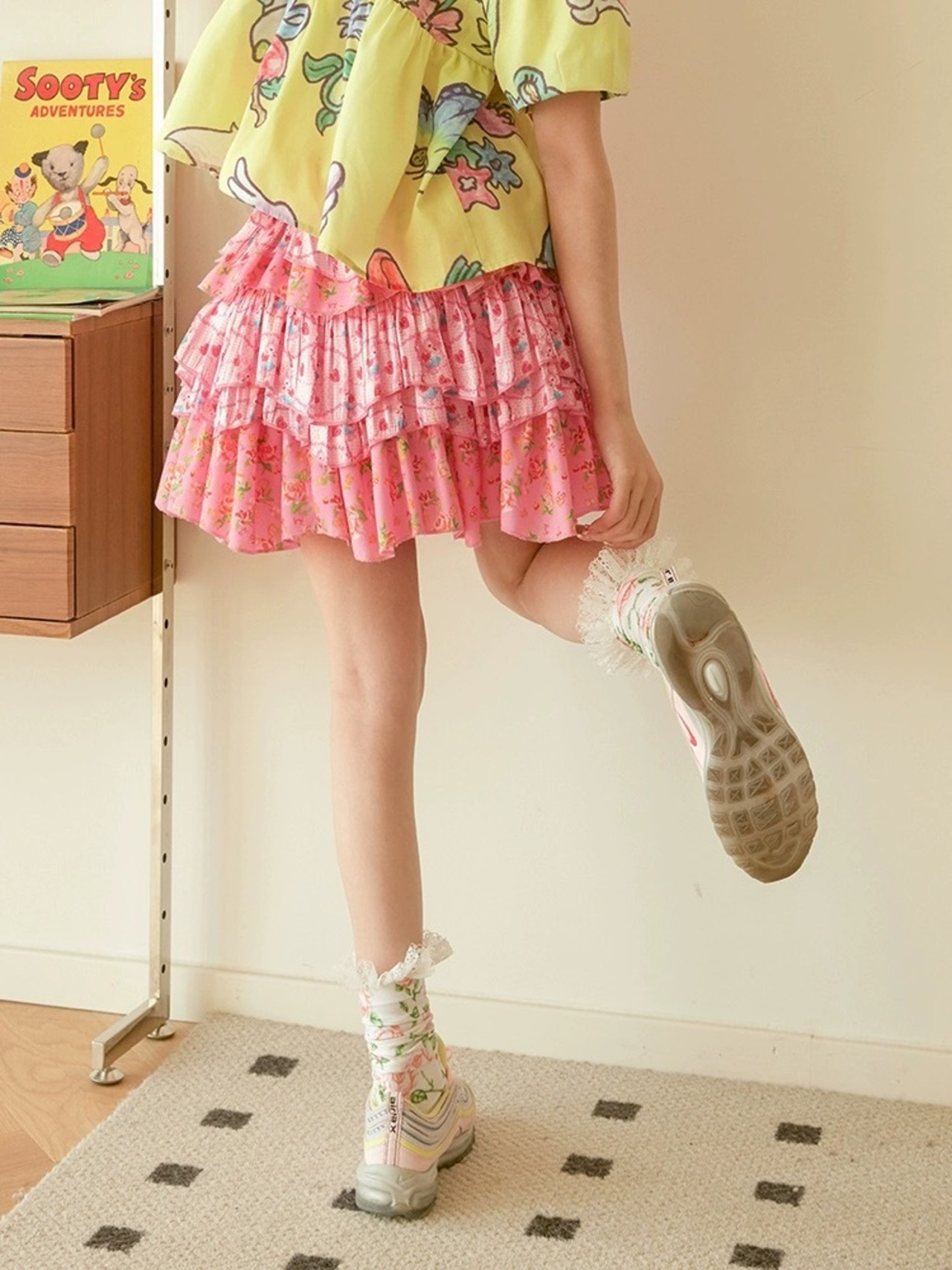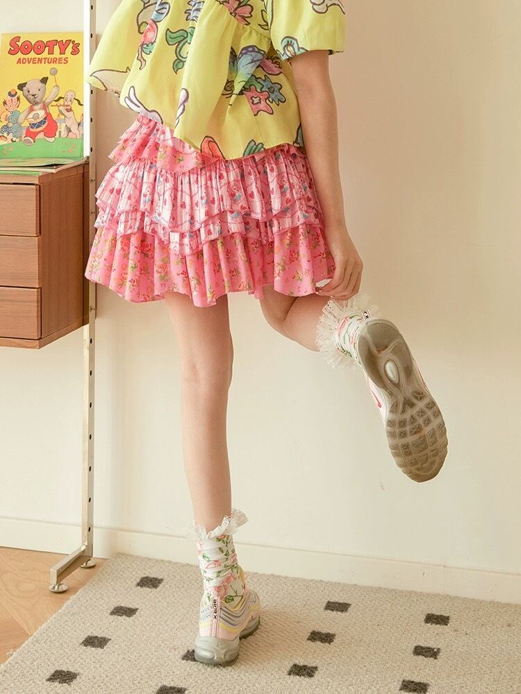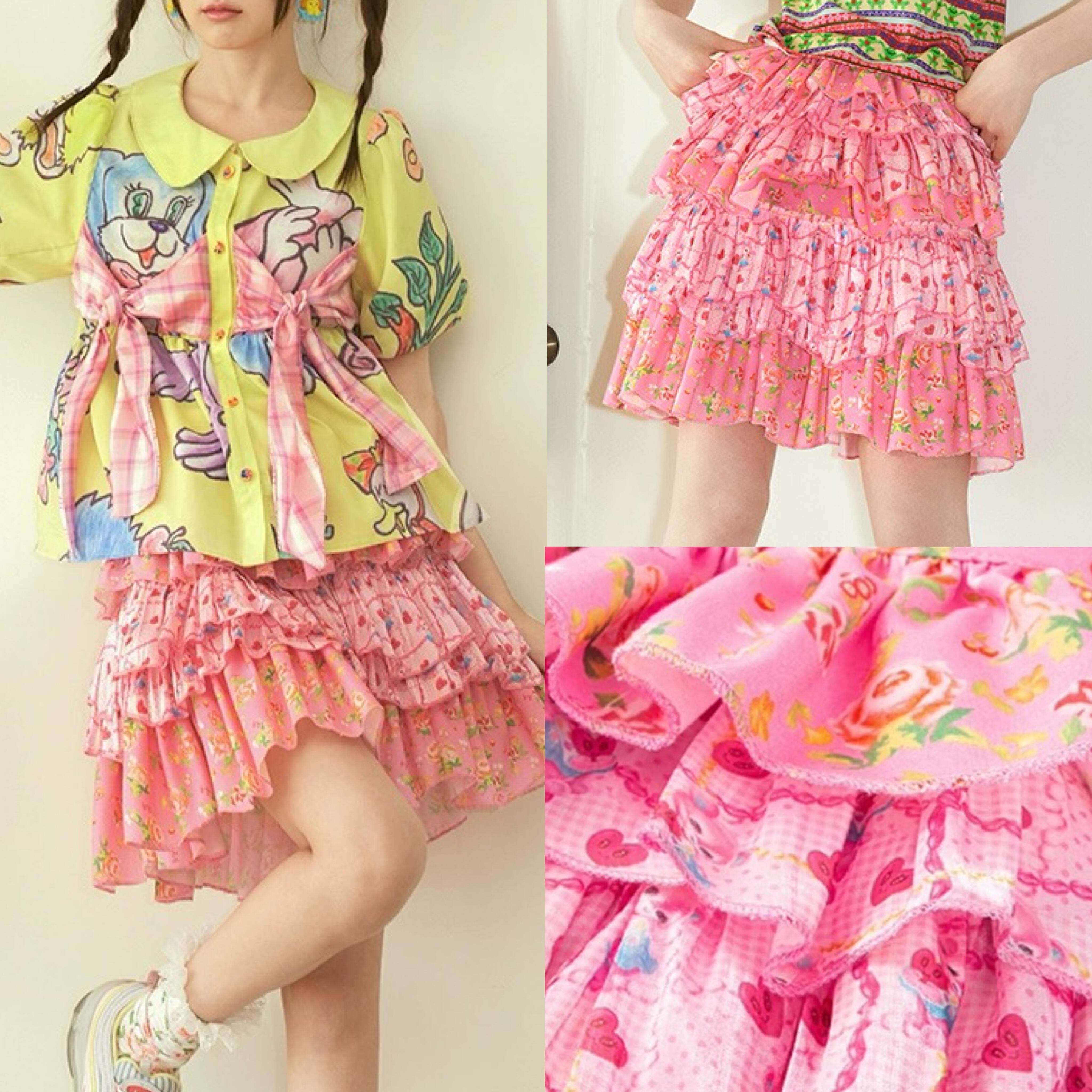スカート チェック ピンク 可愛い ガーリー 姫 ボトムス ハート はらじ