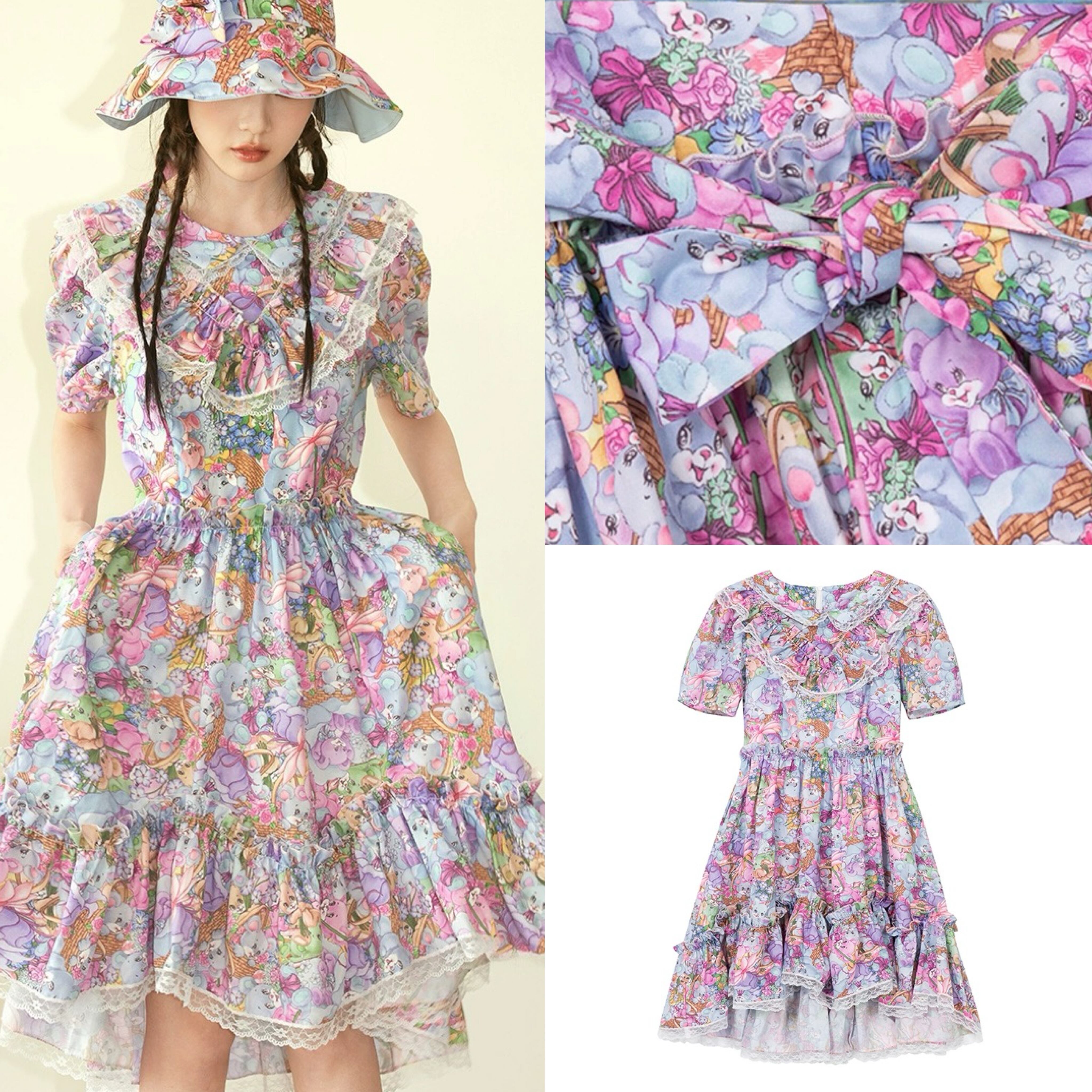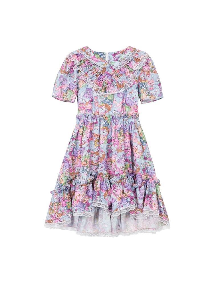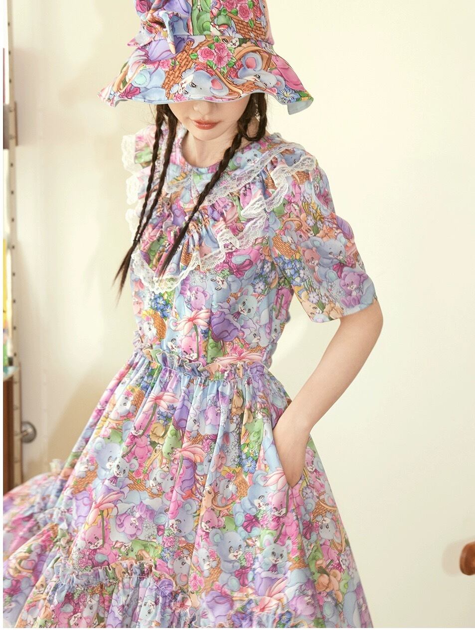 紫 くまさん ガーリー ブラウス ワンピース 丸襟 水色 可愛い