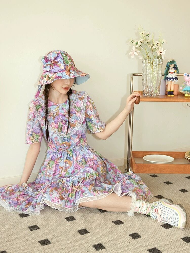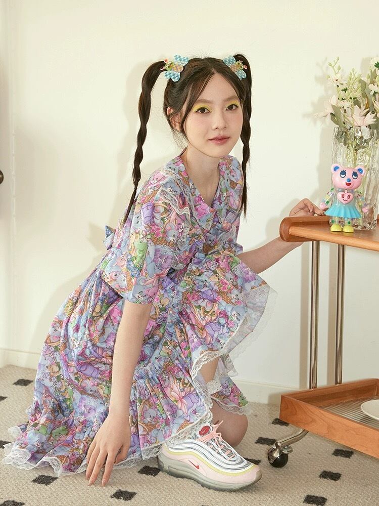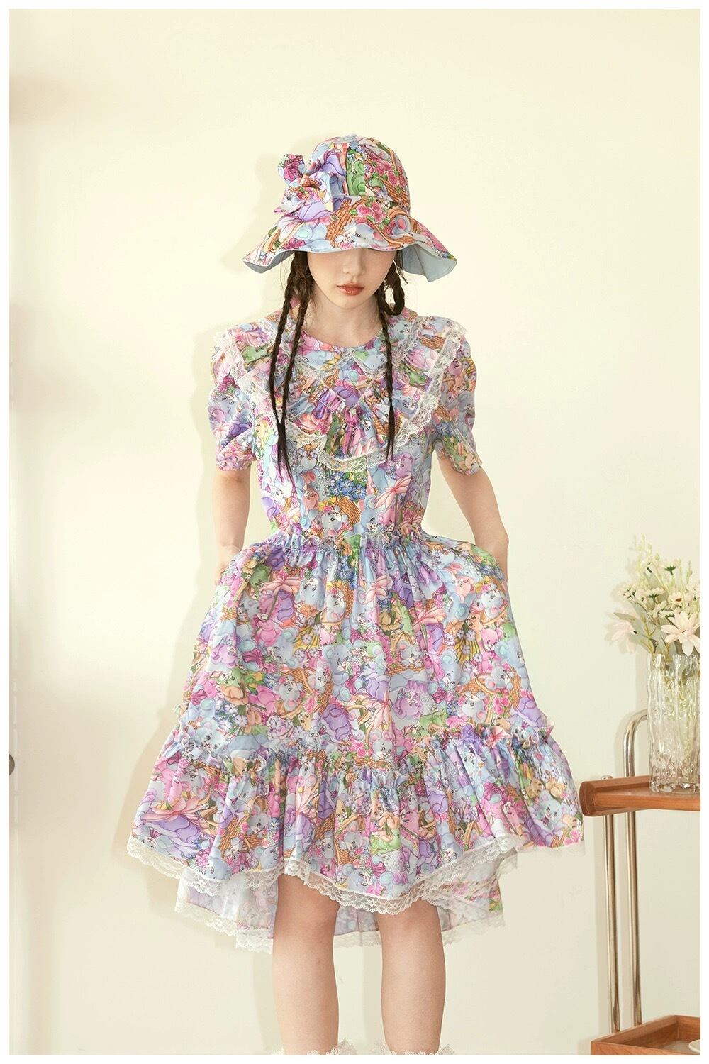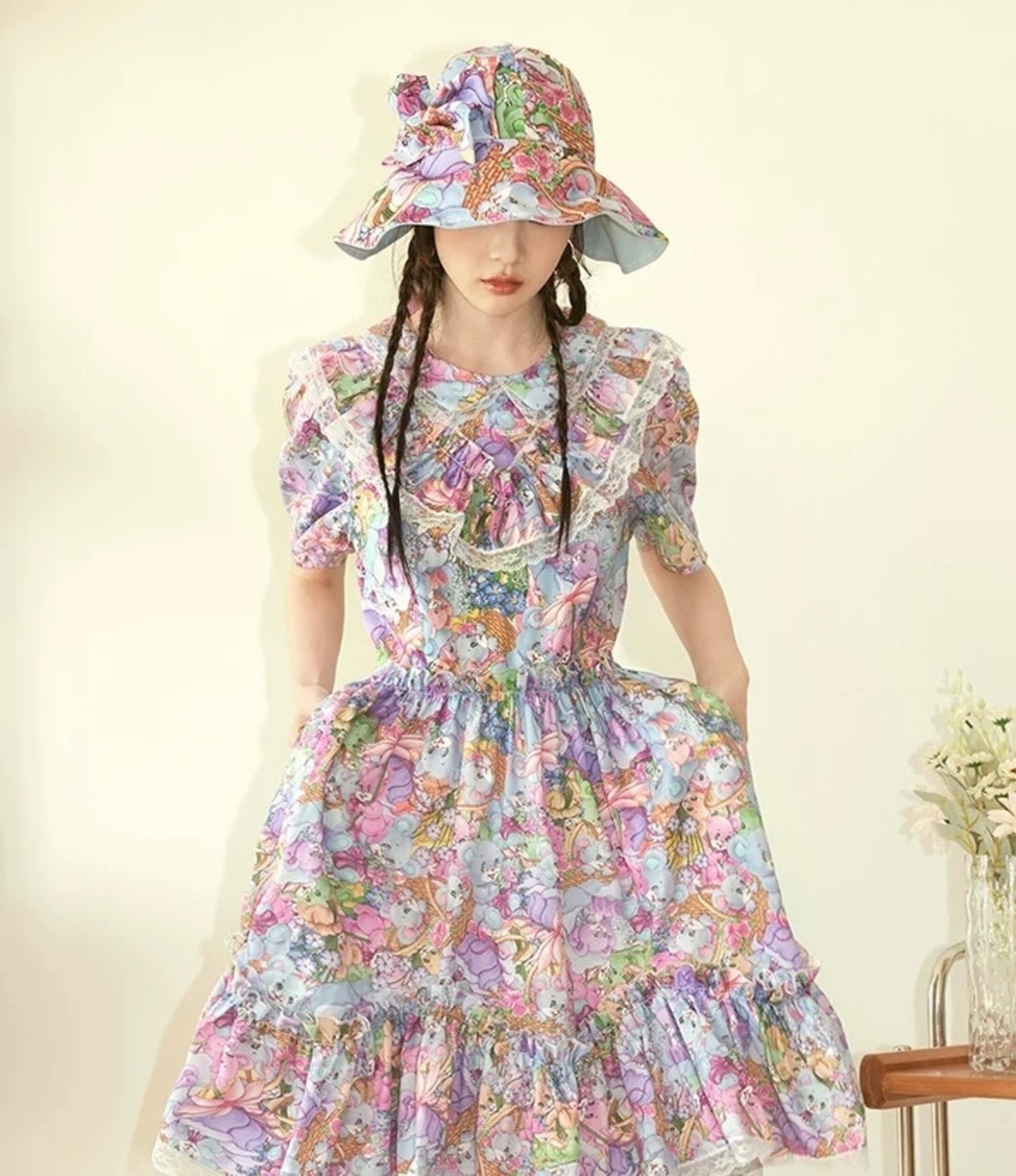 紫 くまさん ガーリー ブラウス ワンピース 丸襟 水色 可愛い
