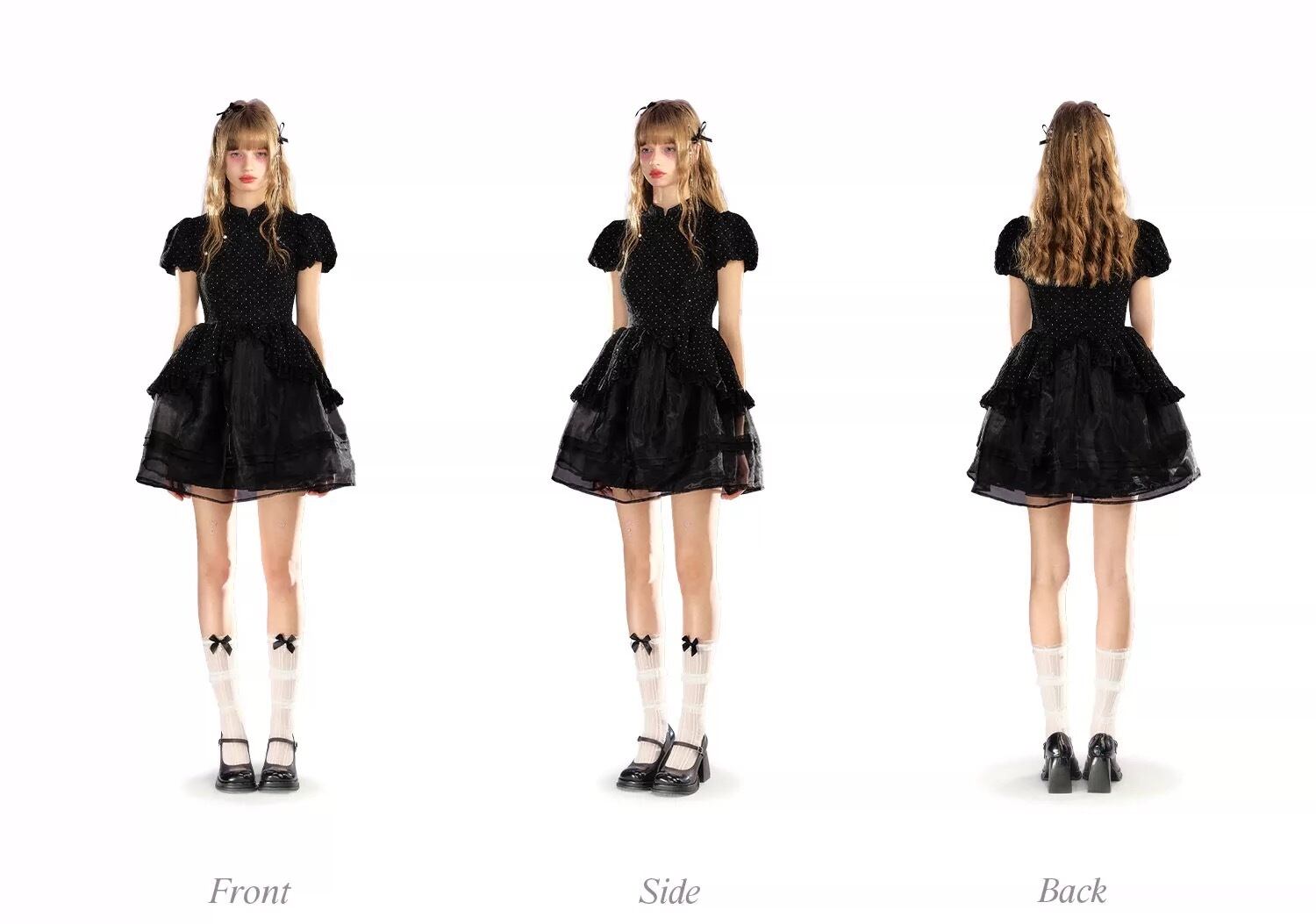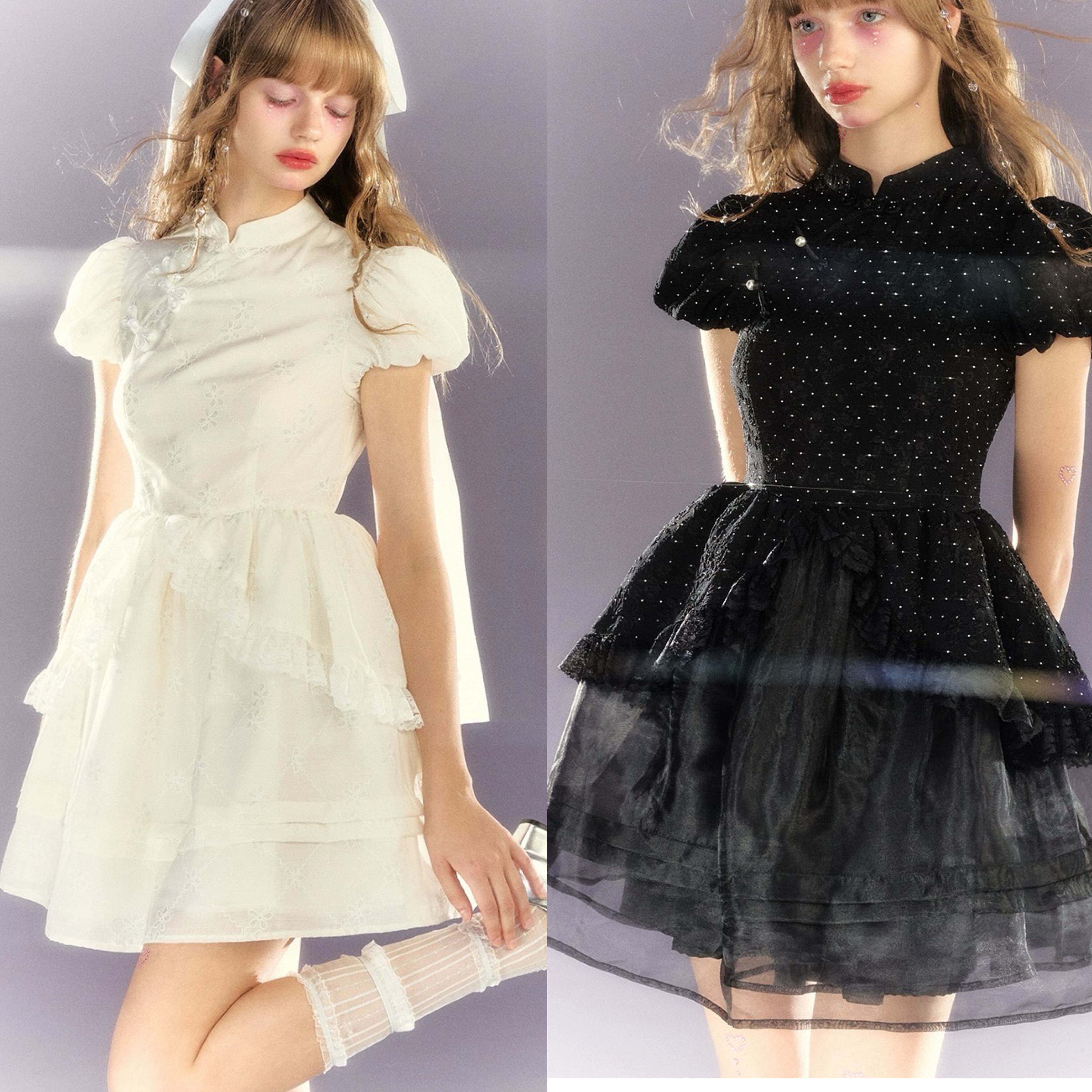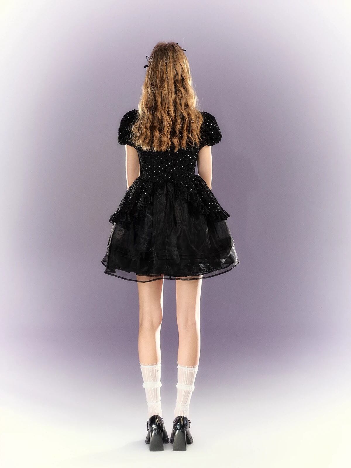 ガーリー 白 黒 お嬢様 ワンピース 水玉 ブラウス 可愛い 姫