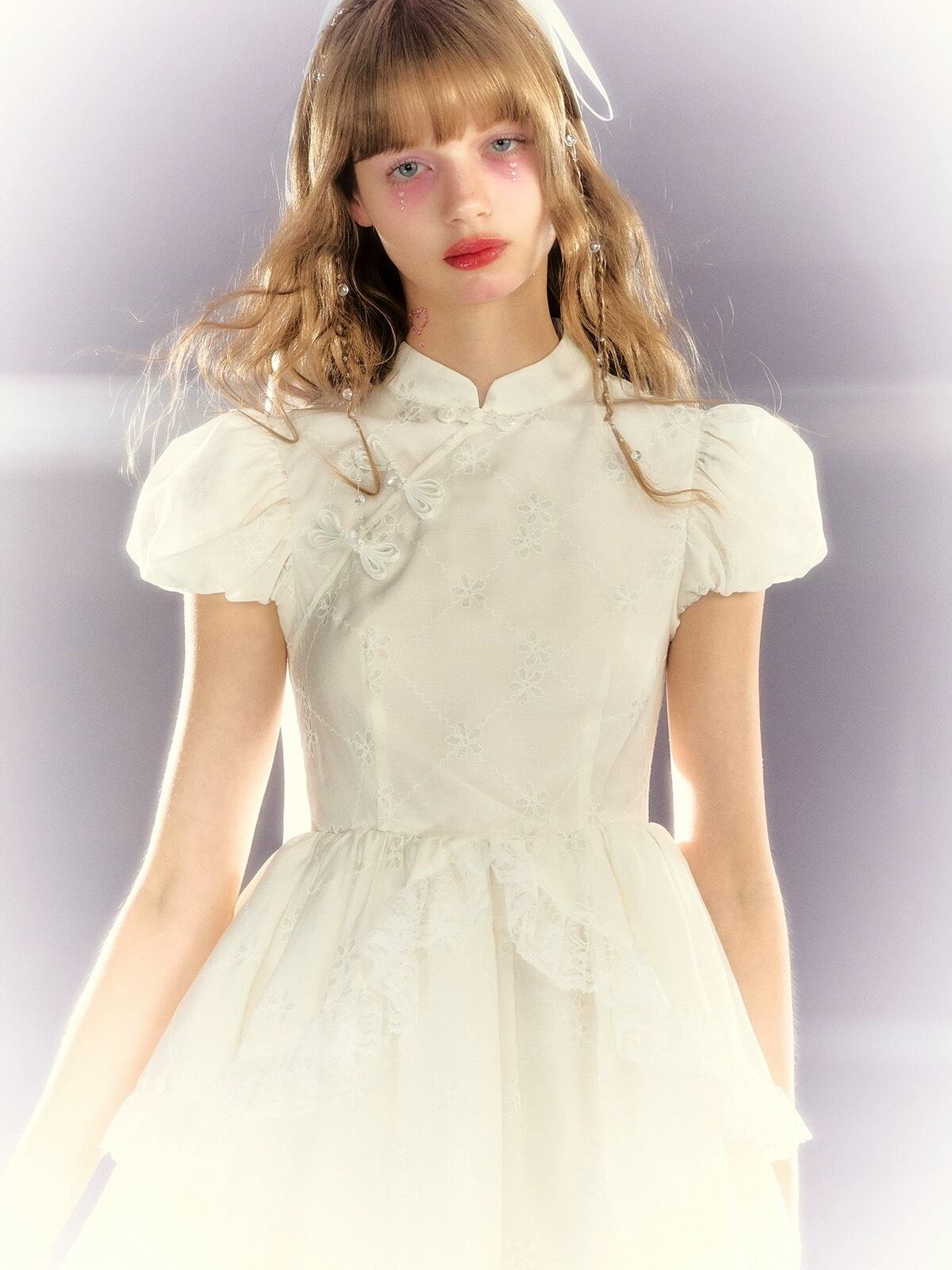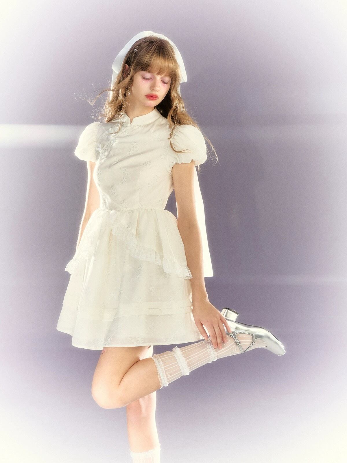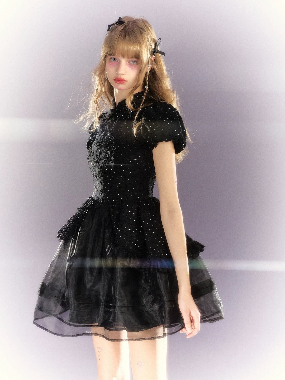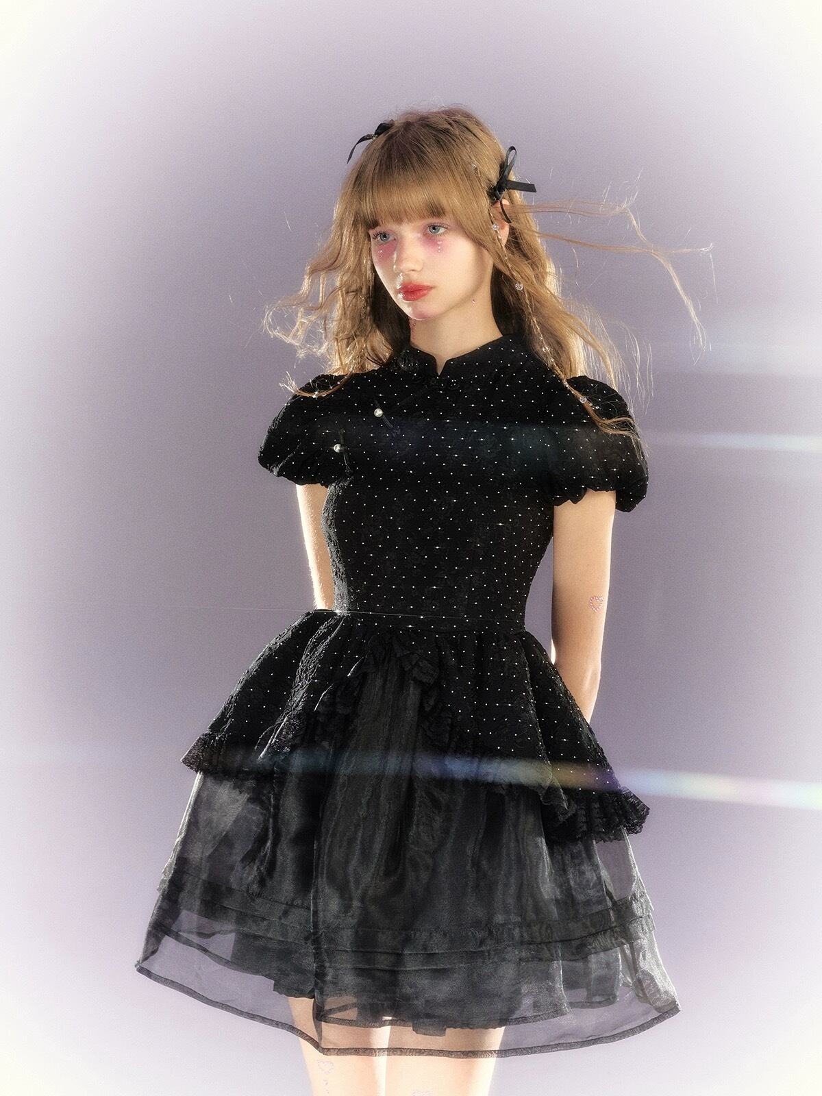 ガーリー 白 黒 お嬢様 ワンピース 水玉 ブラウス 可愛い 姫