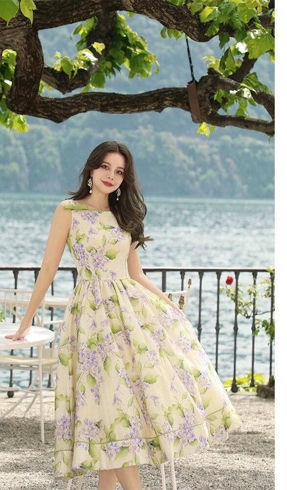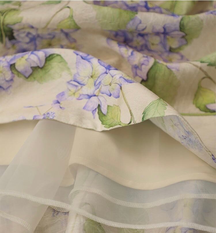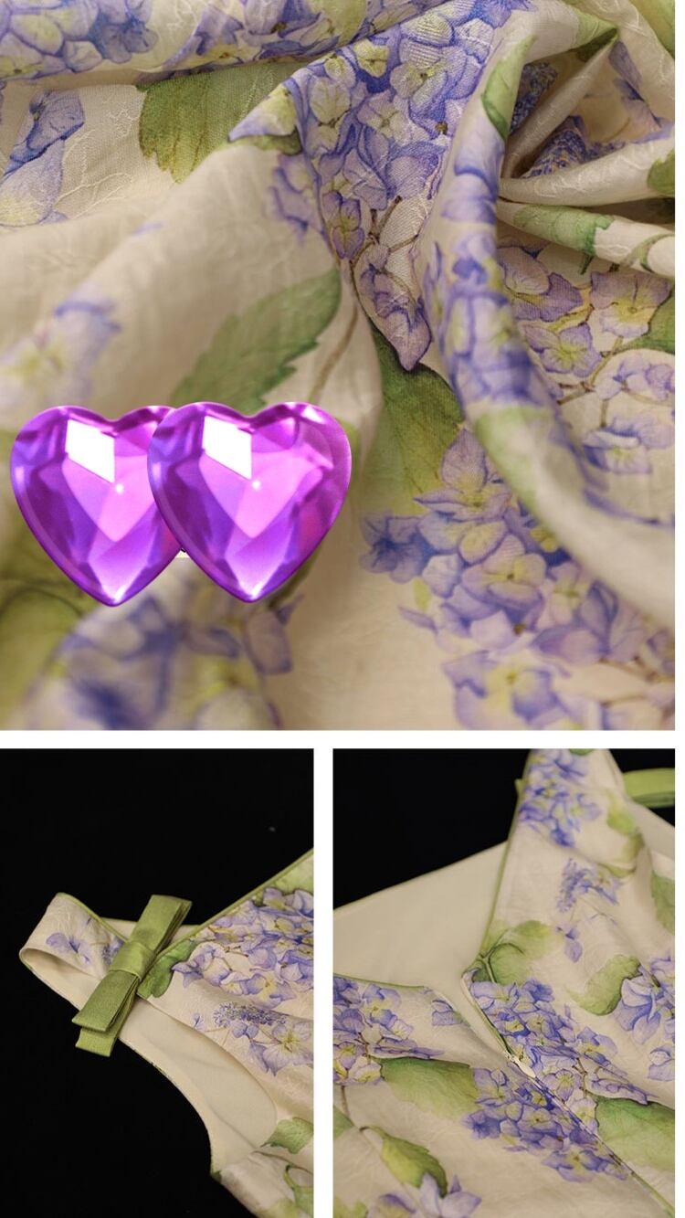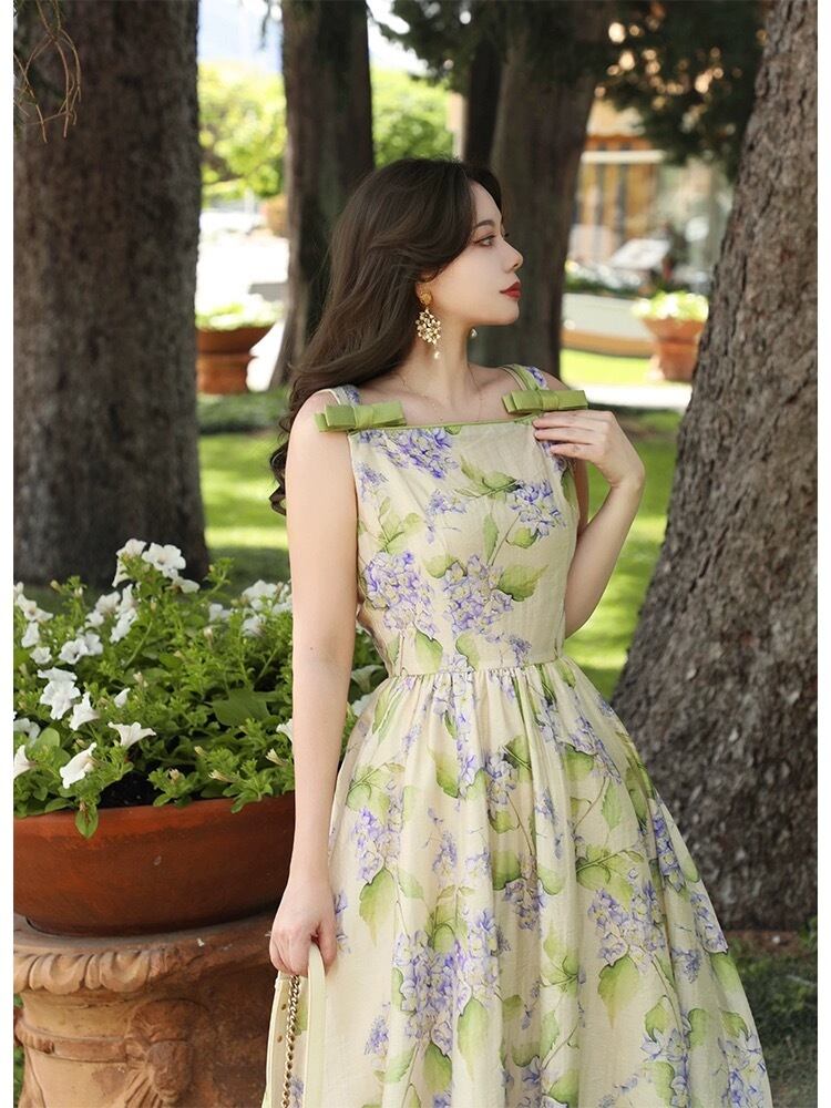 緑 リボン エレガント 紫陽花 花柄 フラワー 水色 ワンピース