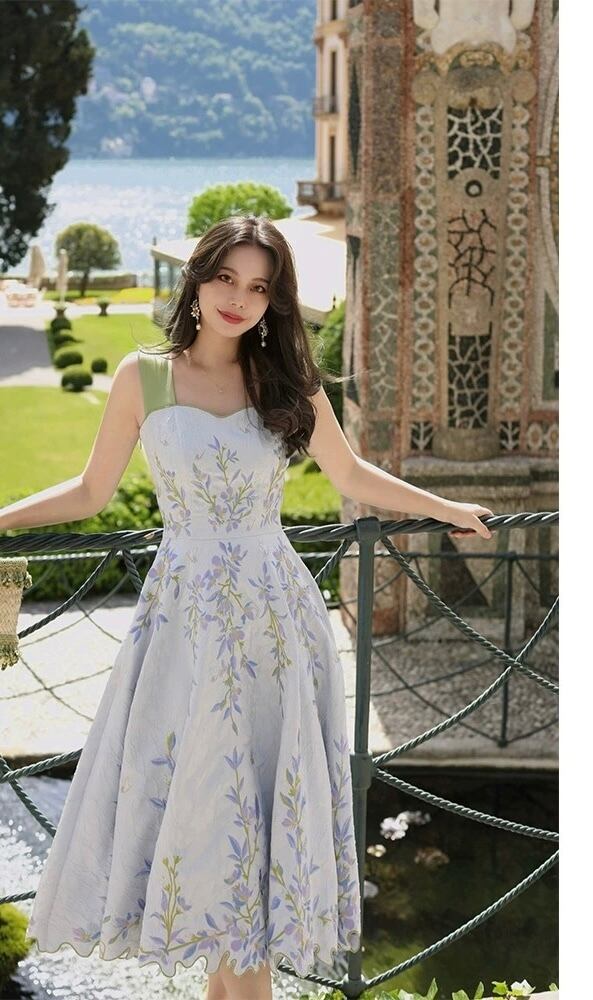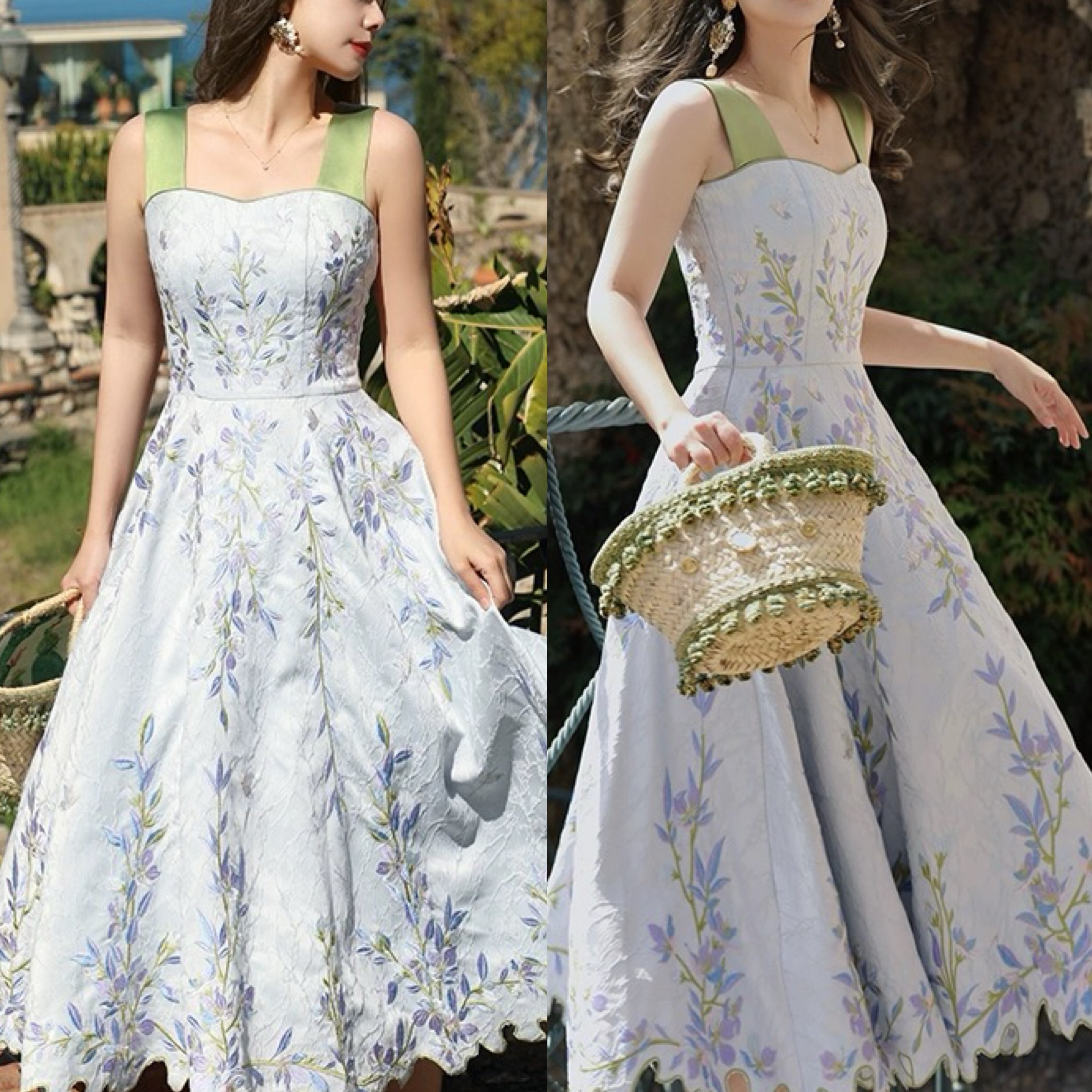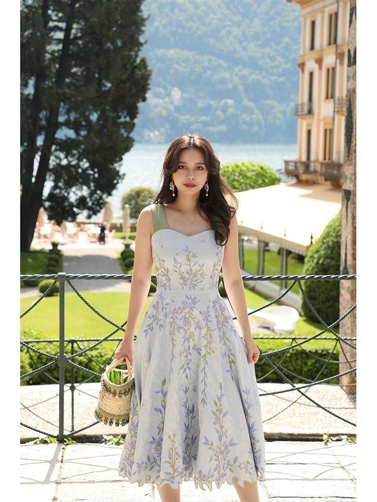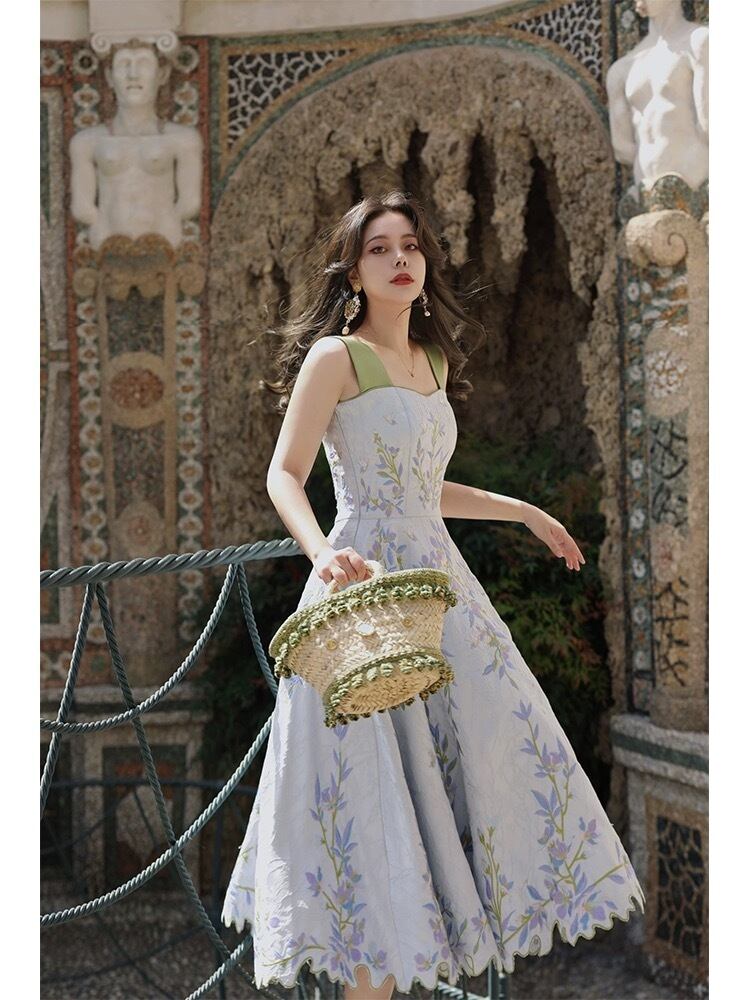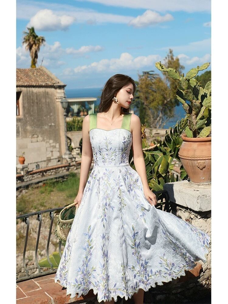 水色 緑 花柄 フラワー エレガント ワンピース ドレス