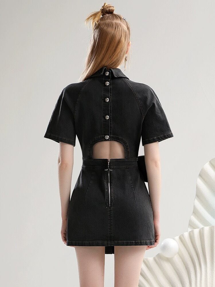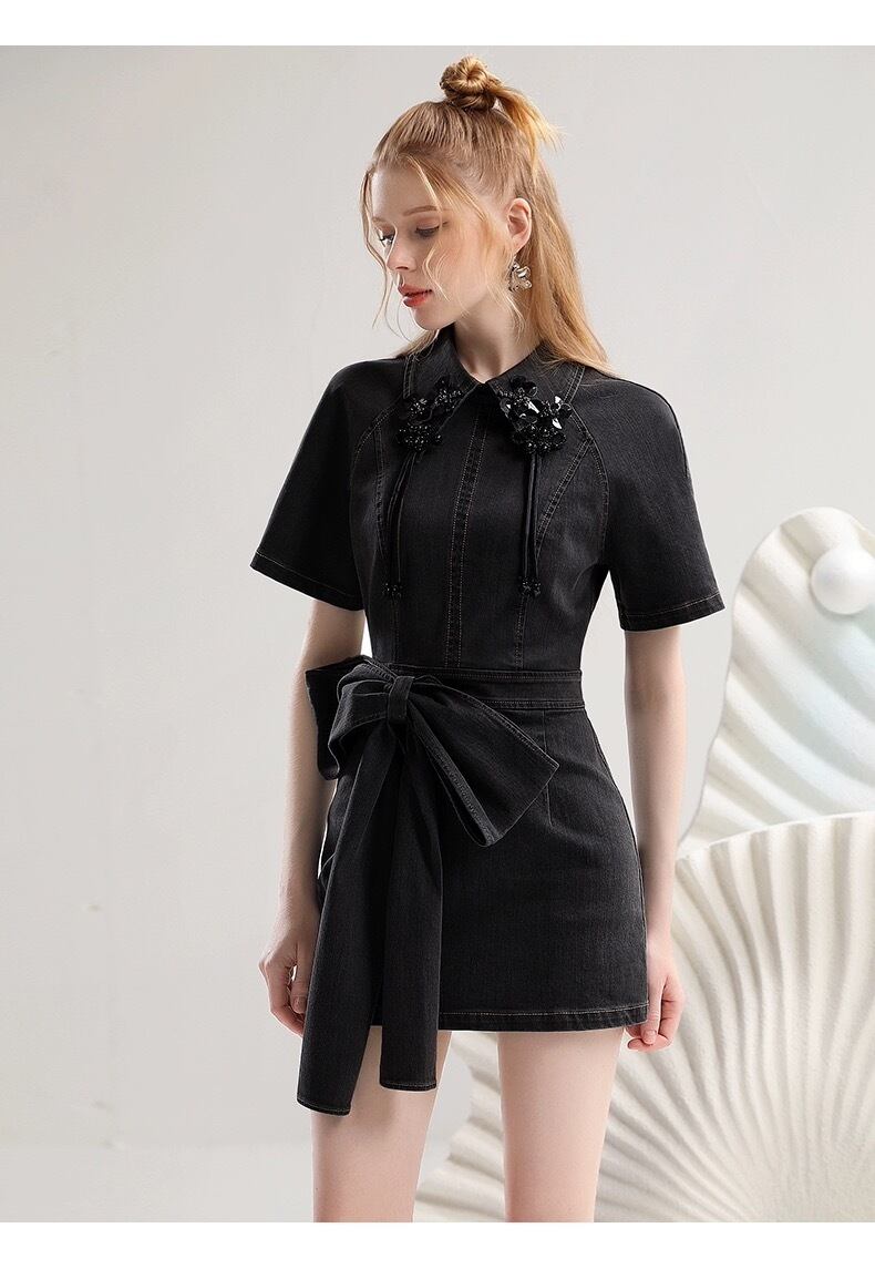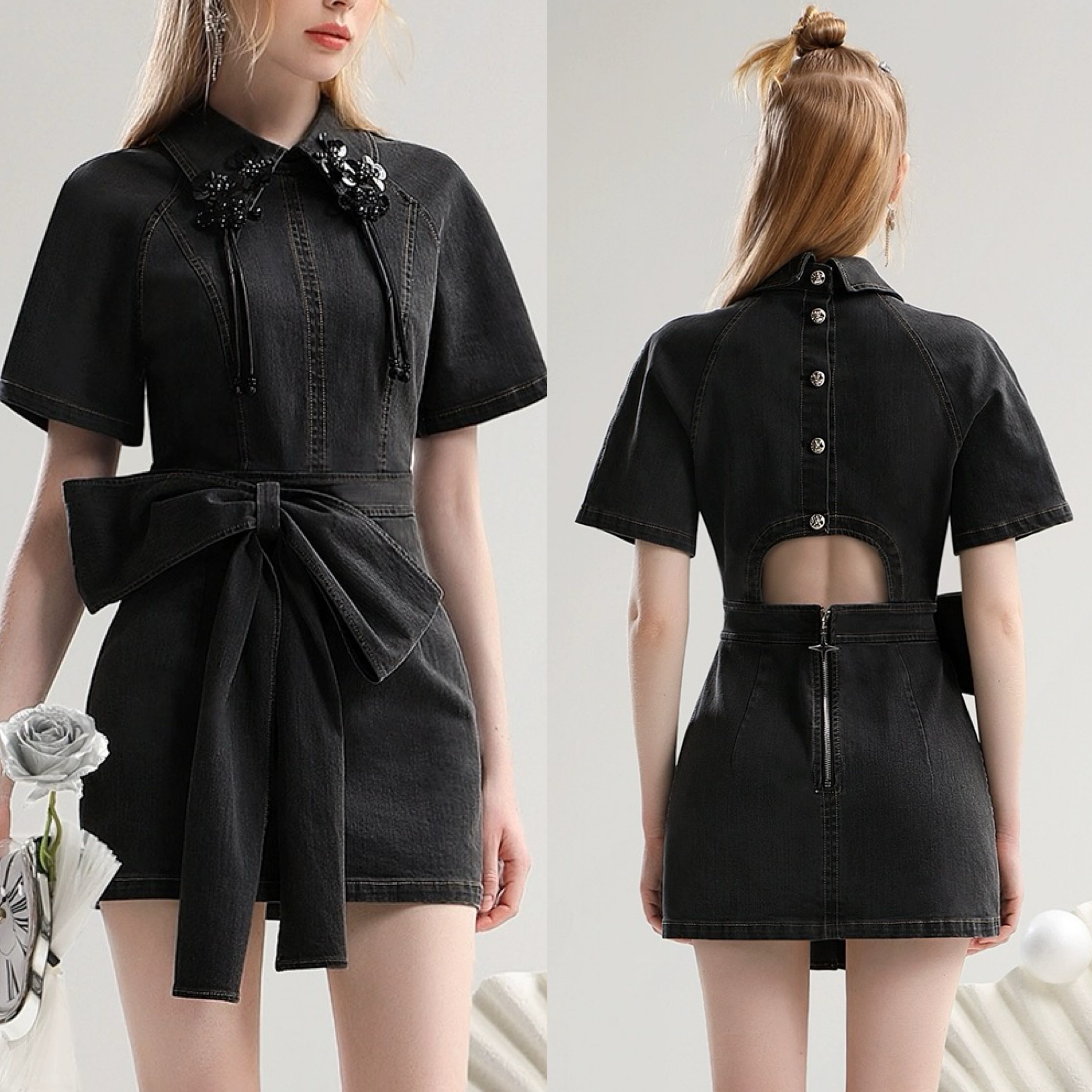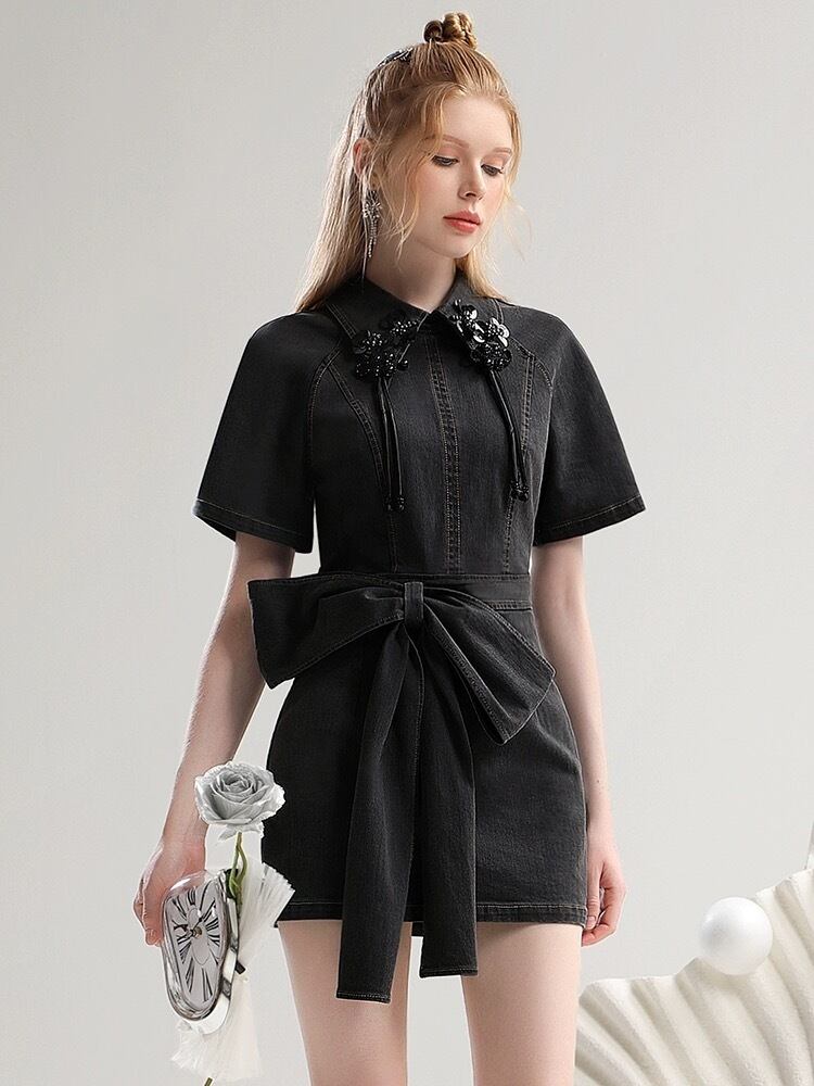 黒 ブラック リボン ワンピース タイト ジャケット デニム