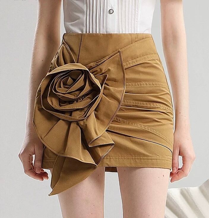 スカート 茶色 キャラメル カメリア 薔薇 花柄 ミニスカート ボトムス