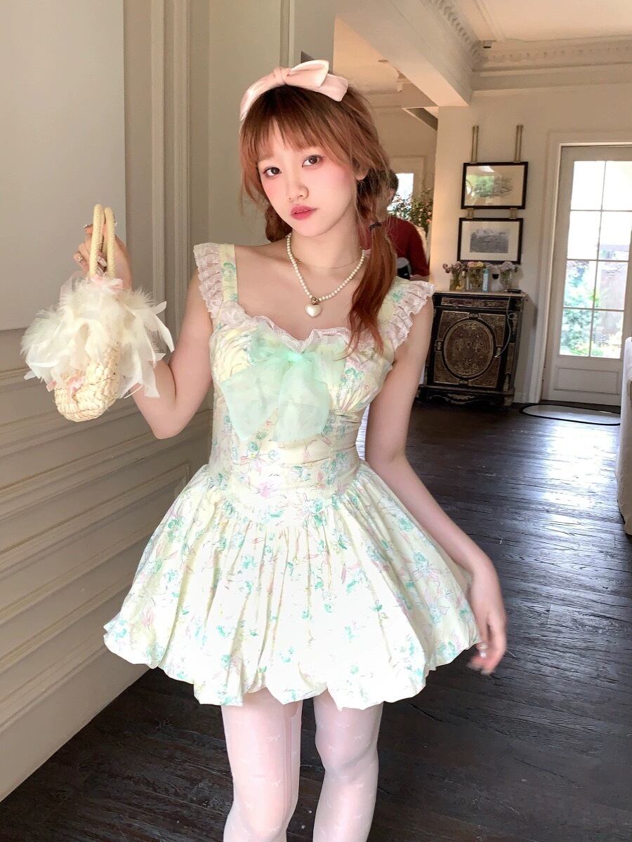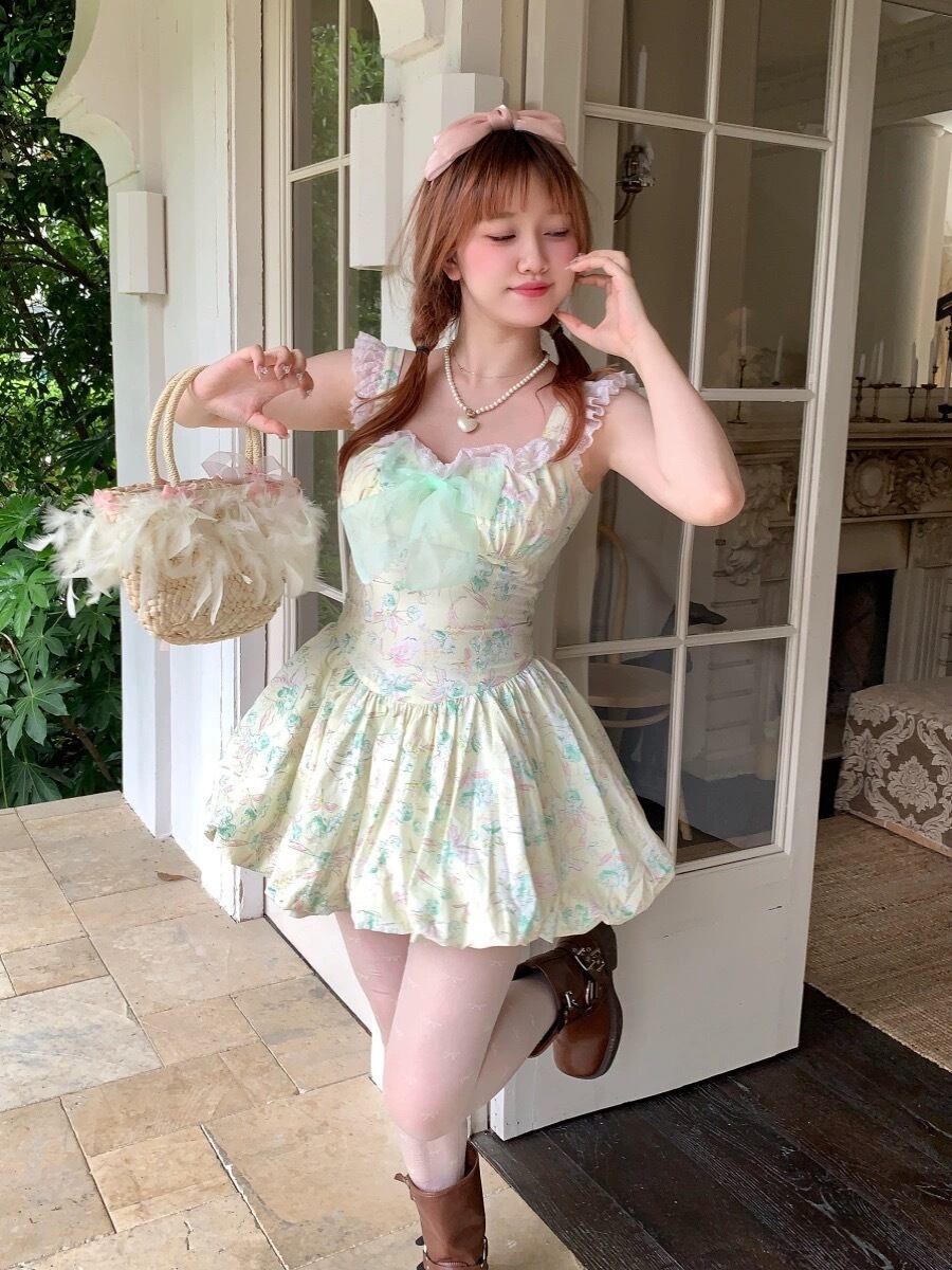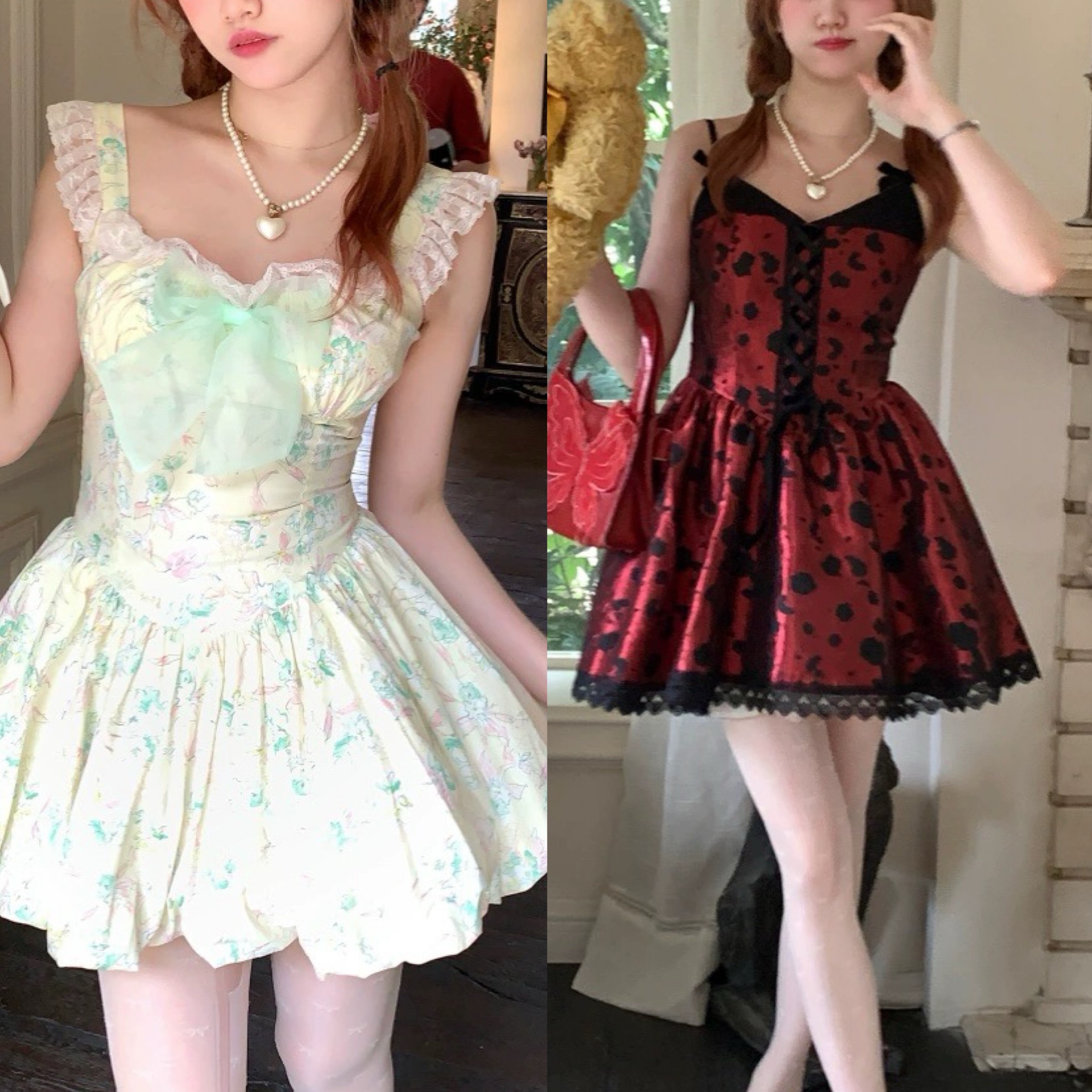 赤 リボン 緑 ガーリー ワンピース 可愛い キャミソール