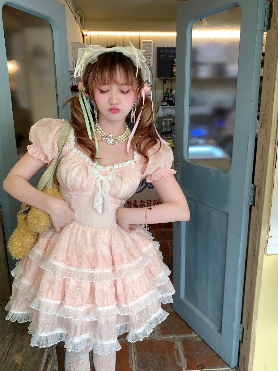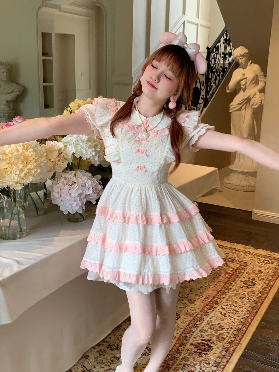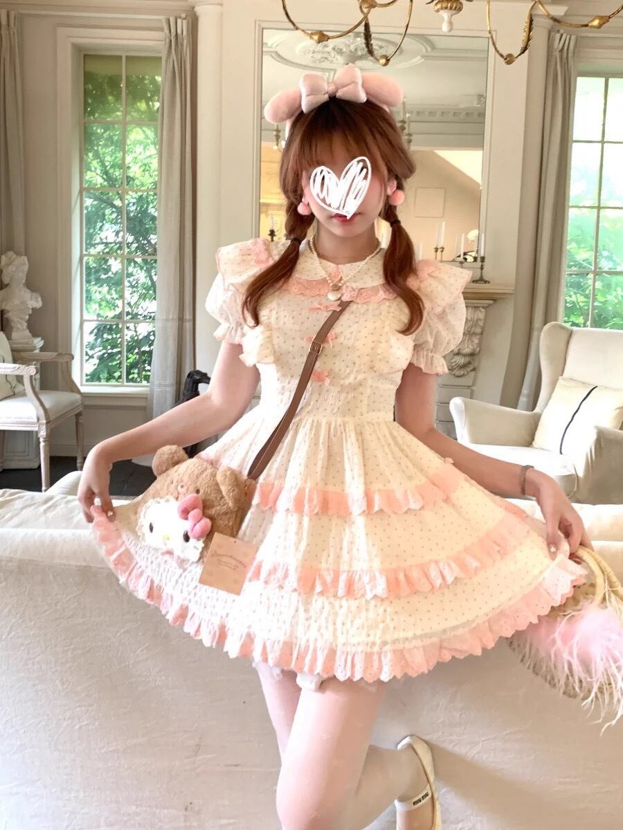 白 ガーリー 丸襟 ブラウス ワンピース ガーリー オレンジ