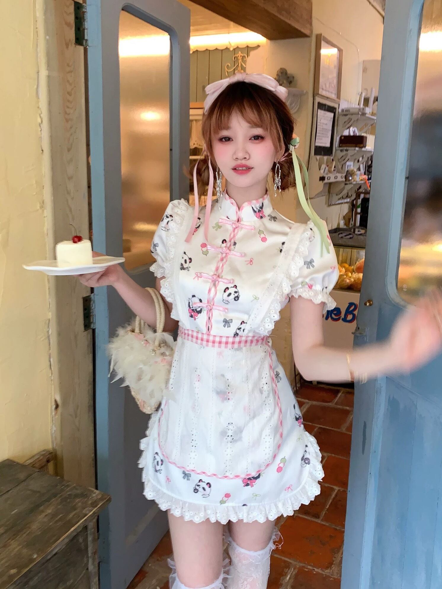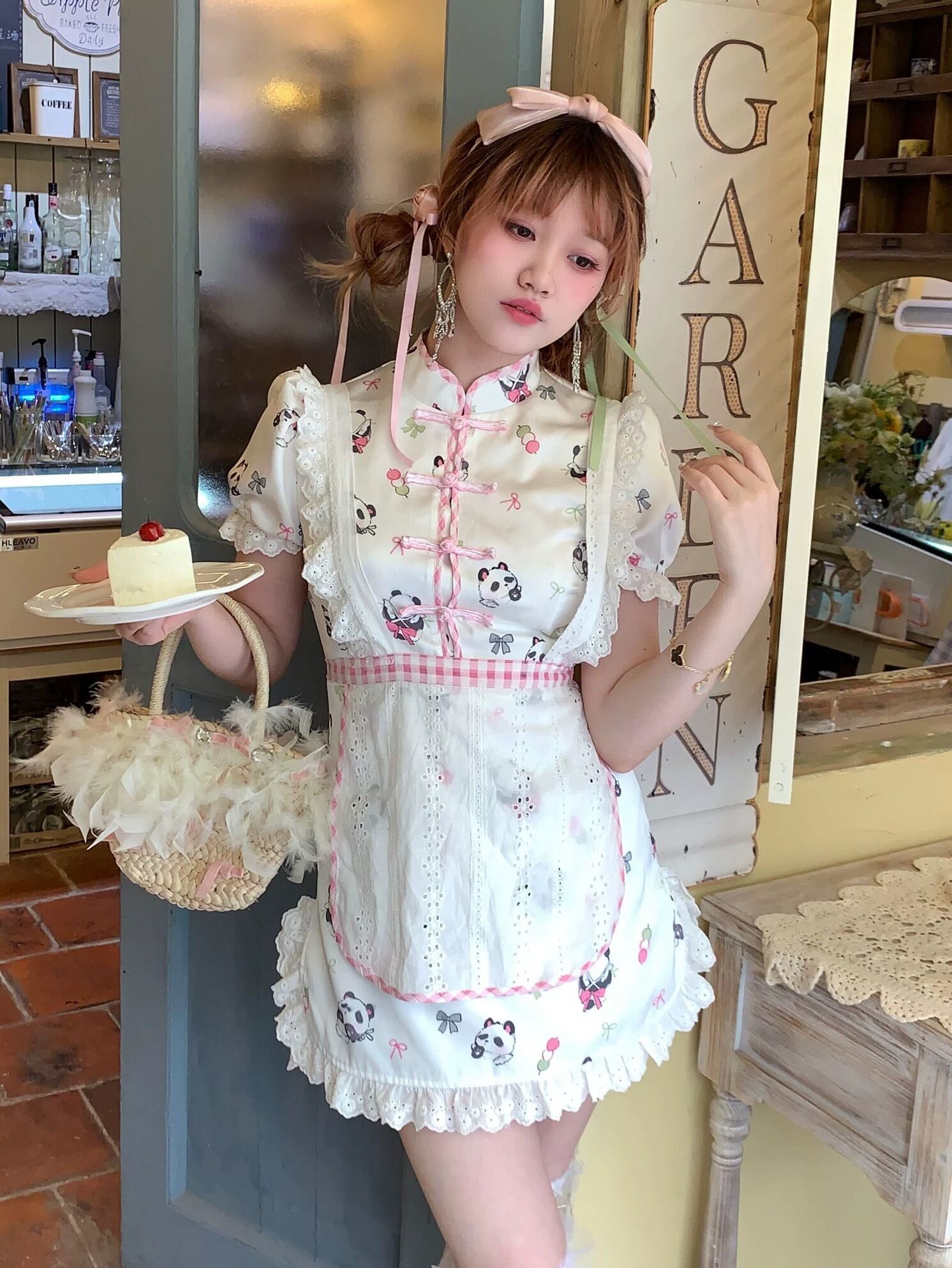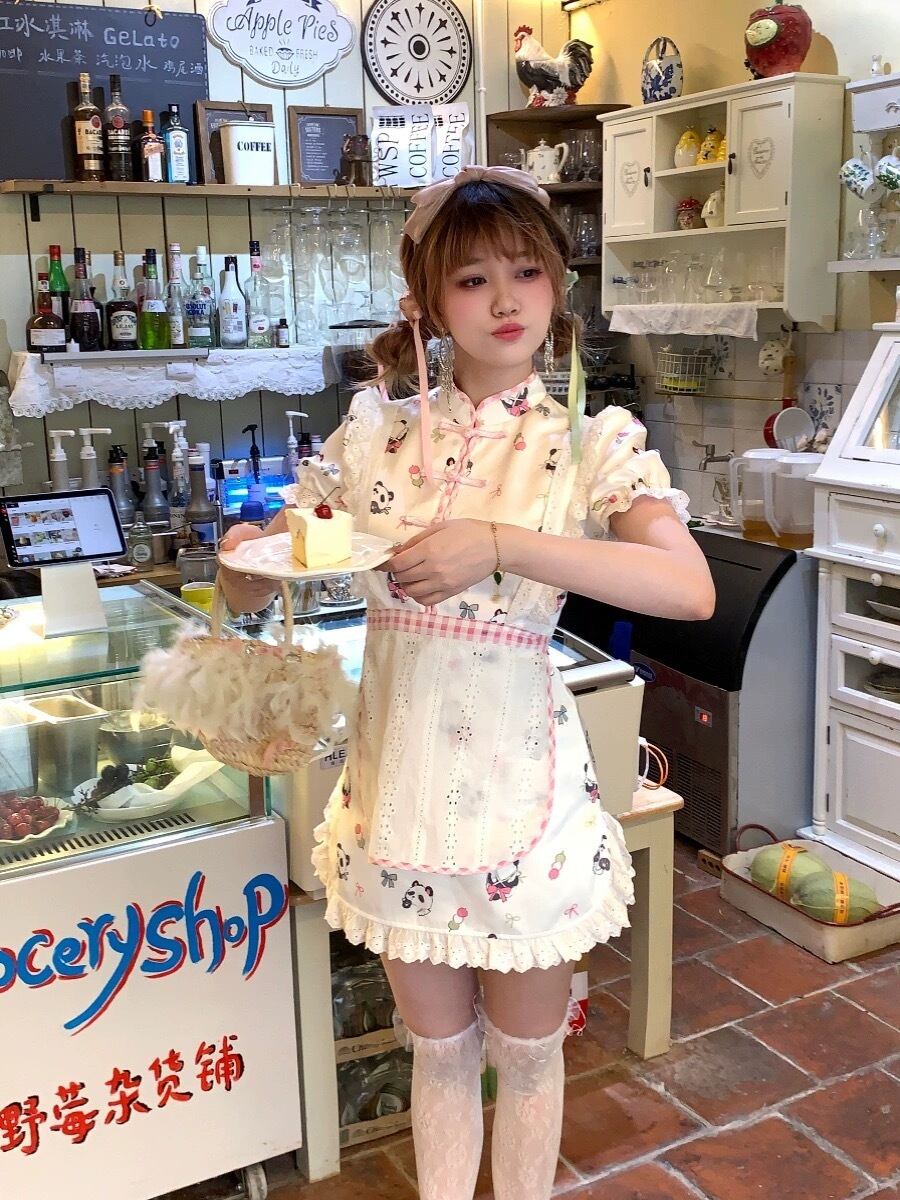 パンダ チャイナ ピンク ワンピース ガーリー エプロン 可愛い