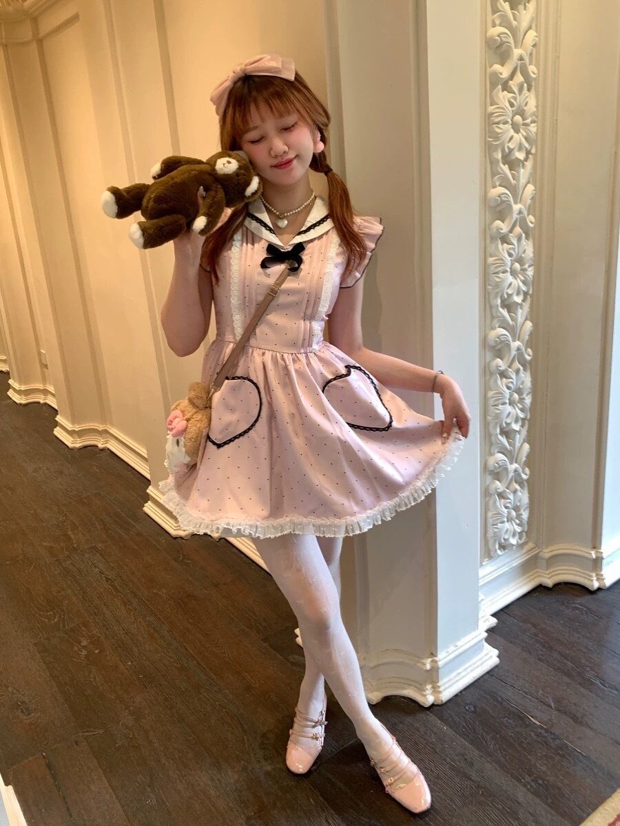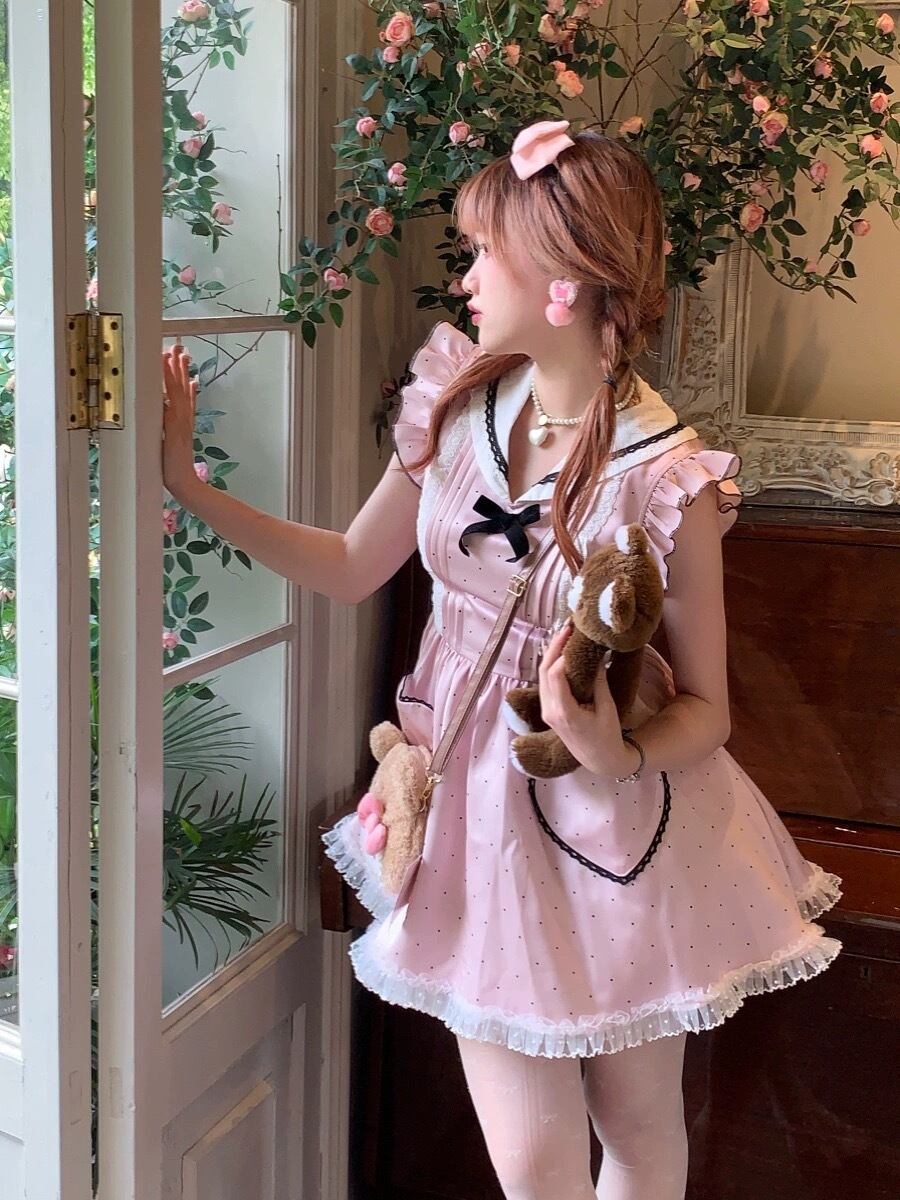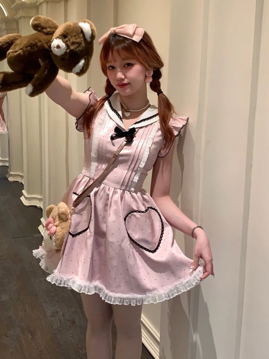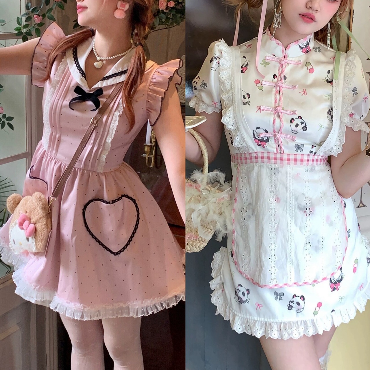 パンダ チャイナ ピンク ワンピース ガーリー エプロン 可愛い