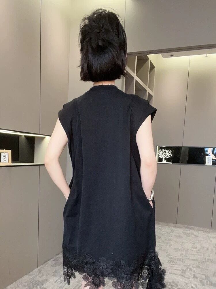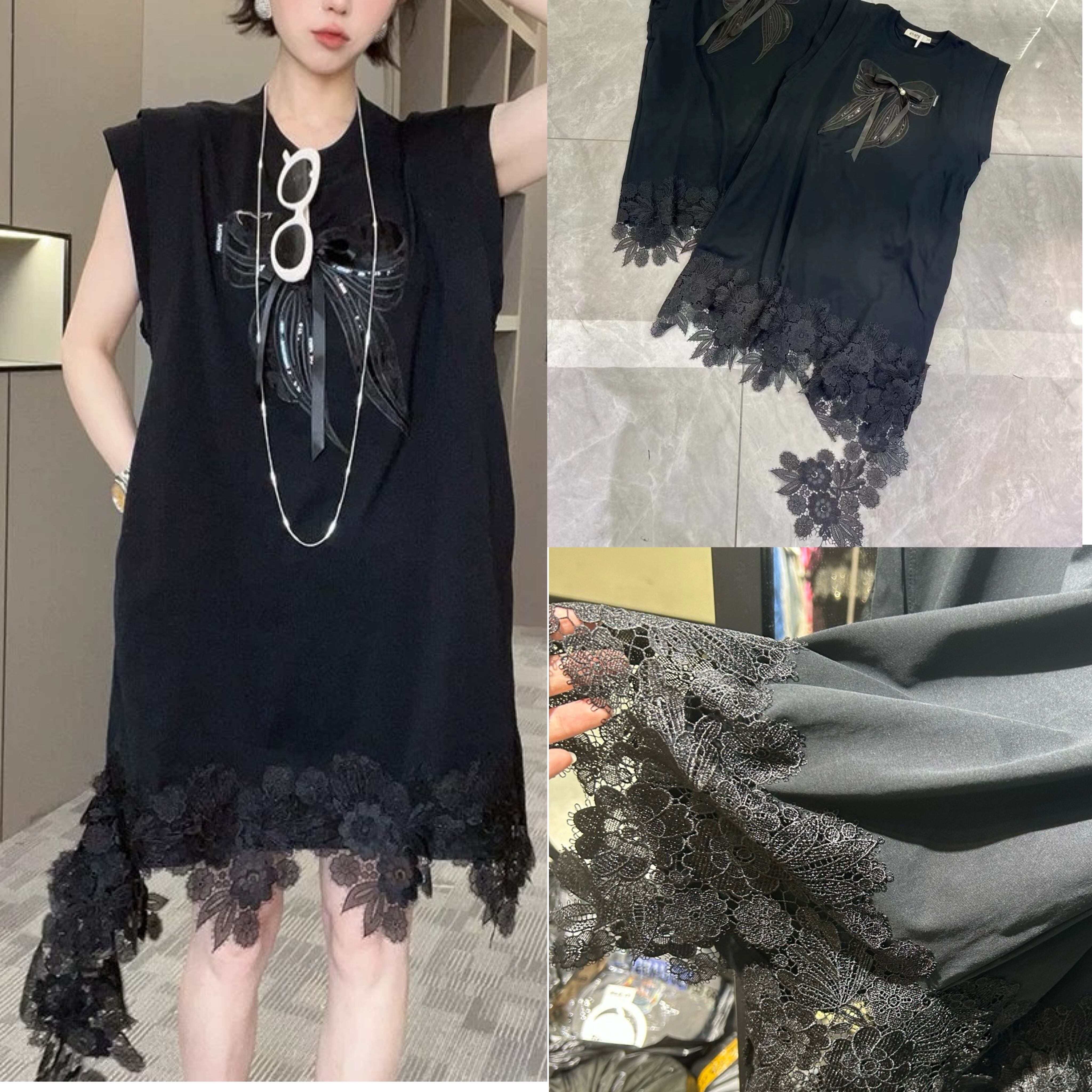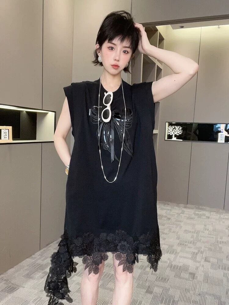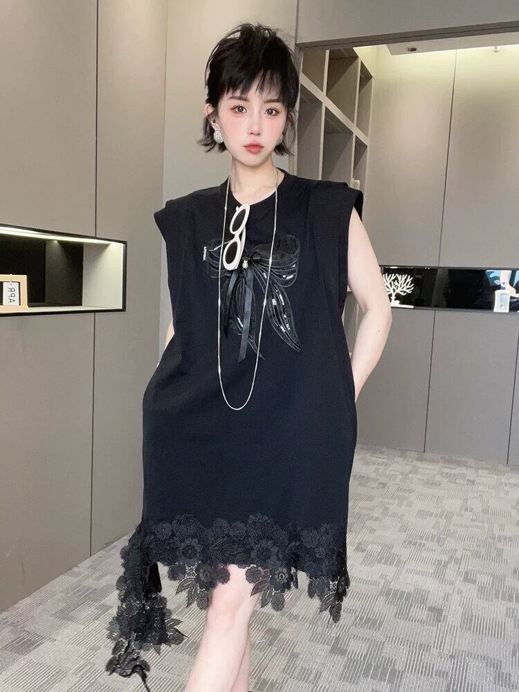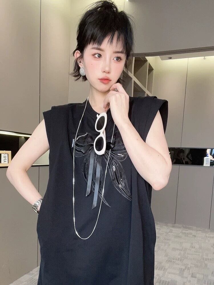 黒 Tシャツ ノースリーブ リボン XL カジュアル ワンピース