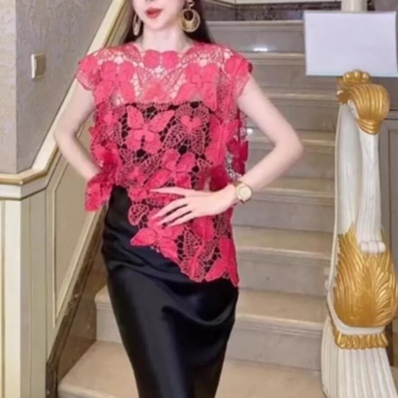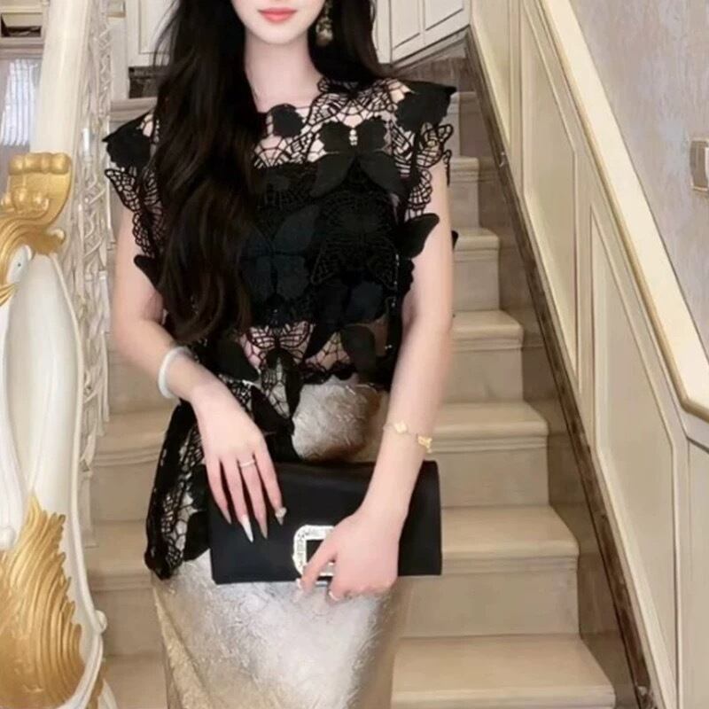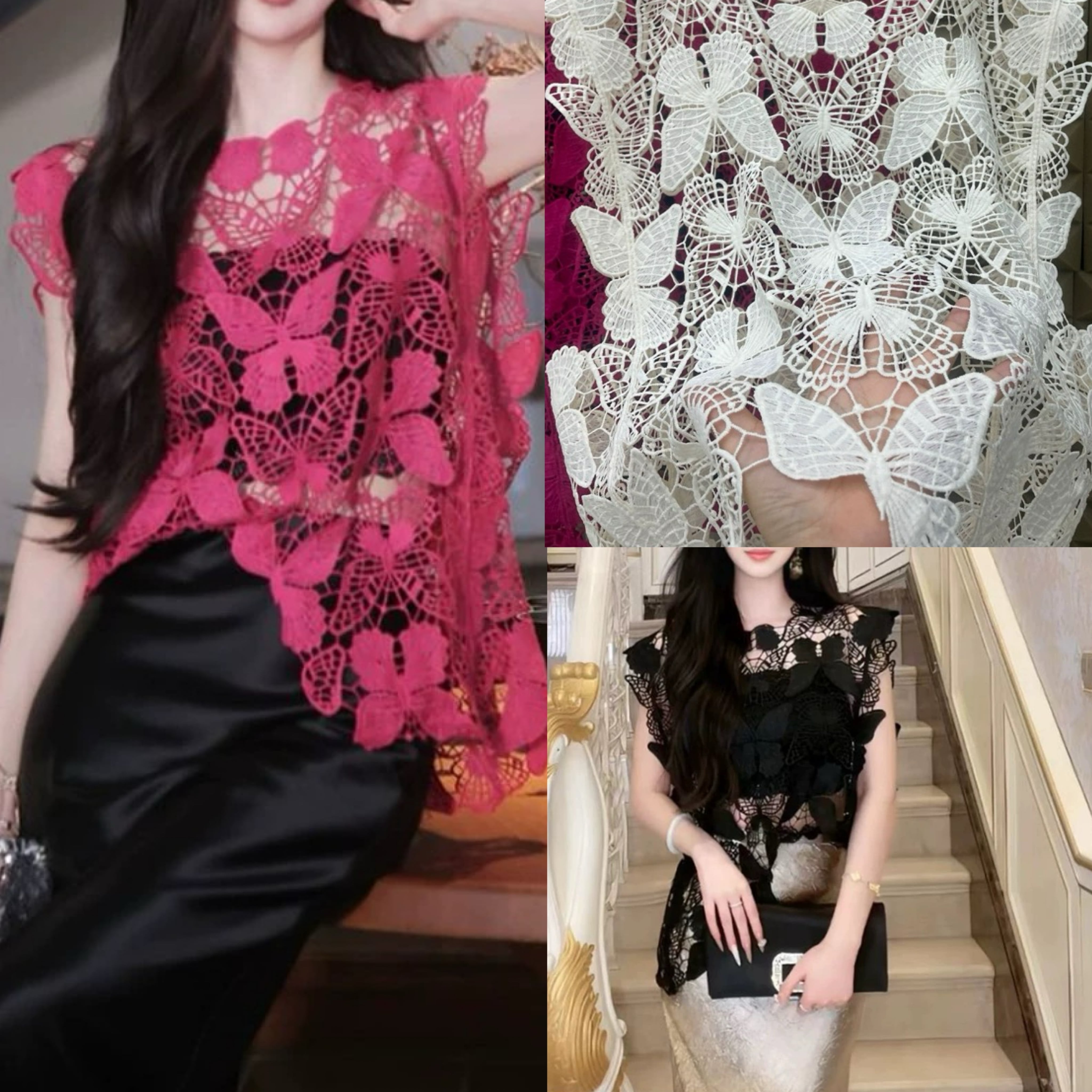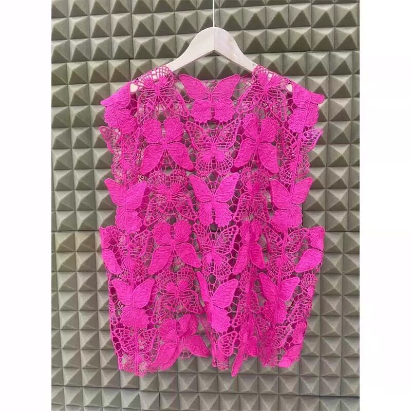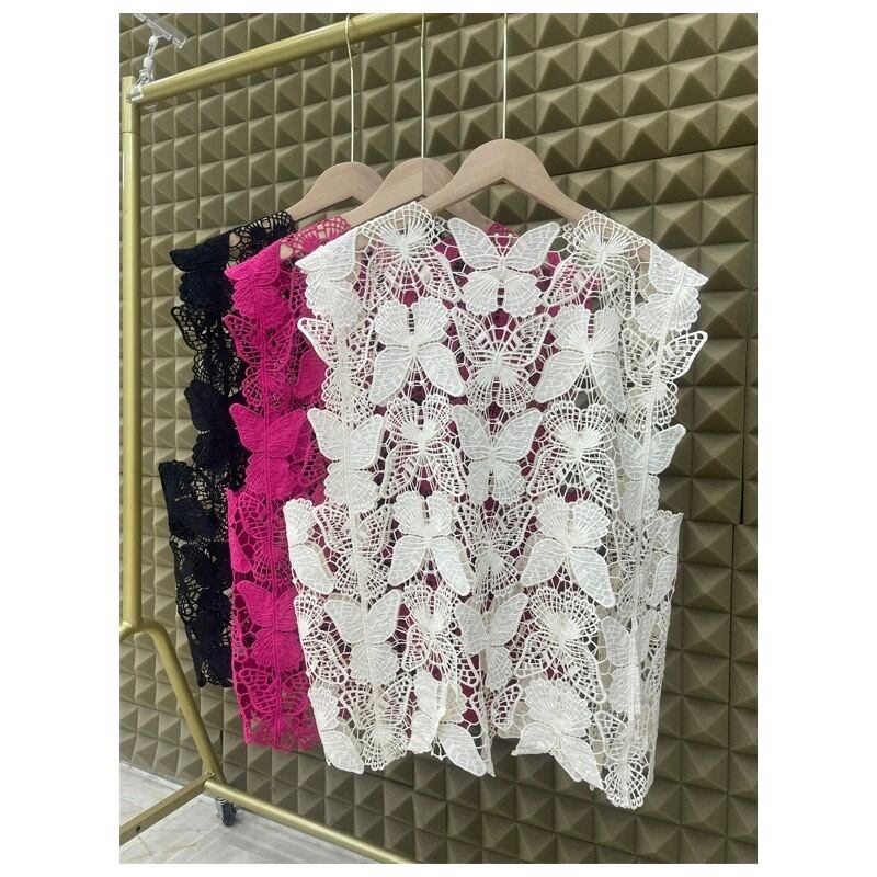 ★サイズ バタフライ ベスト 黒 白 ピンク ブラウス トップス