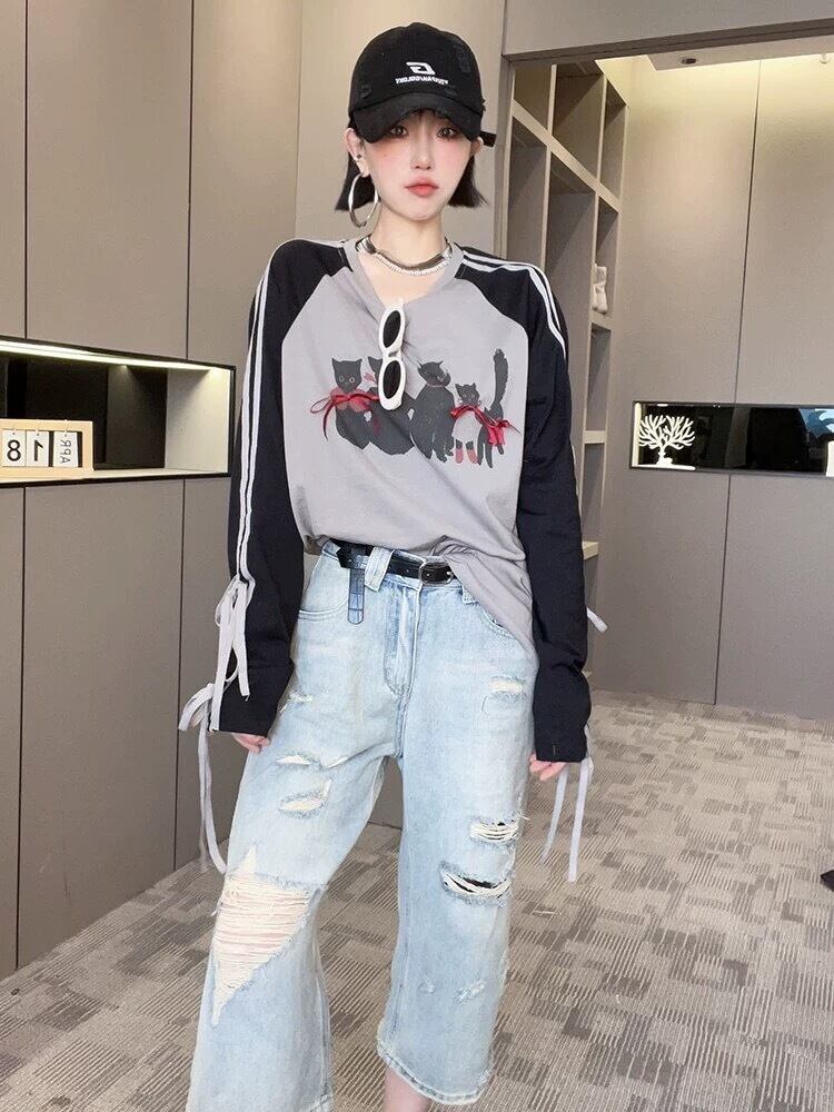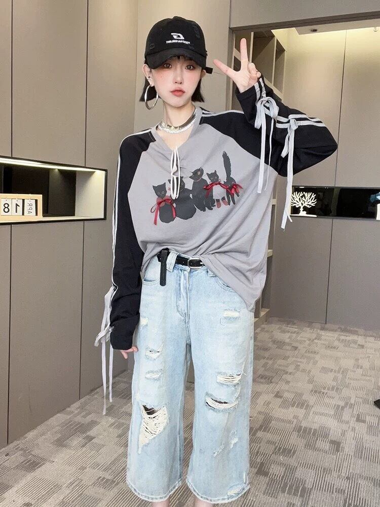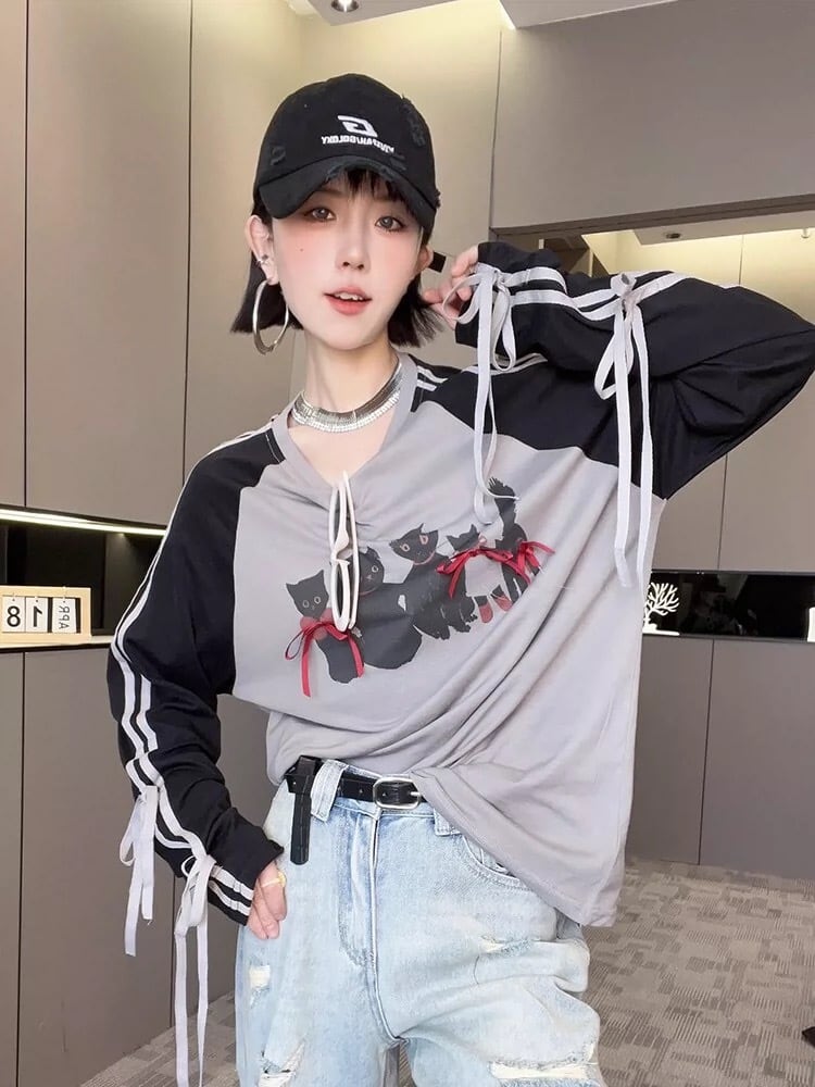 ゆったり トップス カジュアル ブラウス スウェット リボン ゆったり