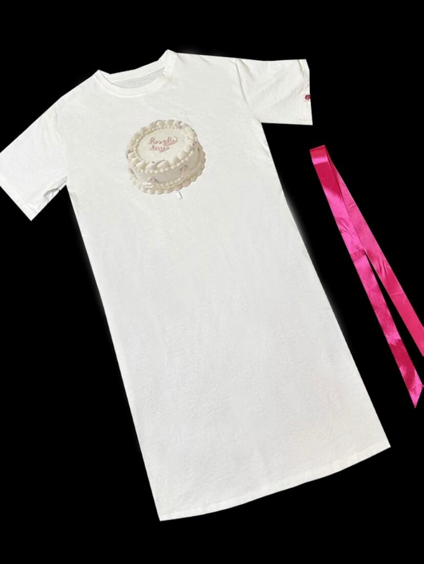 Tシャツ ワンピース 白 ホワイト ガーリー ケーキ スイーツ 可愛い カジュアル