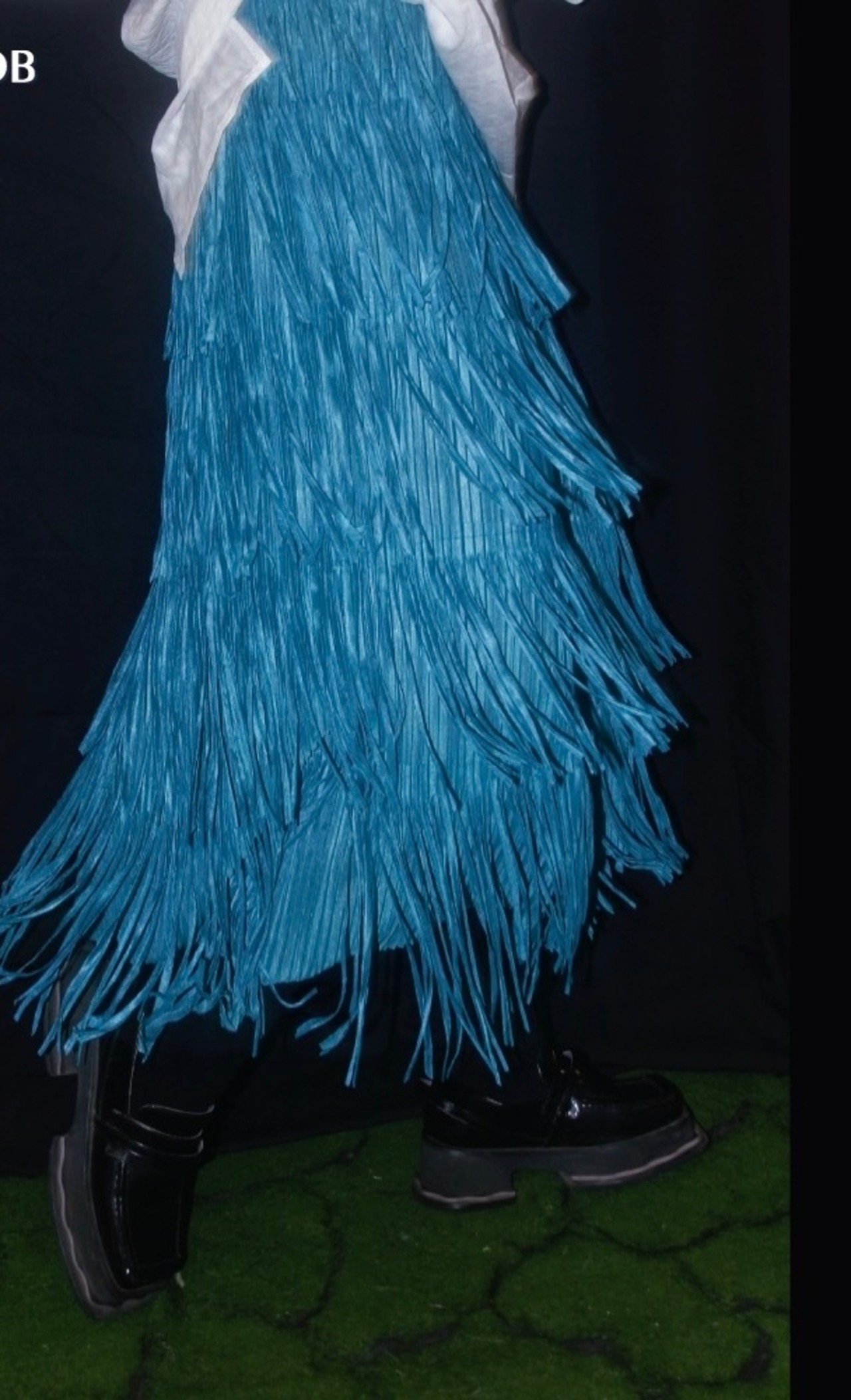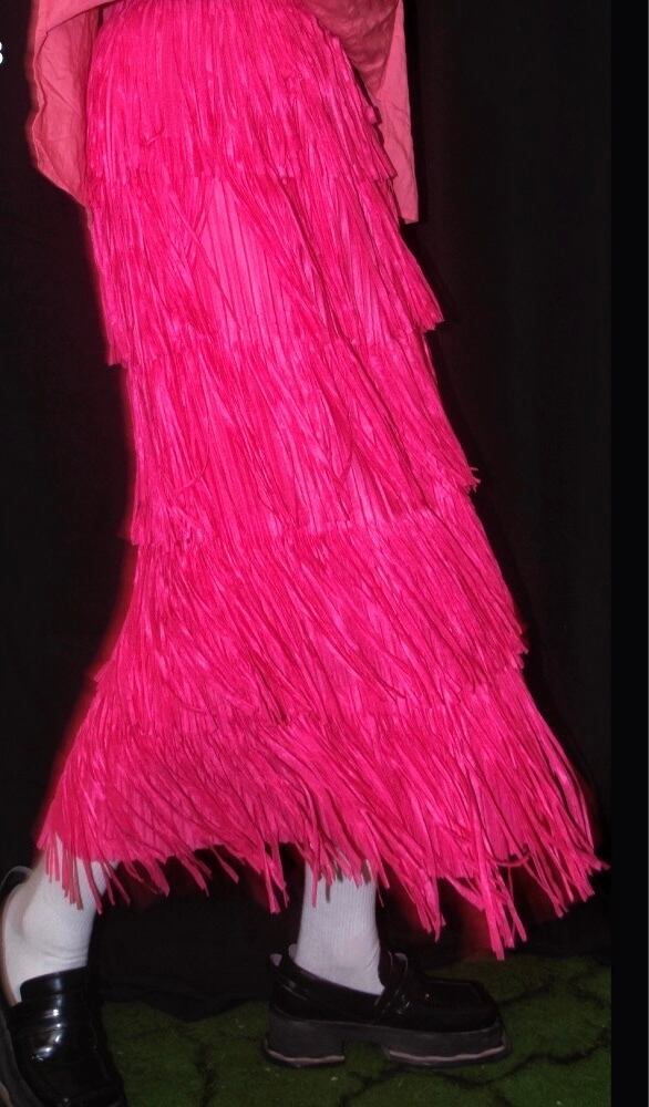 緑 ピンク フリンジ ボトムス スカート ゆらゆら カジュアル