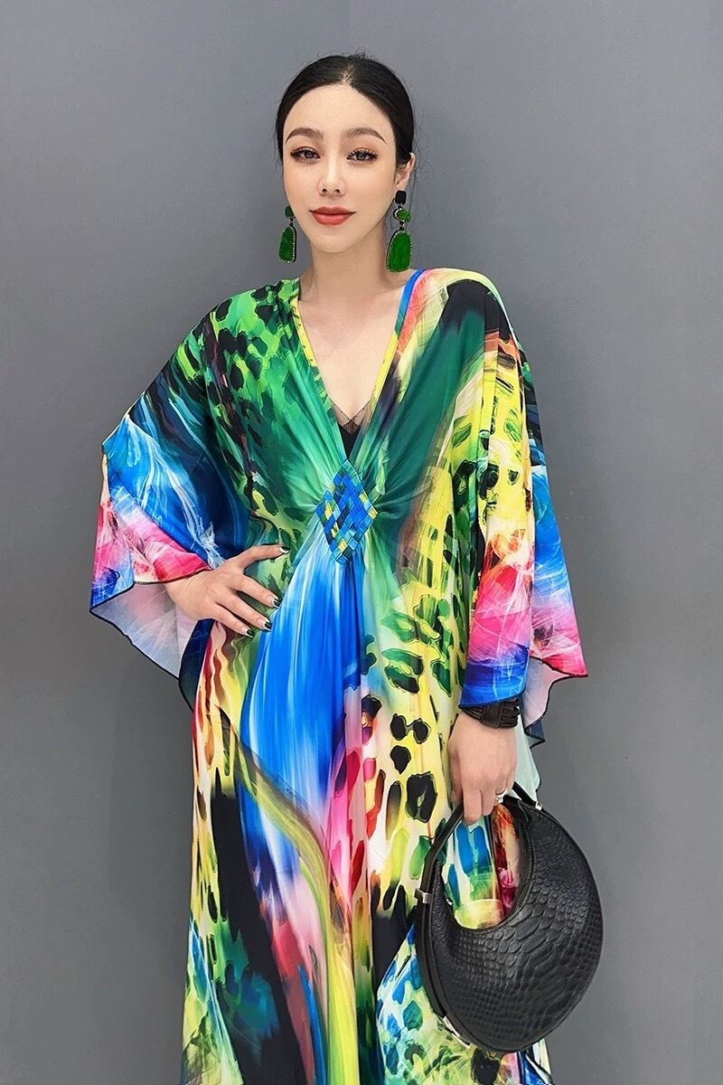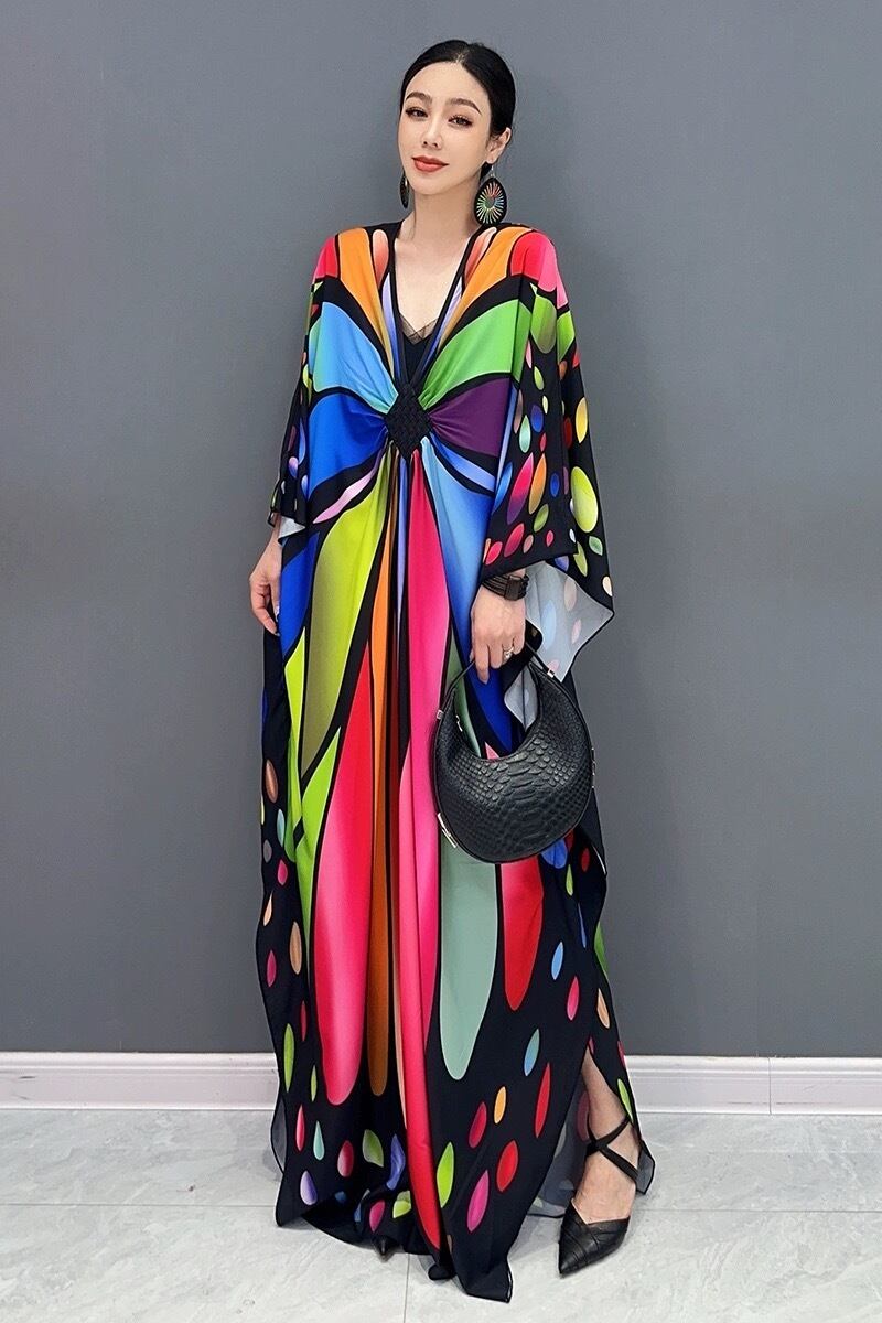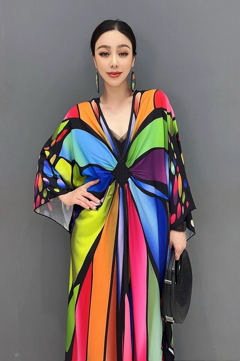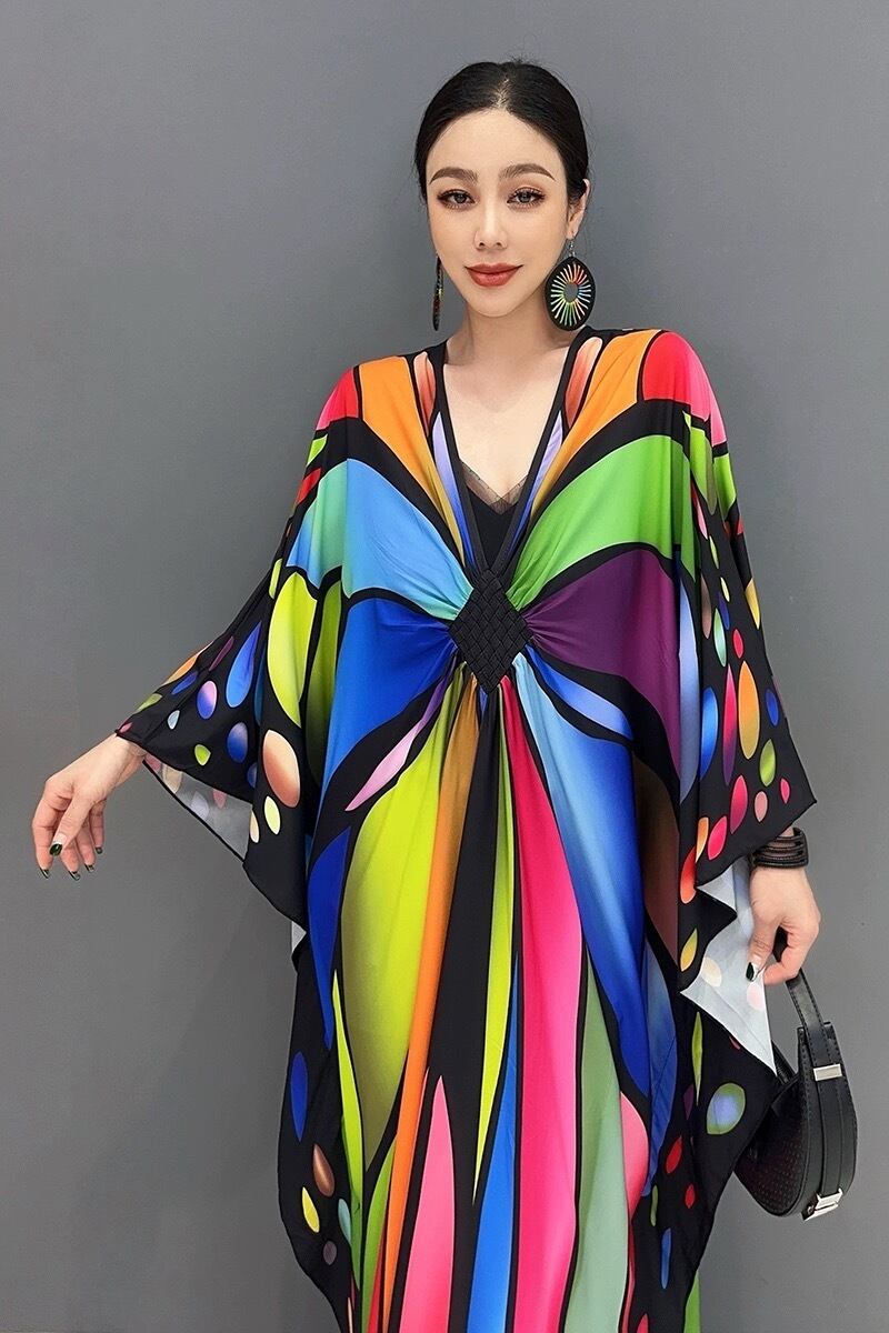 カラフル バタフライ マント ワンピース 海 水着 アジアン エスニック