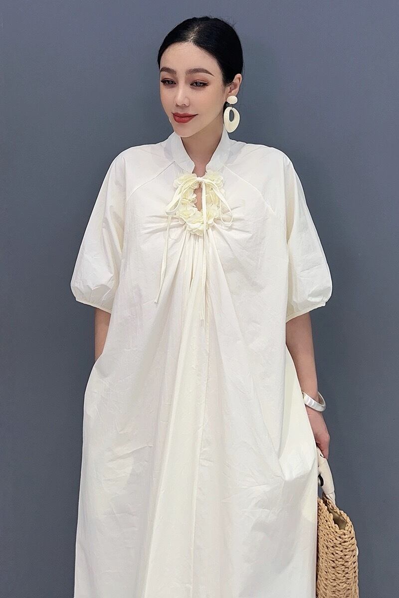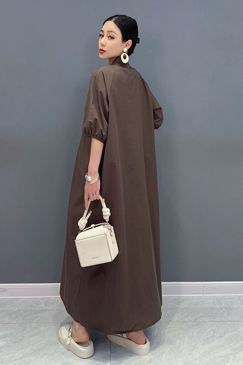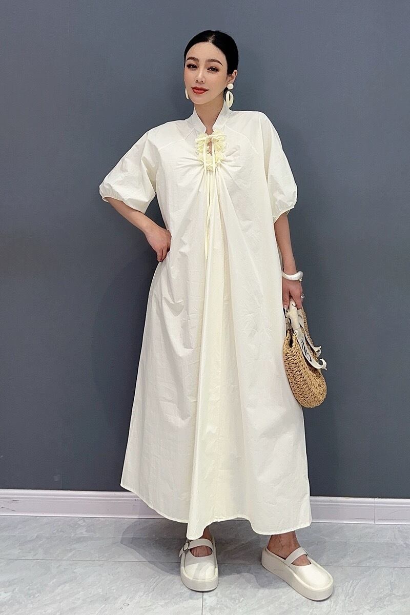 白 ホワイト シャツ 茶色 リボン ワンピース カジュアル リボン 半袖