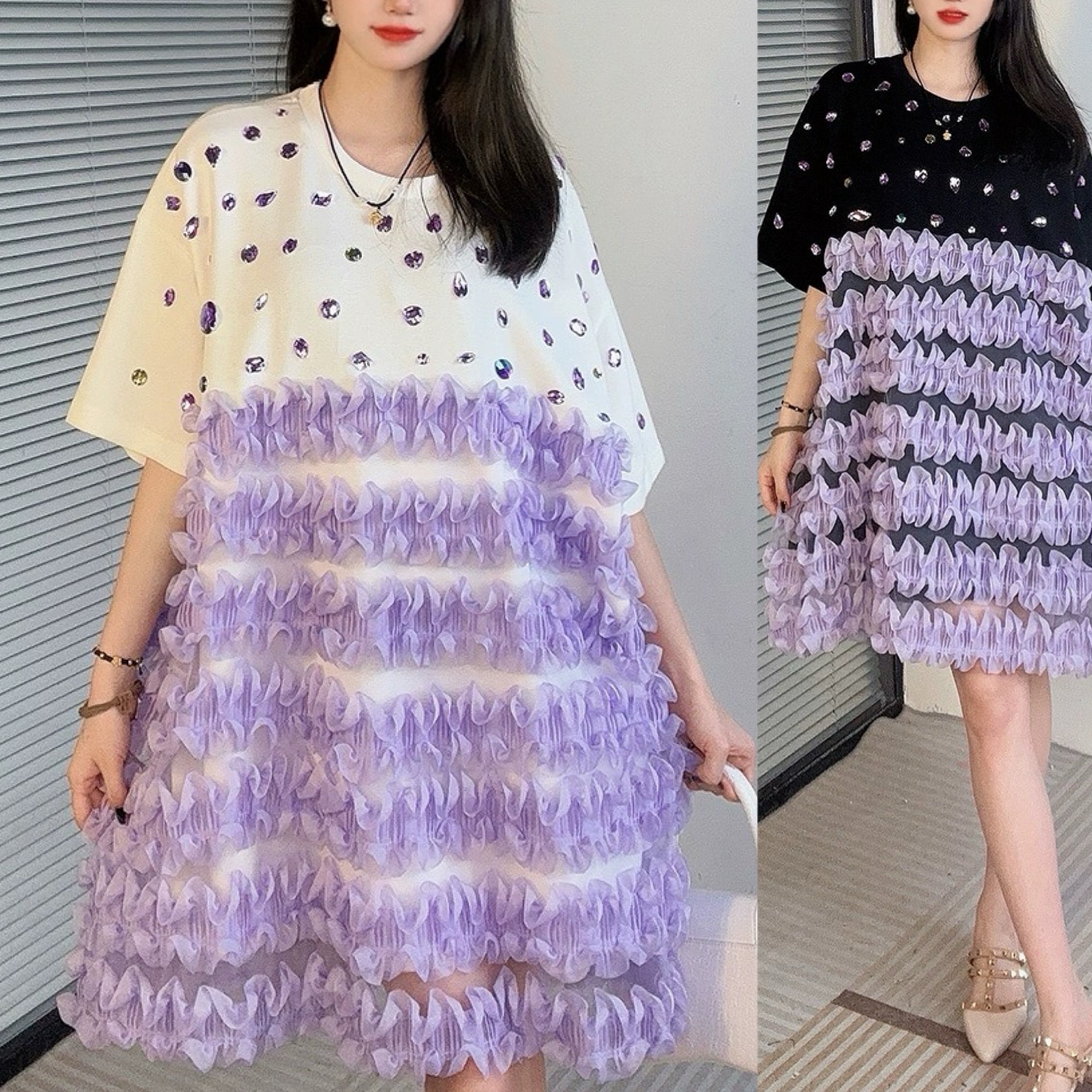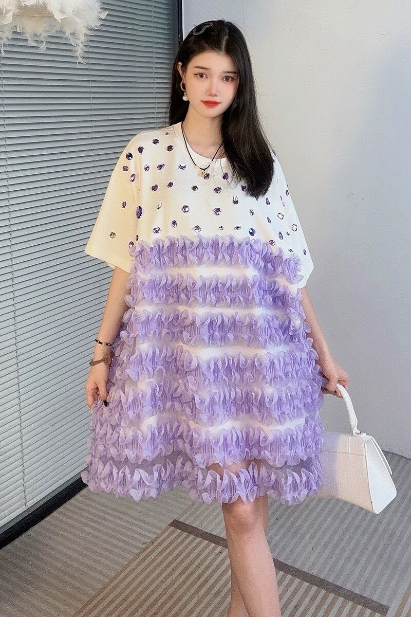 紫 黒 白 ワンピース フリル リボン カジュアル Tシャツ