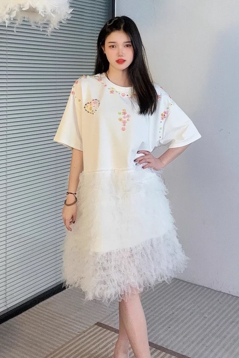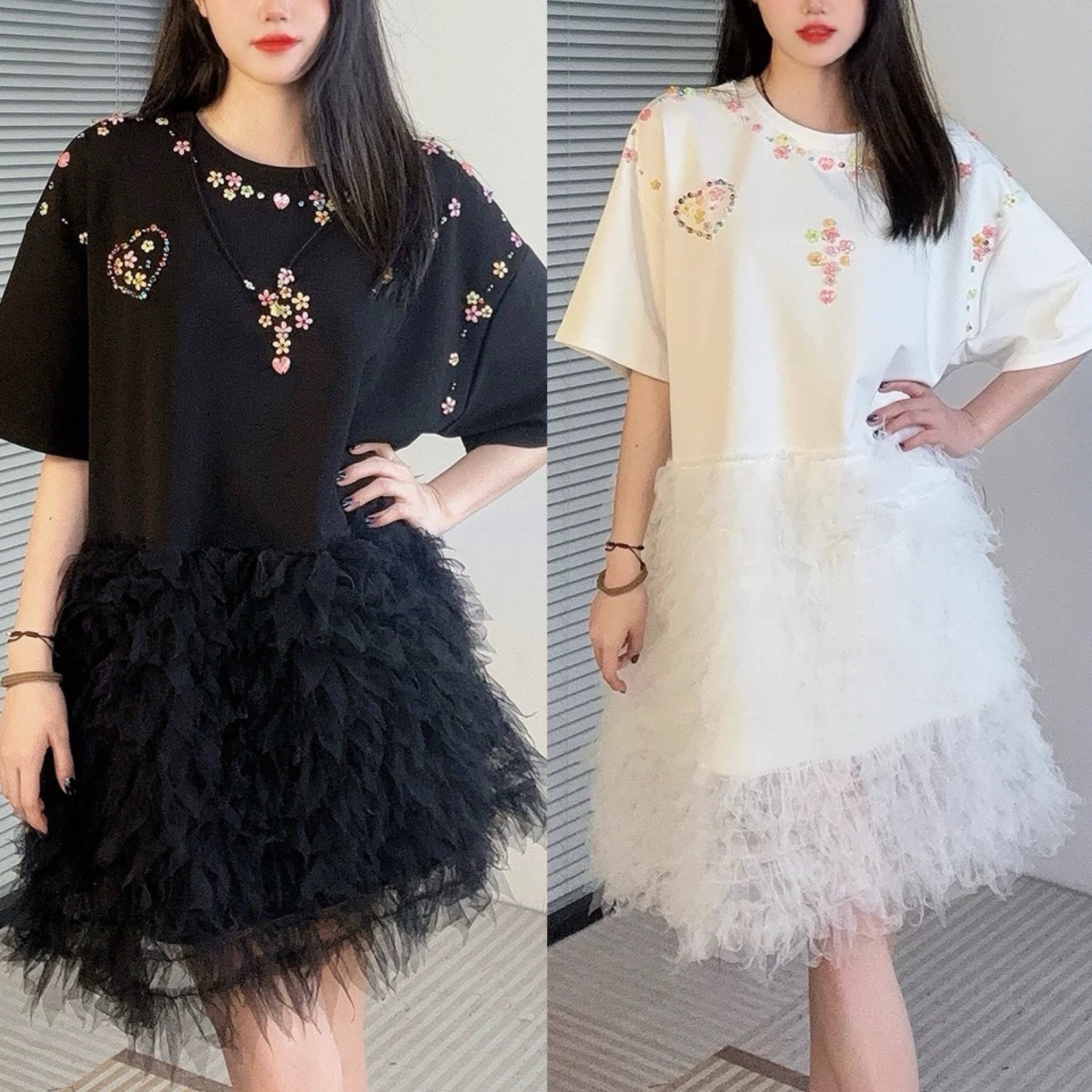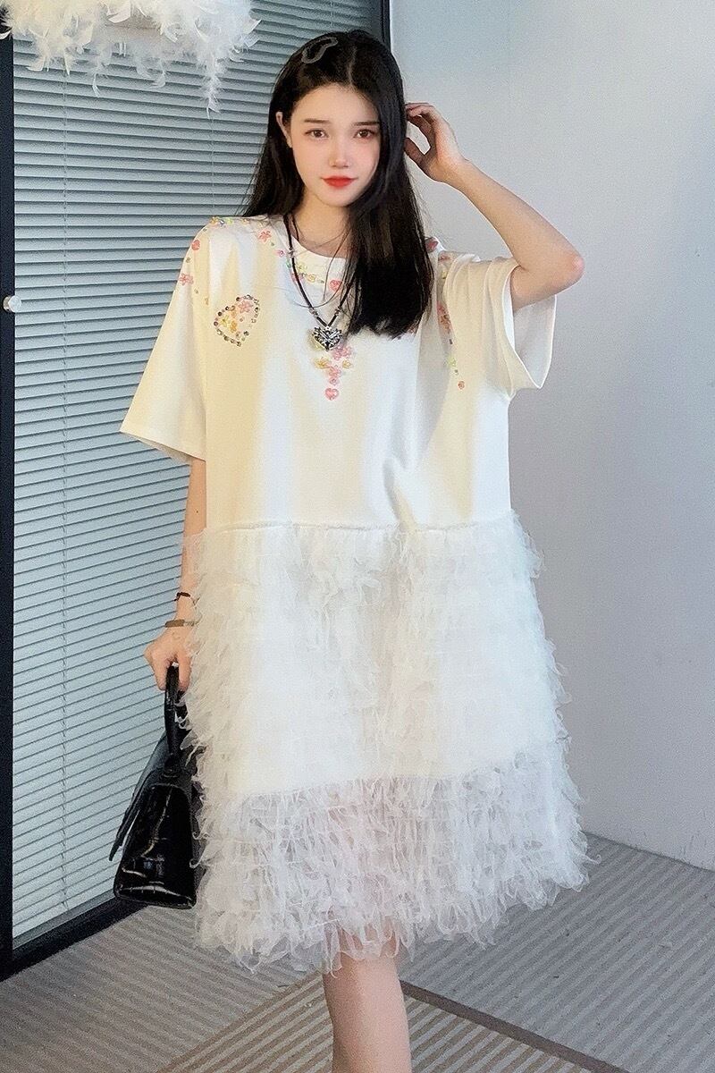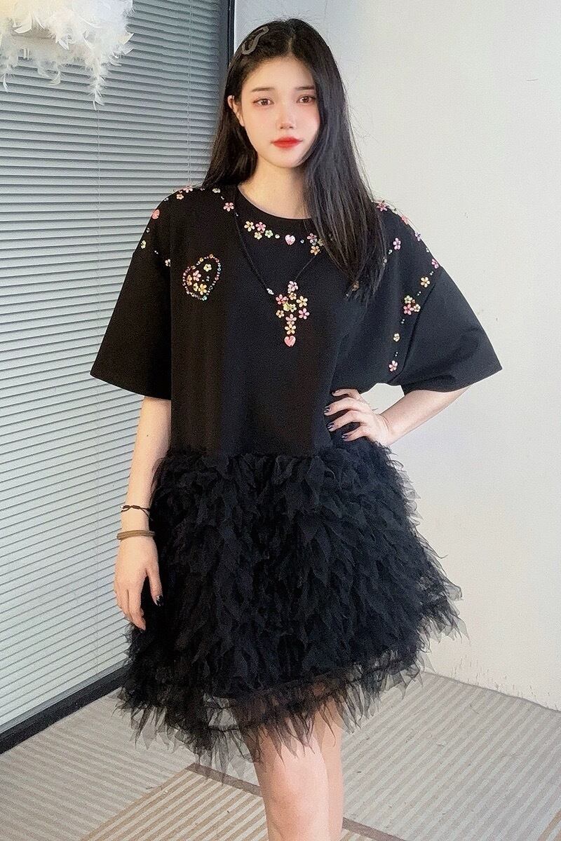 デコレーション 白 黒 ワンピース Tシャツ カジュアル
