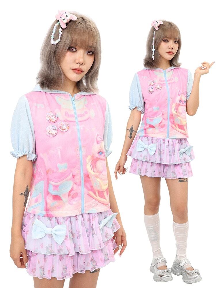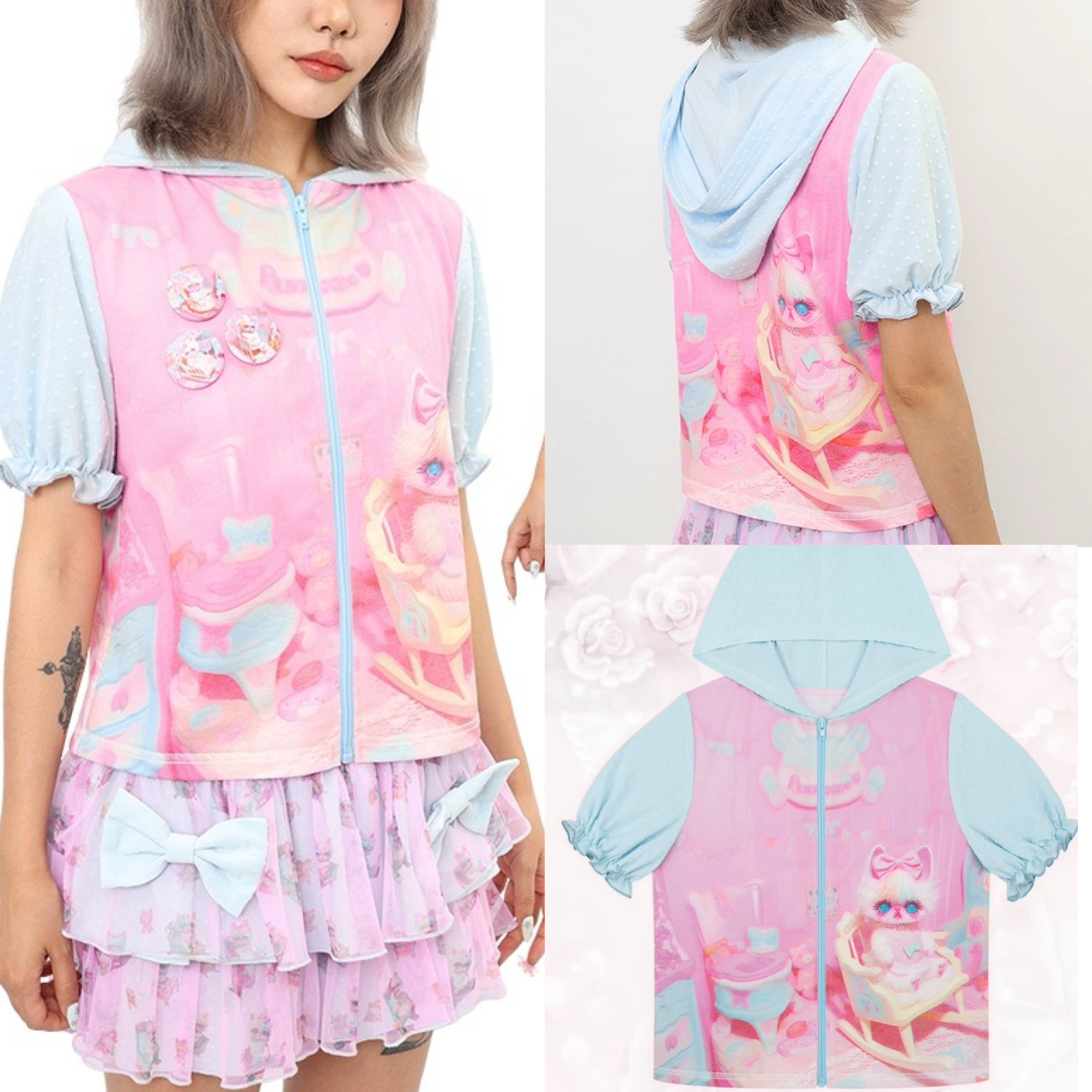 パーカー ピンク 水色 グラデーション 可愛い ガーリー ジャケット ジャンパー