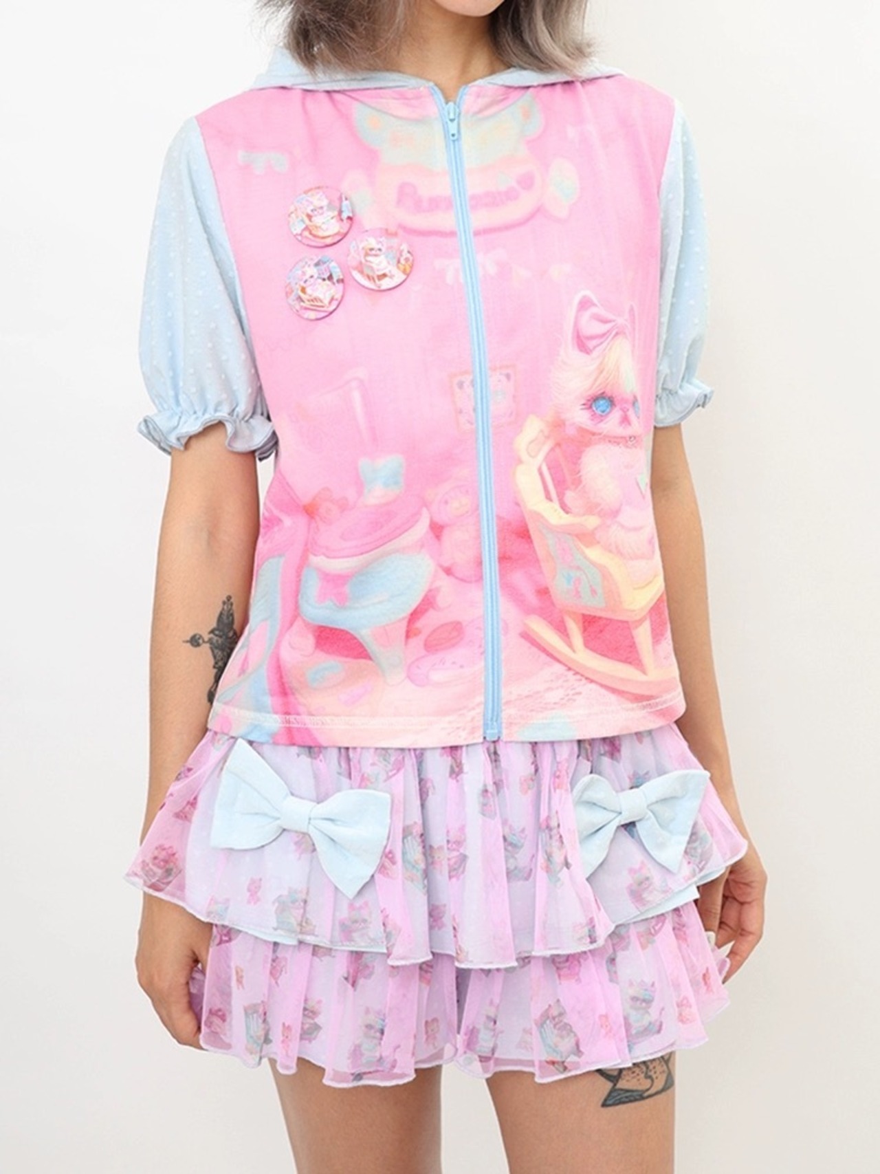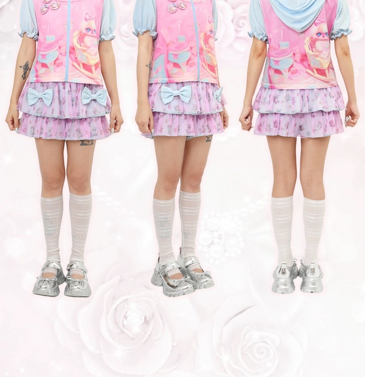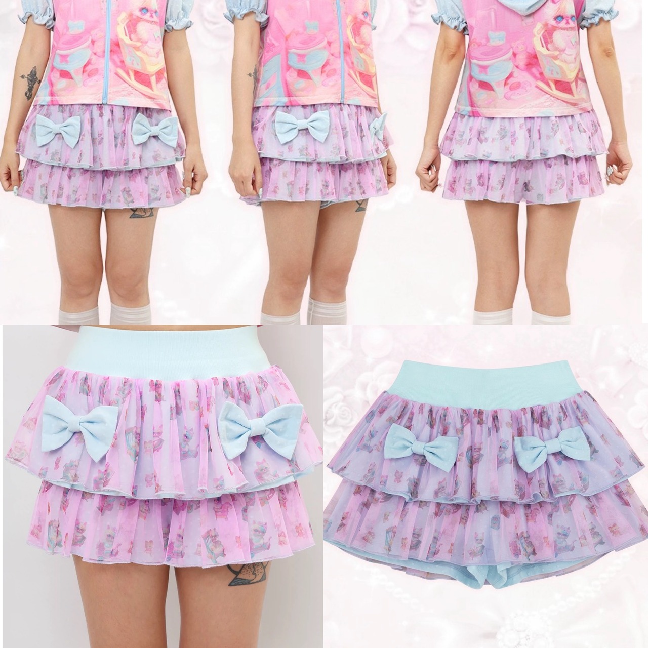 ボトムス スカート ミニ ガーリー 可愛い 水色 ピンク