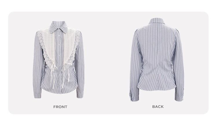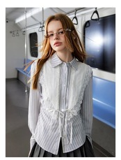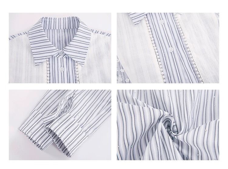 水色 ストライプ チェック ブラウス シャツ 爽やか