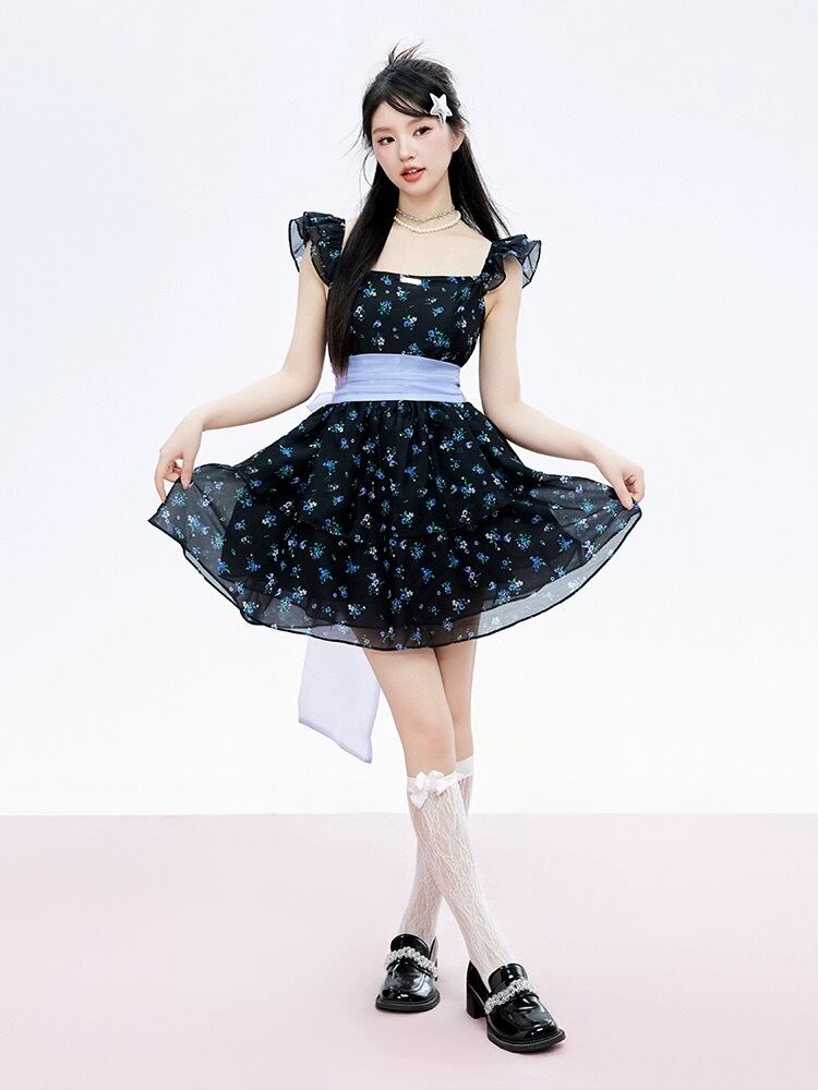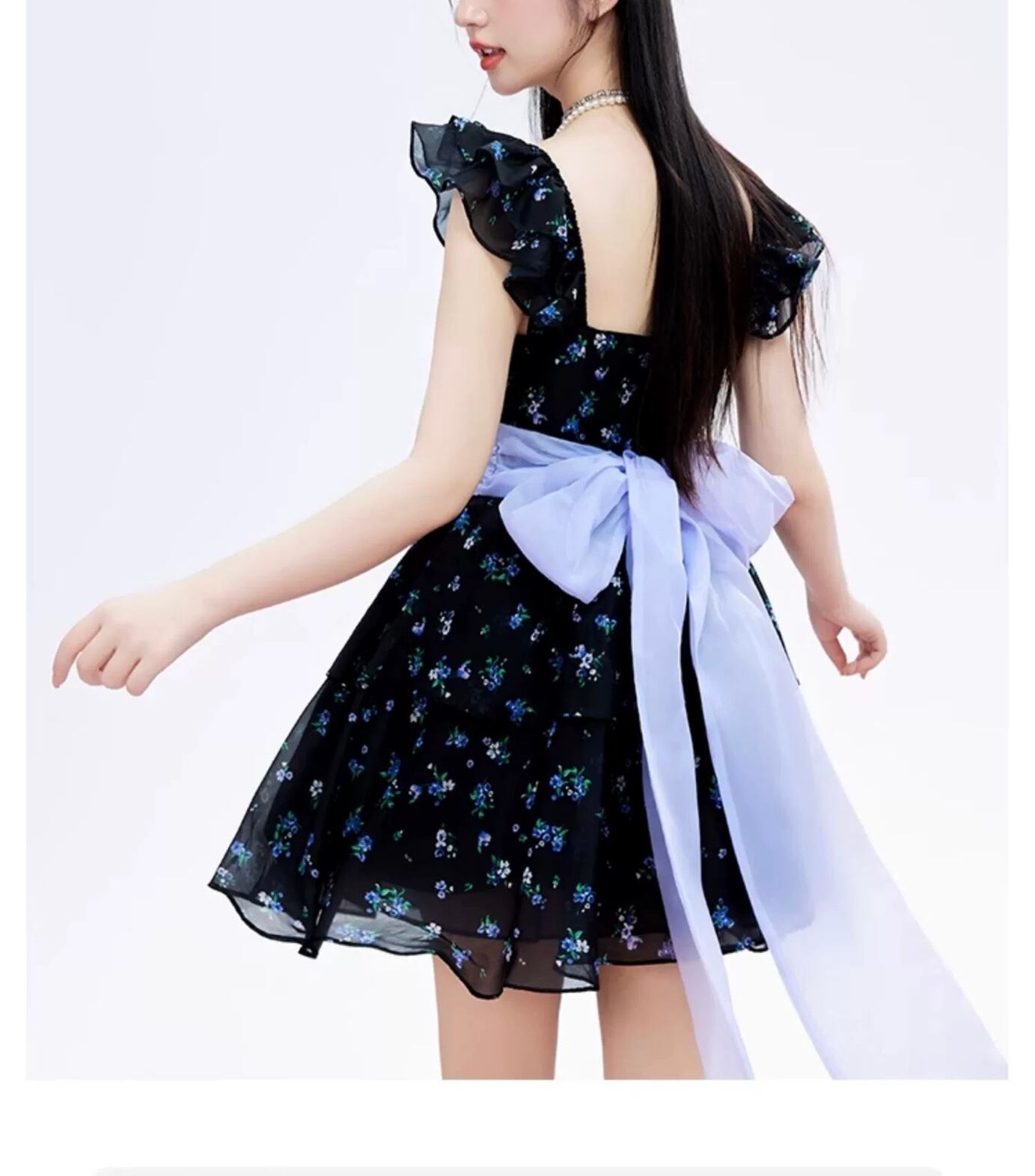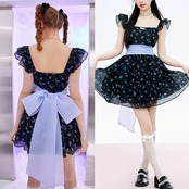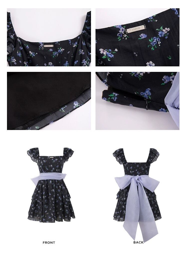 花柄 水色 ブルー ガーリー リボン フラワー ワンピース ブラウス