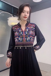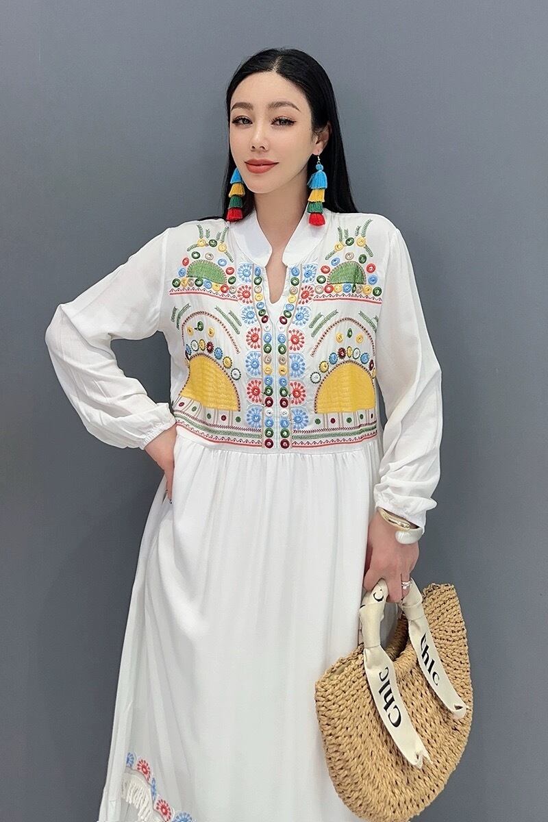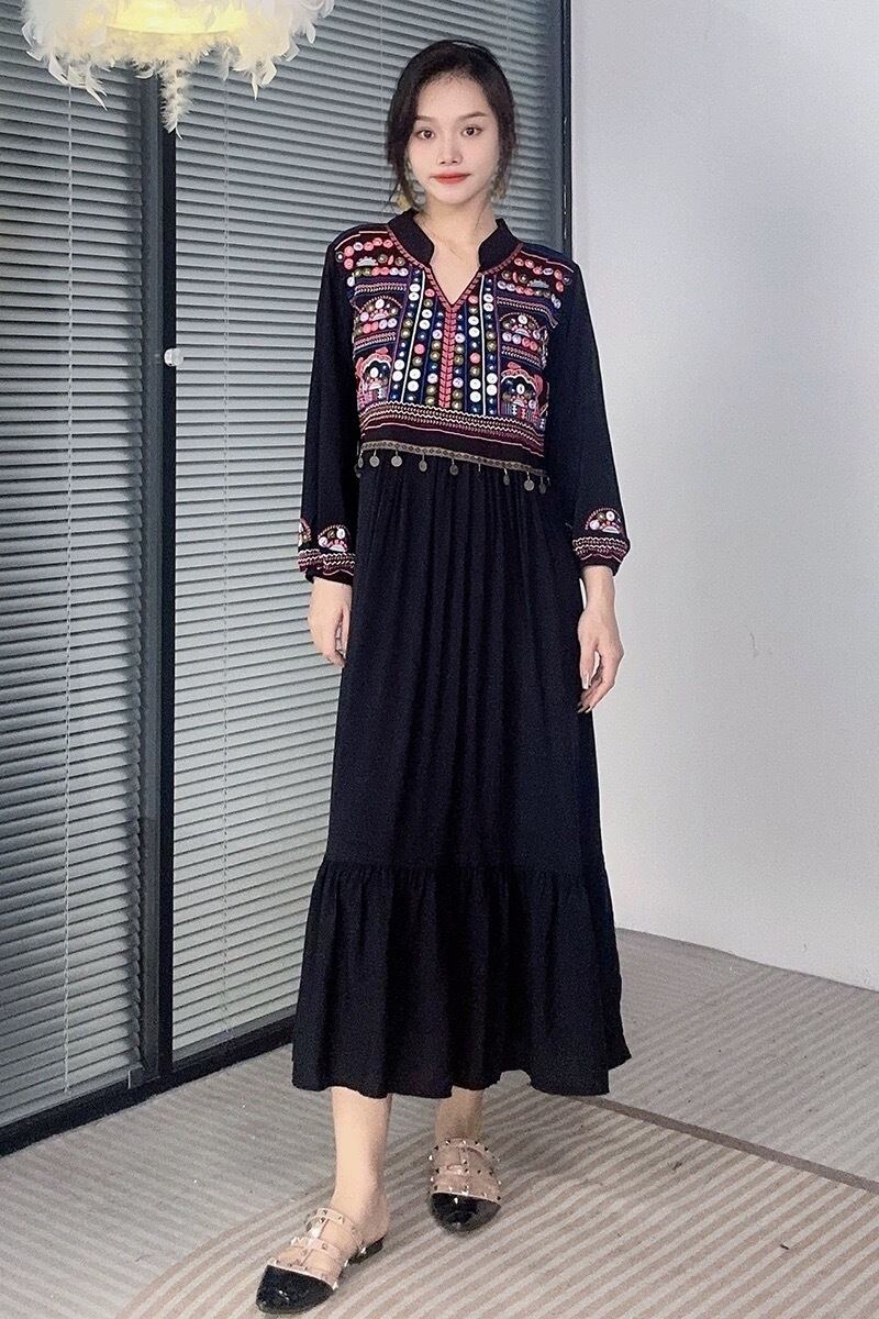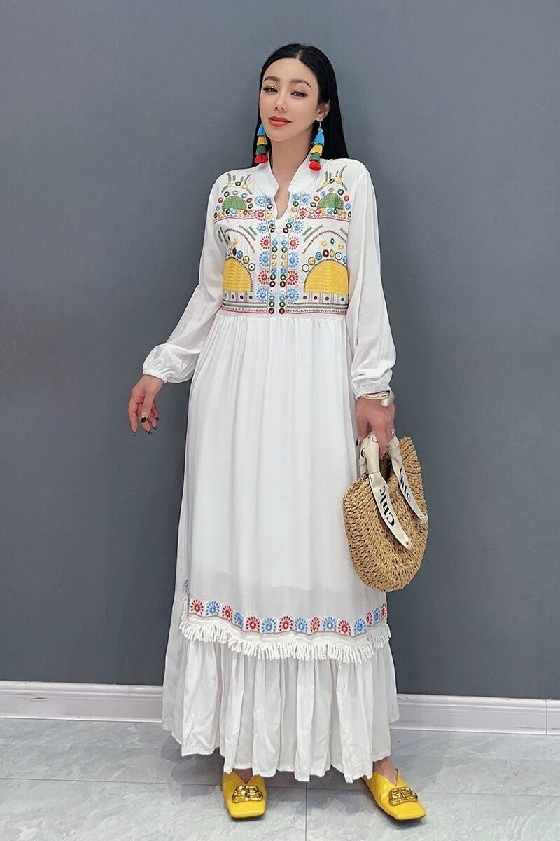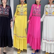 カジュアル エスニック マキシ ブラウス ワンピース ピンク 黄色 白 黒 アジアン