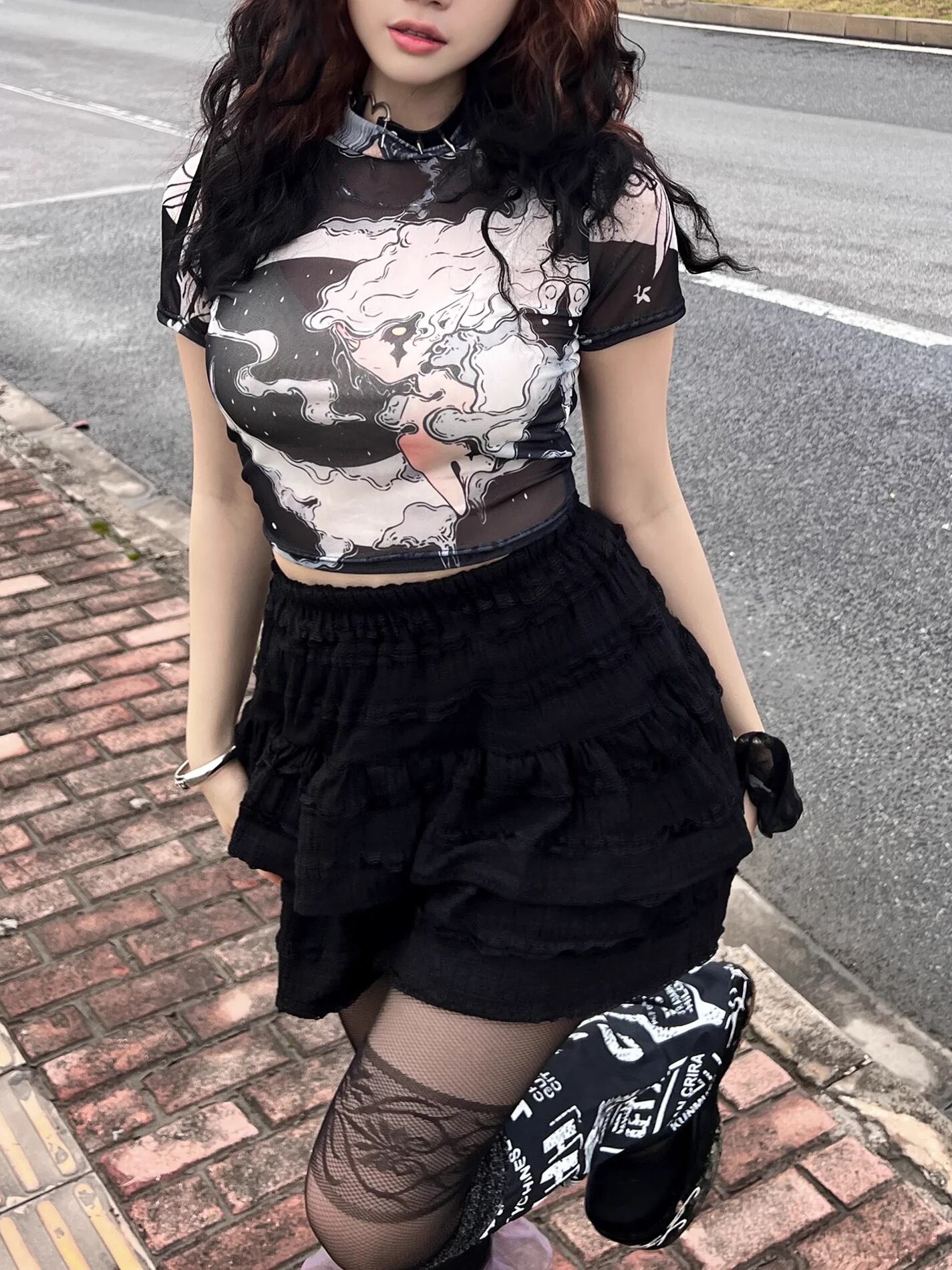 トップス Tシャツ 黒 ガーリー カジュアル ブラウス 原宿 秋葉原