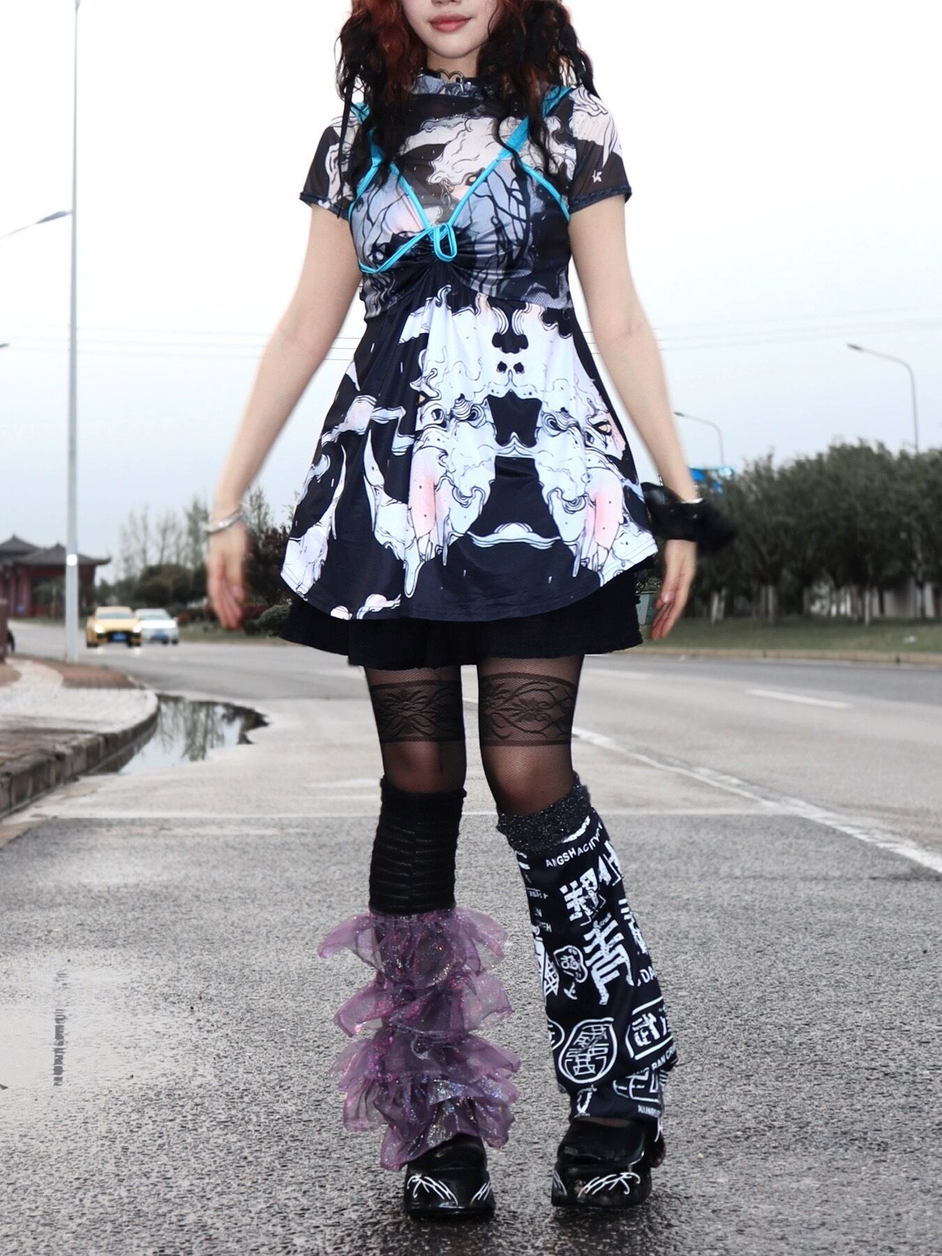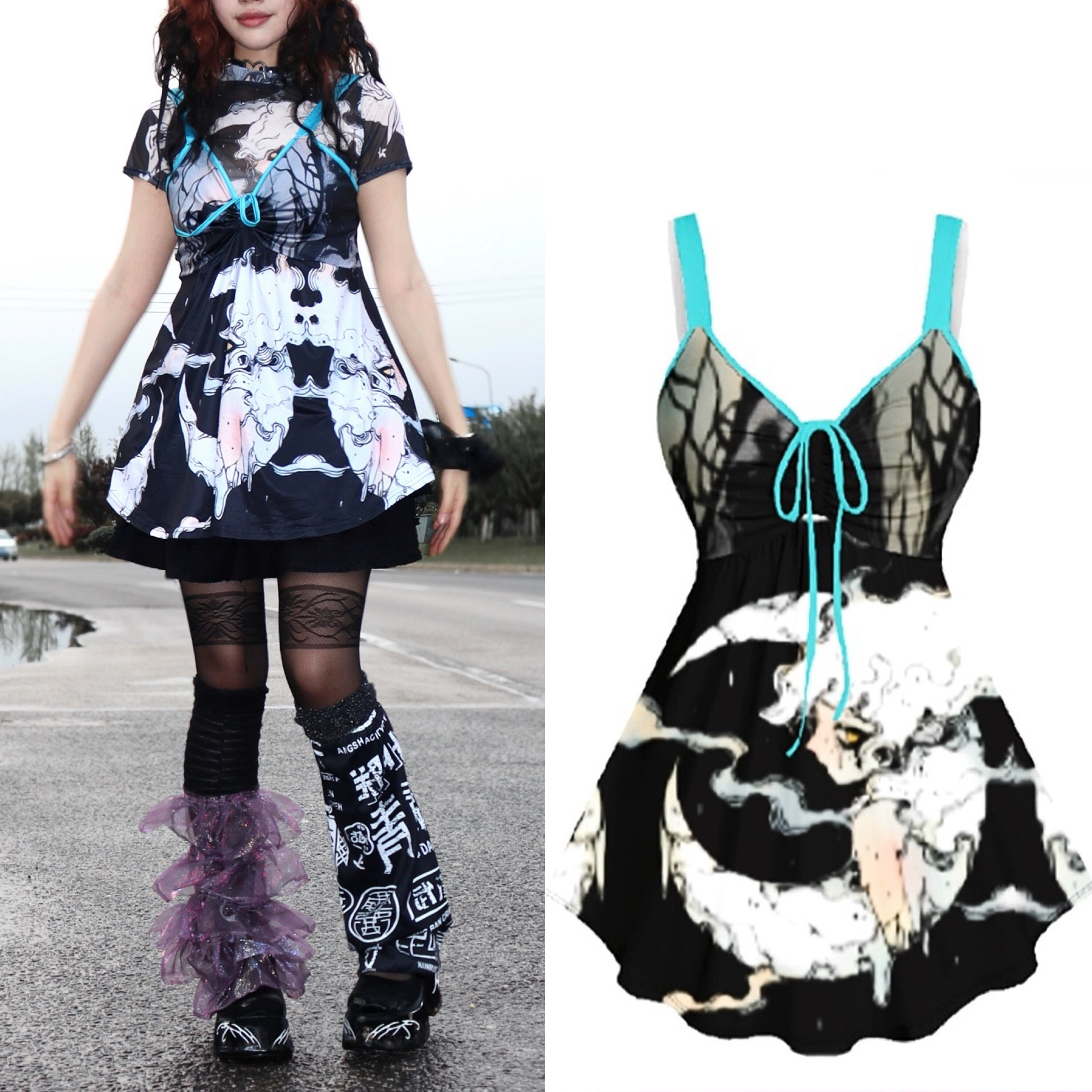 ワンピース 原宿 可愛い キャミソール ブラウス トップス チュニック 水色