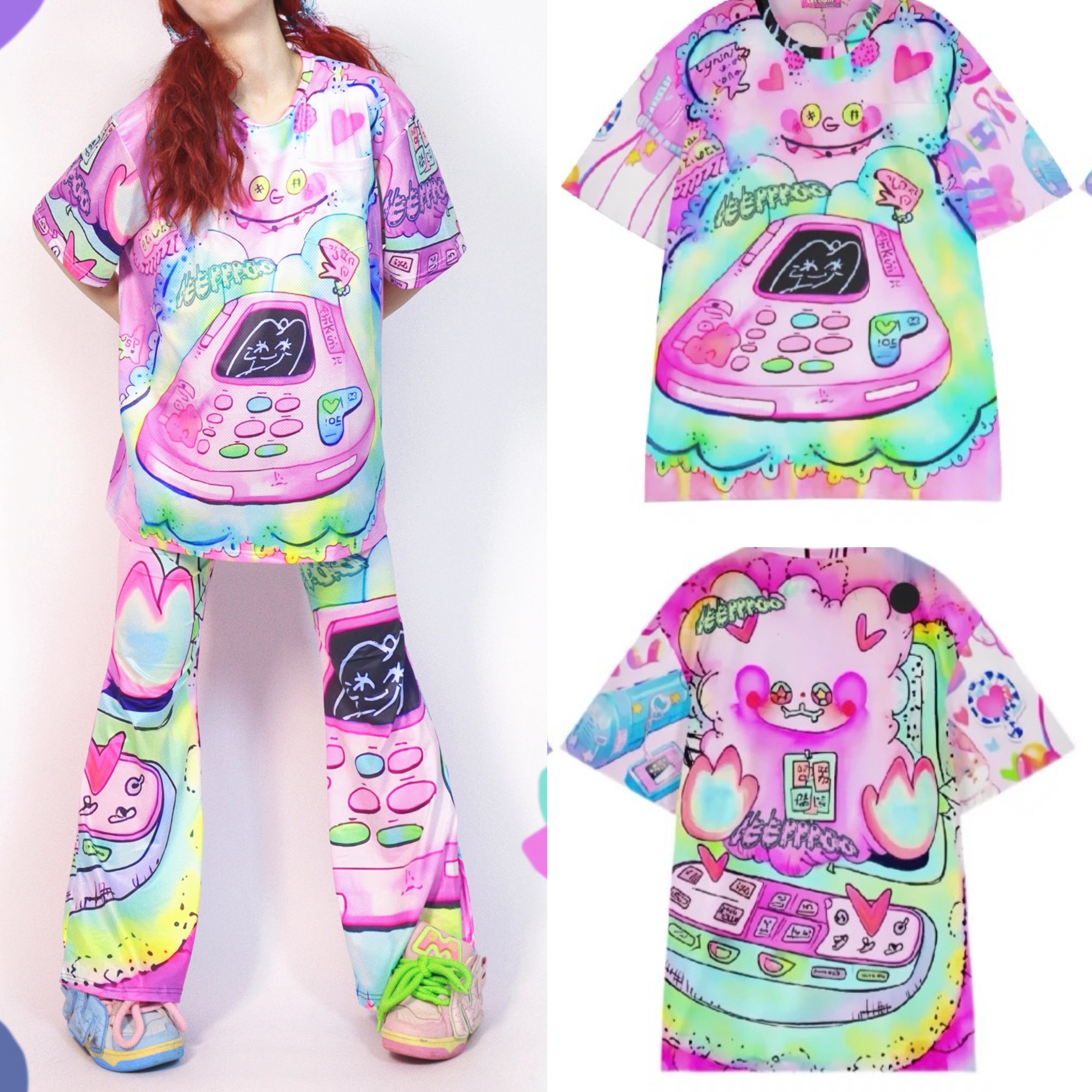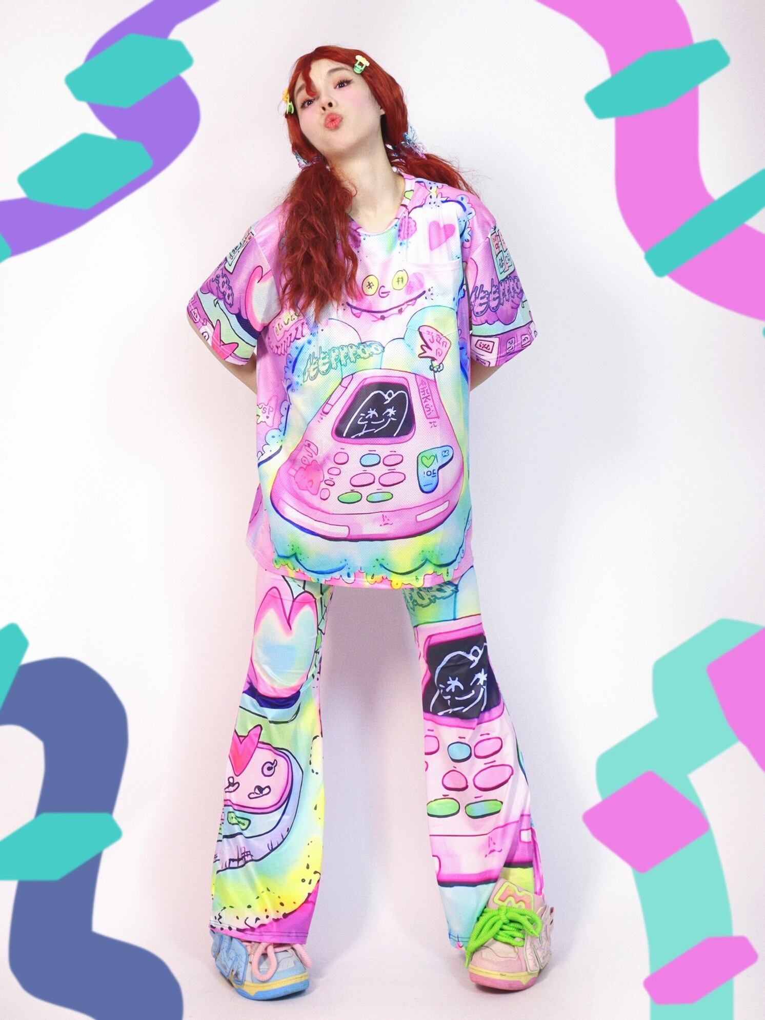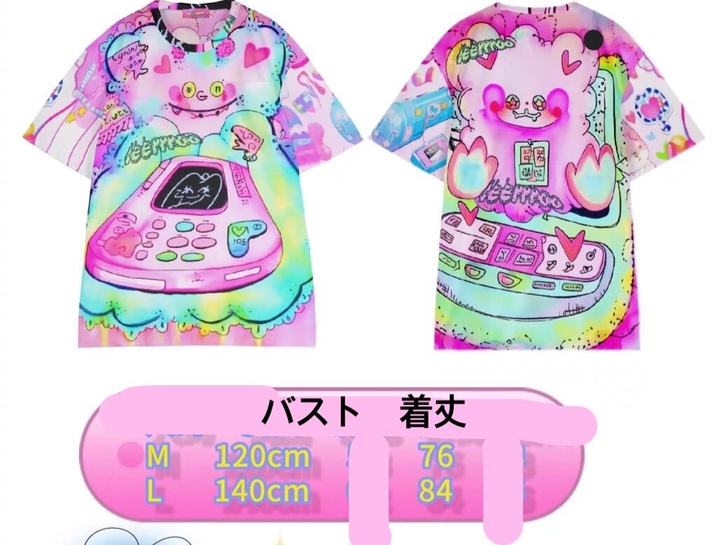 トップス カラフル Tシャツ グラデーション 秋葉原 原宿 緑 ピンク ブラウス ワンピース